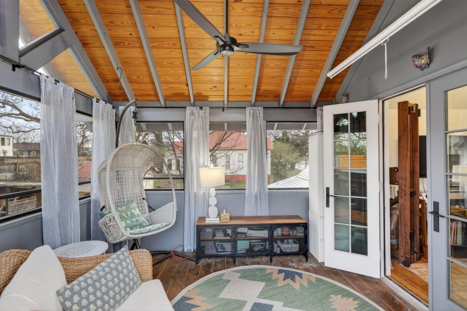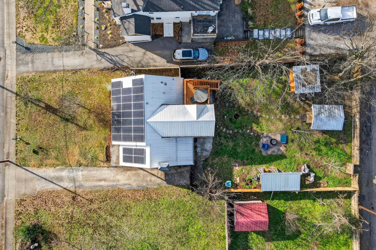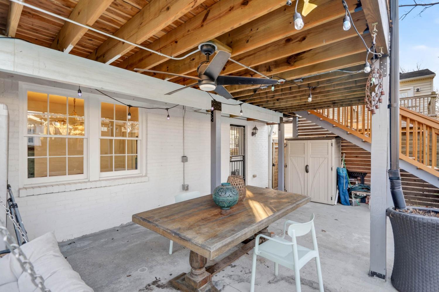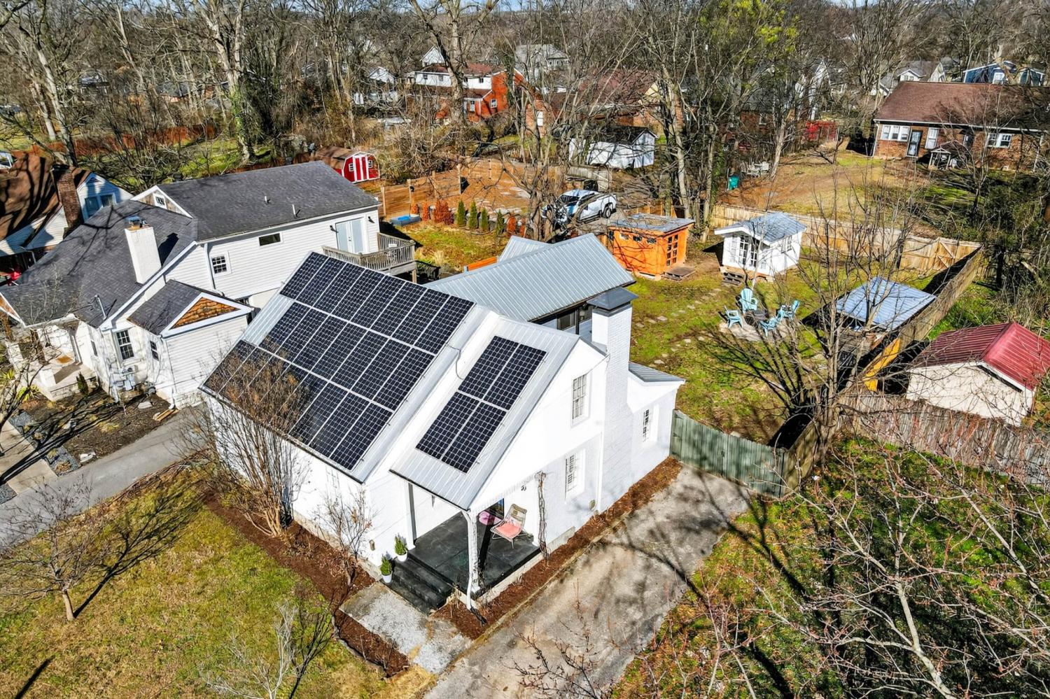 Charming historic home filled with thoughtful renovations. Within walking distance of so much East Nashville has to offer. Living room features fireplace with wood stove, built-ins, and plantation shutters. Dining room could be an office with great view of the backyard. Primary suite includes screened porch retreat that connects to upper deck with whirlpool. Kitchen features stainless steel appliances and shaker-style cabinets. Enjoy electric bill savings with solar panels and inverter system. Wood and tile floors throughout the home. See complete list of recent updates. All appliances remain. Covered back patio is perfect for entertaining. Alley and driveway access to back yard. Two site-built insulated sheds could be WFH offices, garden workshops, or playhouses. Additional storage in cellar. The property is in a Detached Accessory Dwelling Unit (DADU) Overlay District. Primary suite rails around stairs are removable, allowing floors to be divided into separate dwellings.