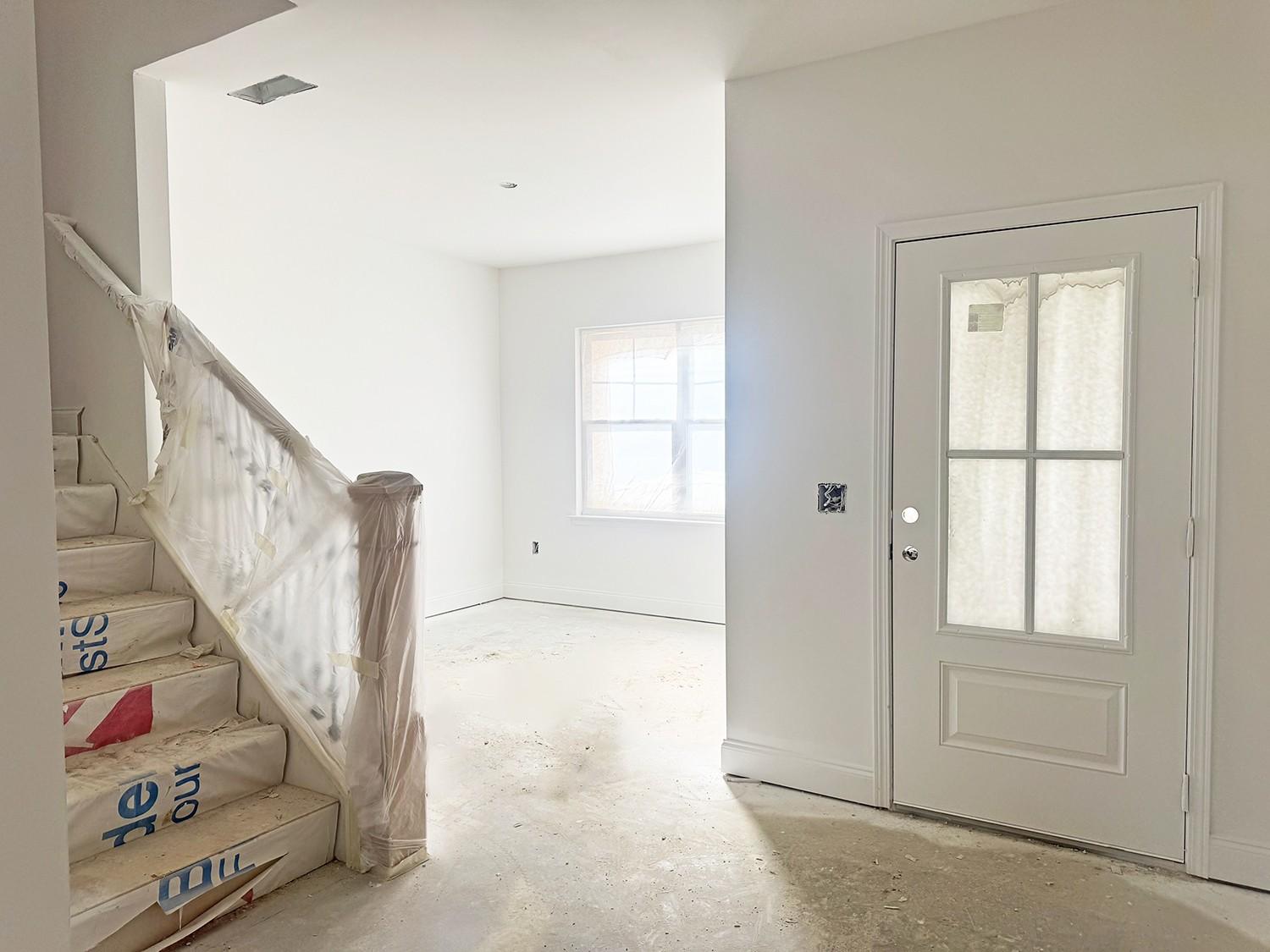 Homesite 170. This open-concept Bartlett floorplan by Ashton Woods has spacious living areas ideal for entertaining. The L-shaped layout features the dining area adjacent to the kitchen which includes gas cooking and designer-curated finishes from the new Laguna Collection such as gold pendant lights, tile backsplash, white quartz counters, light brown stained cabinets with gold hardware, and a single-bowl stainless sink. Enjoy the private view from your covered back porch. The flex room off the foyer is suitable for a home office, formal dining or sitting room. Up the oak stairs with metal railing you'll find a versatile loft space and oversized primary suite with large walk-in closet as well as three secondary bedrooms, additional full bath with dual vanity, and upstairs laundry room. See link for current incentives.