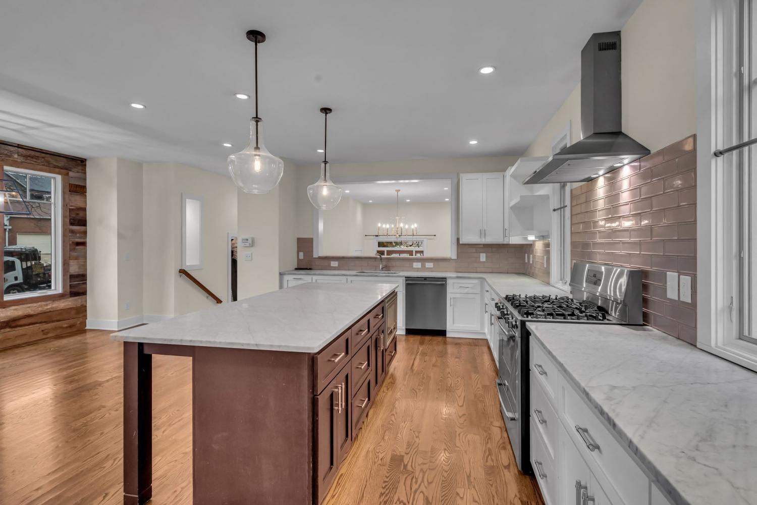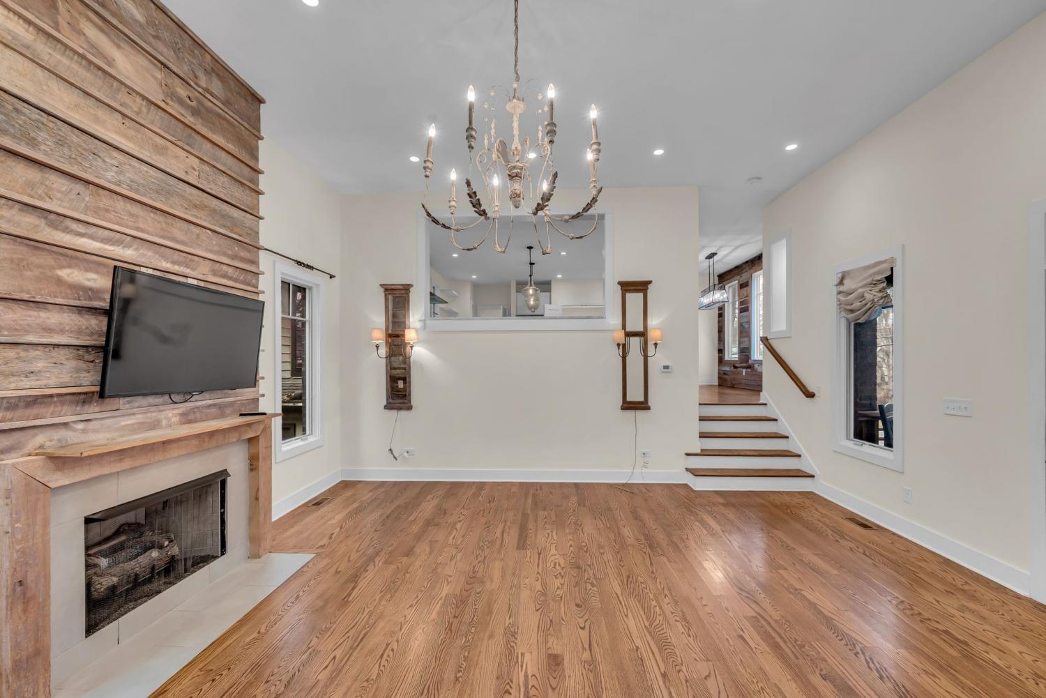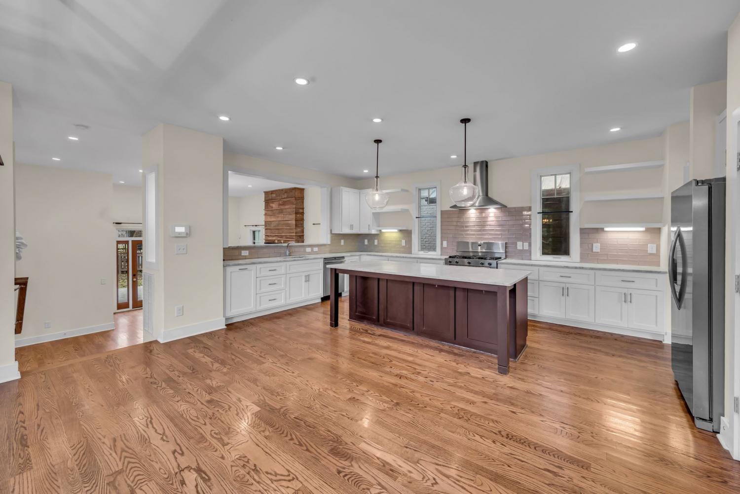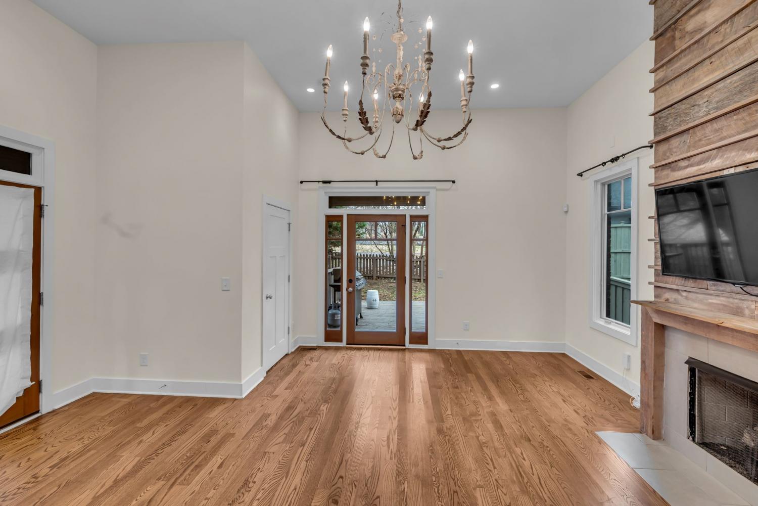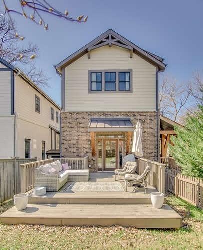 Gorgeous home offers the perfect blend of comfort, functionality, and location in the heart of 12 South. Walkable to neighborhood favorites and zoned for highly sought-after Waverly Belmont Elementary, this thoughtfully designed home checks every box. Main living level features a spacious living room with a cozy fireplace, convenient half bath, and doors that open to an inviting patio and fenced backyard—ideal for entertaining or everyday living. The kitchen is anchored by an oversized island with marble countertops, a generous pantry, and flows seamlessly into a light-filled dining area with room for a large table. On the lower level, enjoy a two-car attached garage with abundant storage, offering both convenience and practicality. Upstairs, the top floor hosts three bedrooms, a washer and dryer, and a versatile landing space perfect for a play area, sitting room, or home office. Primary has large walk in closet, vaulted ceiling, and dual vanities.