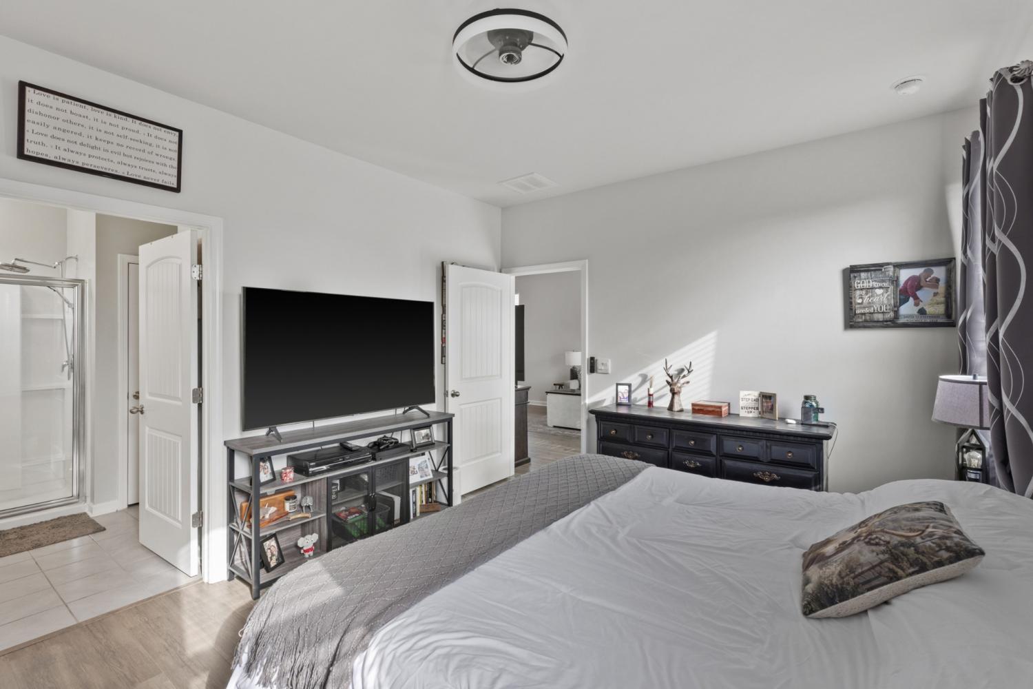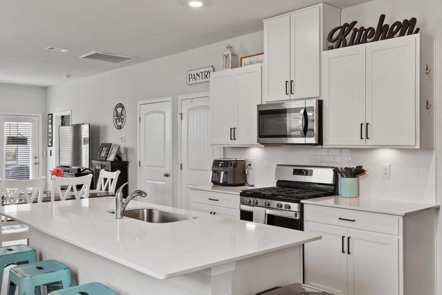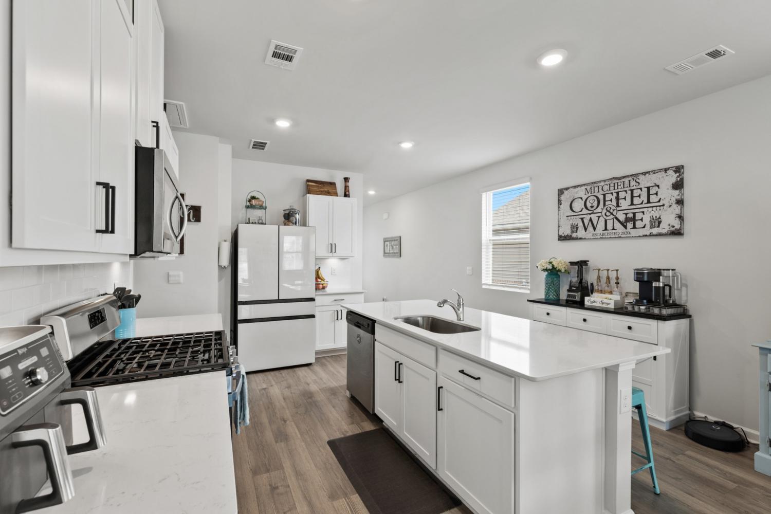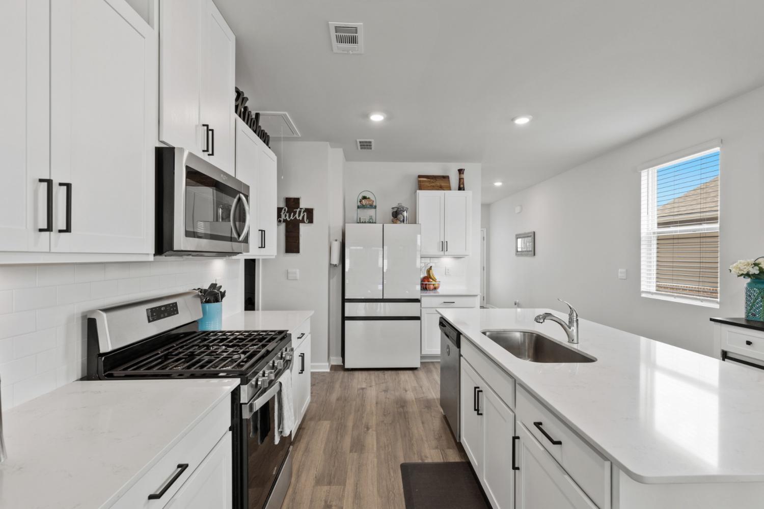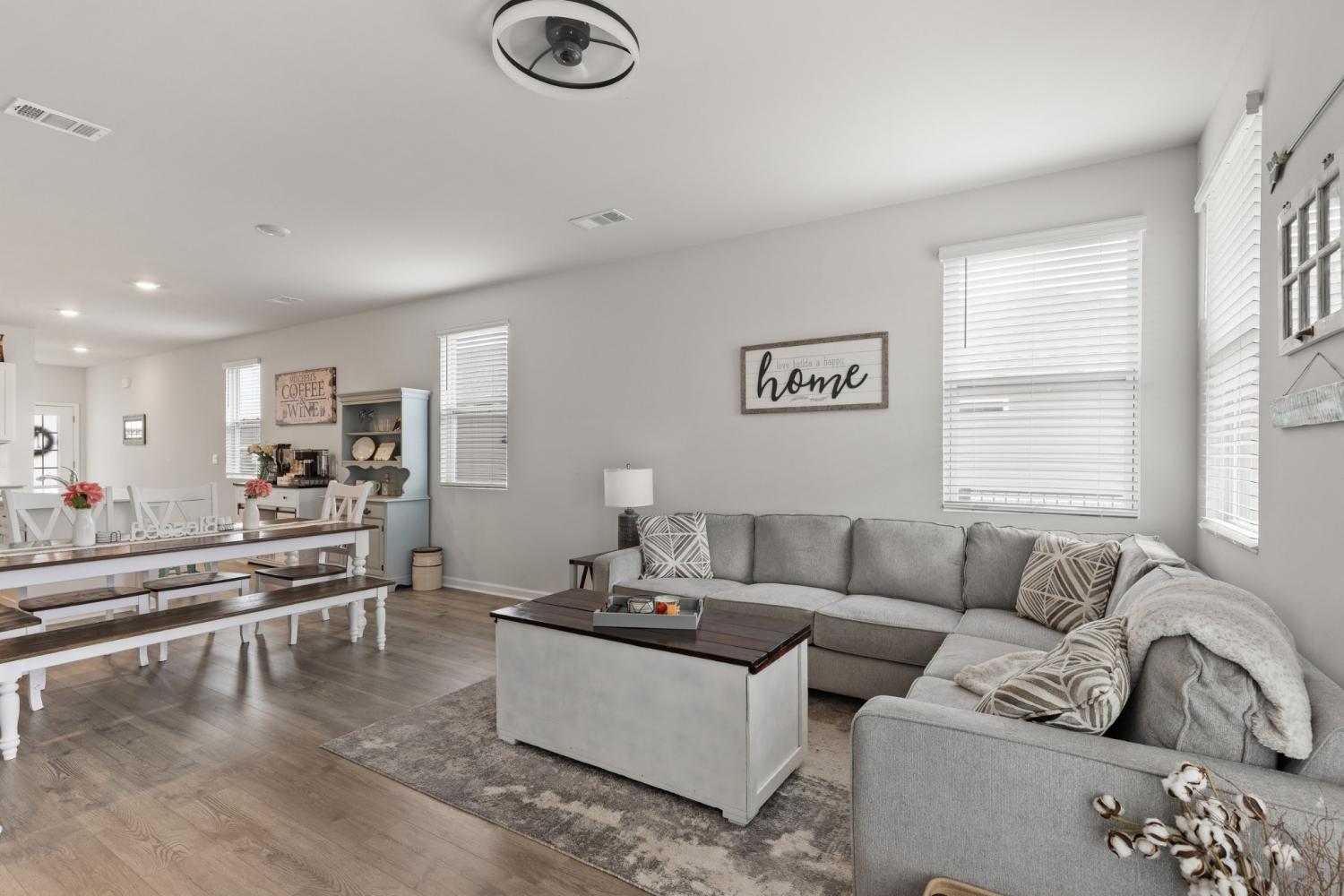 Better than new 2023 construction on a premium lot with no homes to be built behind! This 3-bedroom, 2-bath home offers 1,455 sq ft of thoughtfully upgraded living space in a growing new community. Features include smart home technology, gas heat, gas hot water heater, quartz countertops, upgraded pantry, stone front exterior, and a fully fenced backyard—perfect for pets. Owner upgrades include installed ceiling fans, custom blinds, cabinet hardware, expanded concrete patio, and a 220-volt exterior electrical plug. Enjoy low-maintenance living with modern finishes and privacy that’s hard to find. Move-in ready and truly turnkey!