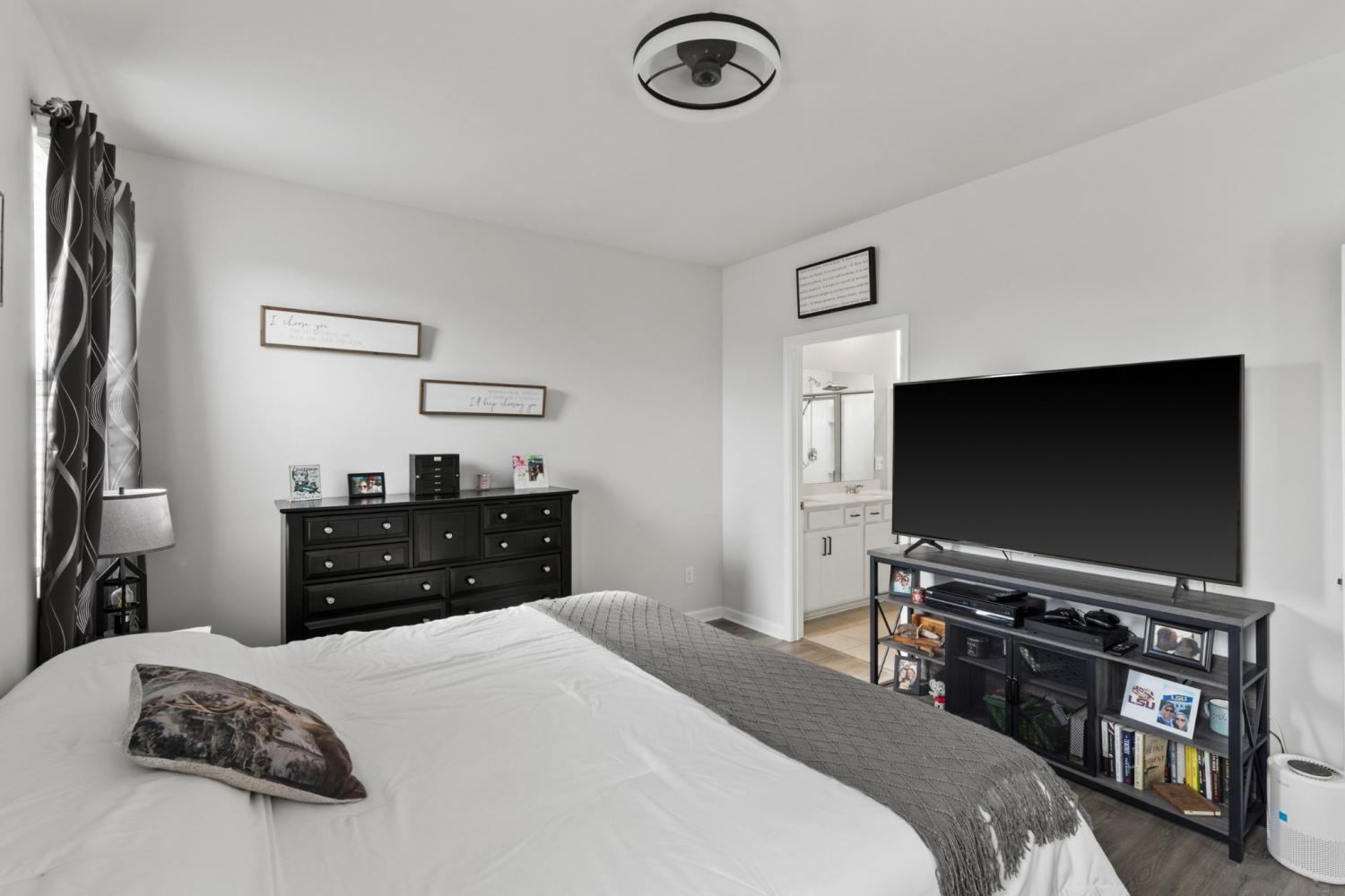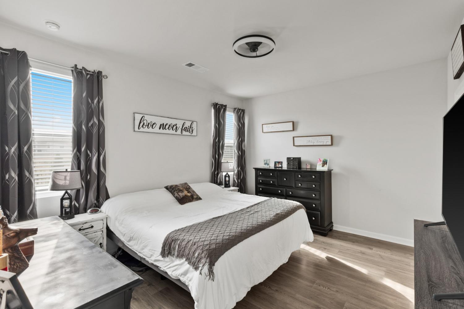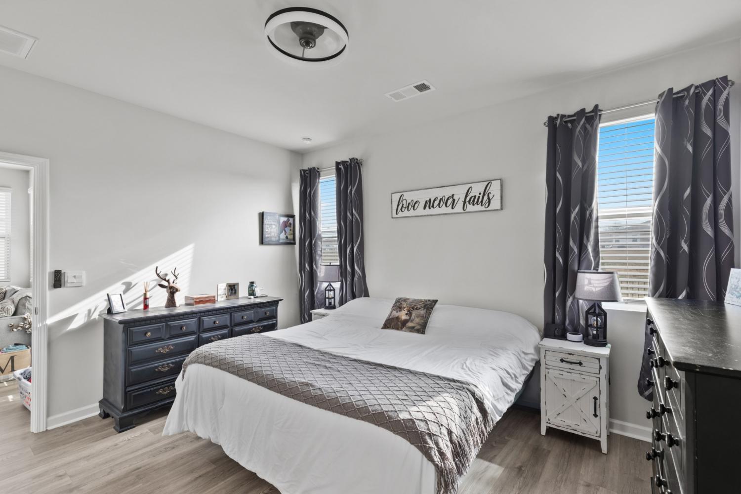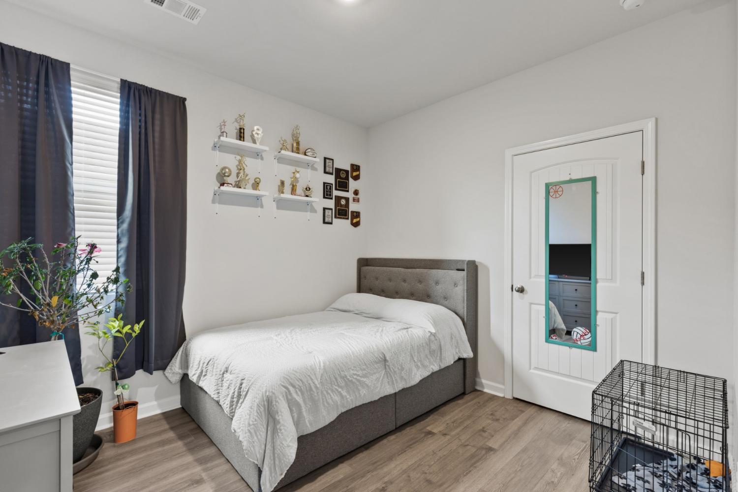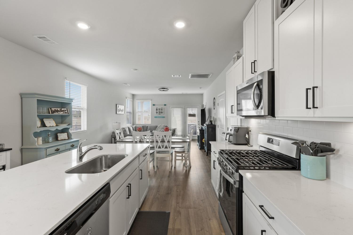 Better than new 2023 construction on a premium lot with no homes to be built behind! This 3-bedroom, 2-bath home offers 1,455 sq ft of thoughtfully upgraded living space in a growing new community. Features include smart home technology, gas heat, gas hot water heater, quartz countertops, upgraded pantry, stone front exterior, and a fully fenced backyard—perfect for pets. Owner upgrades include installed ceiling fans, custom blinds, cabinet hardware, expanded concrete patio, and a 220-volt exterior electrical plug. Enjoy low-maintenance living with modern finishes and privacy that’s hard to find. Move-in ready and truly turnkey!