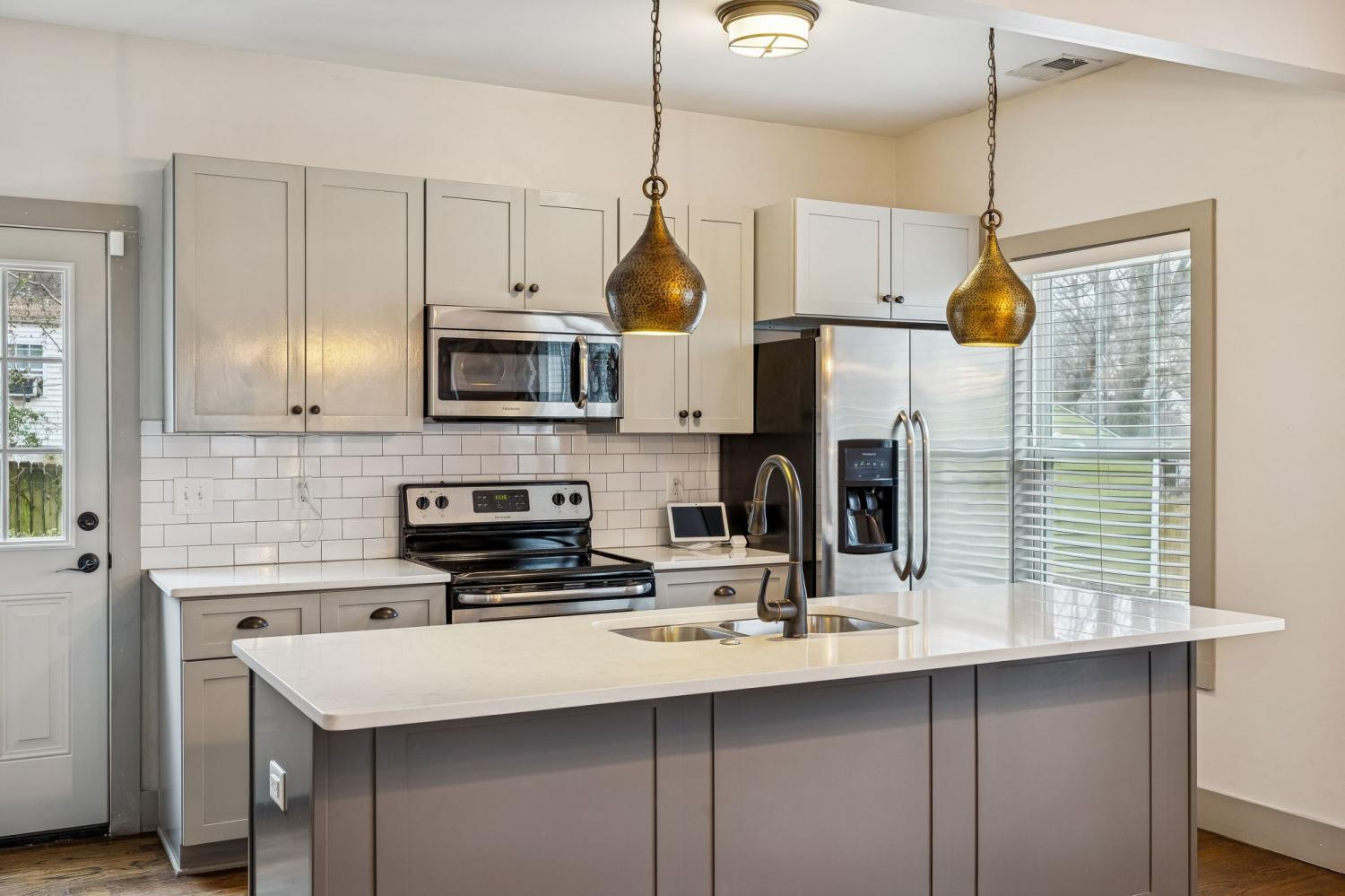 Charming and thoughtfully designed, this 3 bed, 2.5 bath Craftsman-style home offers 1,460 square feet of light-filled living space with a functional open layout ideal for everyday living and entertaining. The main level features a stylish kitchen with quartz countertops, stainless steel appliances, ample cabinetry, and an oversized island that flows seamlessly into the living and dining areas. Upstairs, find a spacious primary suite with a private bath, along with two additional bedrooms and a full hall bath. A versatile flex space provides the perfect setting for a home office, creative studio, or reading nook. Recent updates include a new water heater (summer 2025) and new washer (November 2025). The home is equipped with a programmable Nest Thermostat, Ring doorbell and two additional cameras, plus an ADT security system – all hardware to remain, including front and back door sensors, and one keypad for keyless entry. Outside, enjoy a welcoming covered front porch, concrete parking pad, storage shed, and a fenced-in backyard with deck for easy outdoor living. Conveniently located just minutes from downtown Nashville, and barely five minutes from favorites like Mas Tacos Por Favor, The Pharmacy Burger Parlor & Beer Garden, Spicy Boy's Cajun, and More. Plus, enjoy being part of the Renraw Neighbors Group, which provides community, advocacy, and support for residents of the neighborhood.