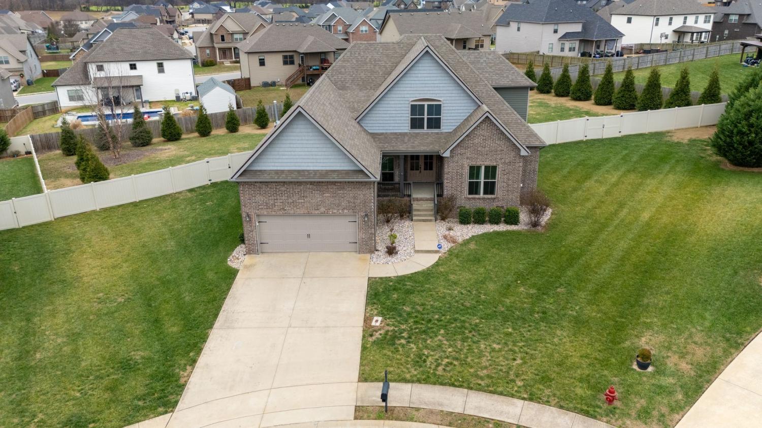 FRESHLY UPDATED AND MOVE-IN READY! This home now features a newly repainted kitchen in a neutral, modern palette, creating a bright and inviting heart of the home. Tucked away on a peaceful cul-de-sac this meticulously maintained, ranch-style home is located within the new Kirkwood School District and checks all the boxes for layout, location, and lifestyle. Step inside to find rich hardwood floors flowing throughout, into an open-concept living area designed for both entertaining and everyday living. The heart of the home is the chef-inspired kitchen, complete with a massive center island, custom cabinetry, a walk-in pantry, and modern finishes. Convenient, first-floor living sets this home apart, with the gorgeous master suite and two generously sized bedrooms completing the first floor. Upstairs, you'll find an additional 400+ square feet of living space, which impressively includes a fourth bedroom, full bathroom and large bonus area. The options are limitless: create a teen retreat, multigenerational suite, home office, or private primary getaway. Outside, enjoy over 0.5+ acres with a fenced-in backyard, ideal for kids, pets, or backyard entertaining. The oversized lot provides endless possibilities—gardening, play space, or even your future pool. This is more than just a house—it’s the perfect place to call home in one of Clarksville’s most sought-after neighborhoods and only 45 minutes to Nashville International Airport!