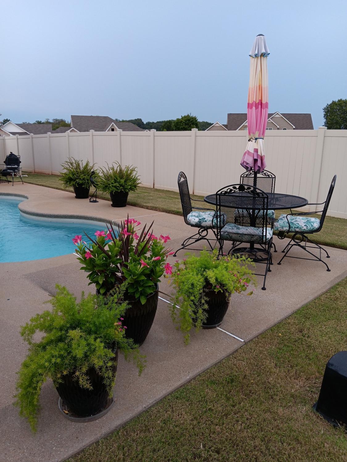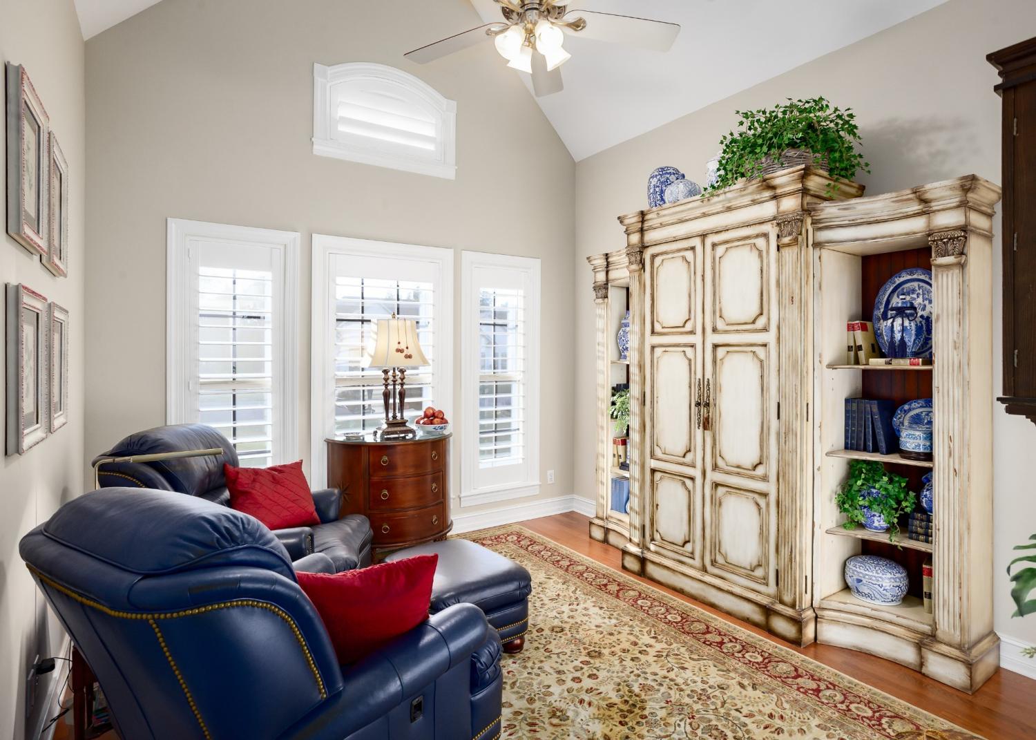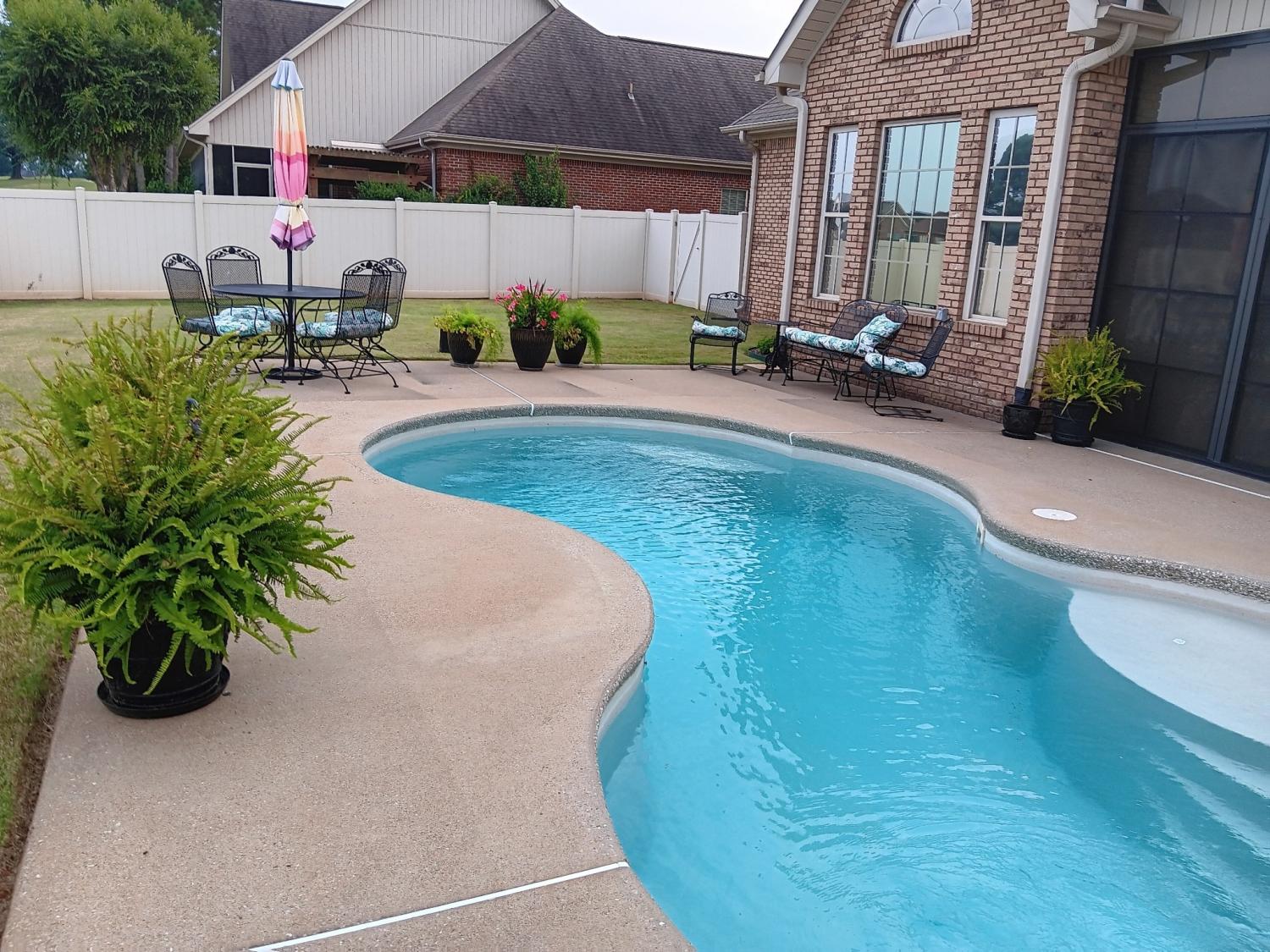 This stunning home is located in Plantation Springs & situated on Blackberry Trail Golf Course. Featuring plantation shutters & wood floors throughout the common areas, crown molding, & a vaulted kitchen with granite countertops & stainless steel appliances, this home offers style at every turn. The master suite boasts a trey ceiling, his-&-her walk-in closets, a double vanity, jetted tub, & walk-in shower. A vaulted office could be a potential 4th bedroom, plus there’s a spacious bonus room for added flexibility. Enjoy the screened sunroom with collapsing windows, perfect for year-round living, overlooking the inground pool. A detached garage/workshop provides extra storage and hobby space.