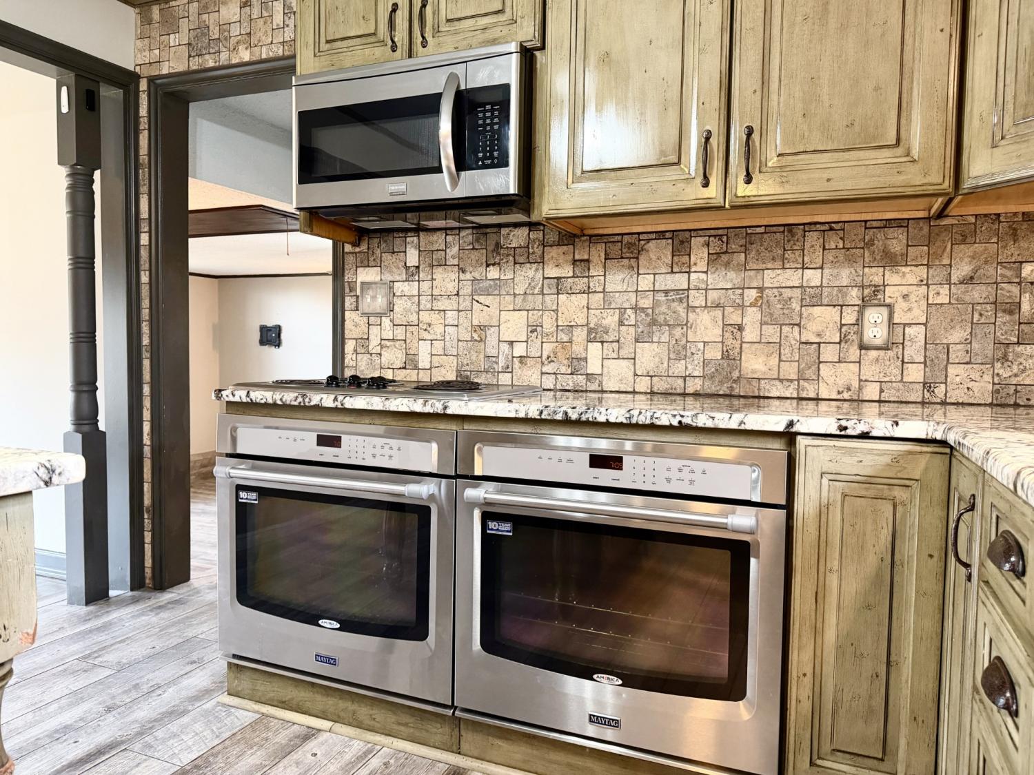 Step into this stunning 3 bedroom, 2 bath home boasting an impressive 2,059 sq ft of beautifully finished living space. From the moment you enter, you’ll notice the thoughtful upgrades and warm, inviting design that make this home truly stand out. The modern kitchen is a showstopper, featuring a spacious island, stylish backsplash, double oven, and sleek stainless steel appliances perfect for cooking, entertaining, or gathering with friends and family. Just off the main living area, you’ll find an attached bonus room, ideal for a home office, playroom, or additional lounge space. Cozy up in the expansive fireplace room, offering the perfect setting for relaxing evenings or hosting guests. All bedrooms are generously sized, and both bathrooms are updated with quality finishes. Outside, enjoy a large fenced-in yard, providing privacy and plenty of room for outdoor activities, pets, or gardening. The home also includes an attached 2-car garage, offering convenience and extra storage. This property blends comfort, style, and functionality. Everything you want in your next rental home. Pets allowed with $300 pet fee per pet. No more than 2 pets, no vicious breeds or puppies under 12 months old.