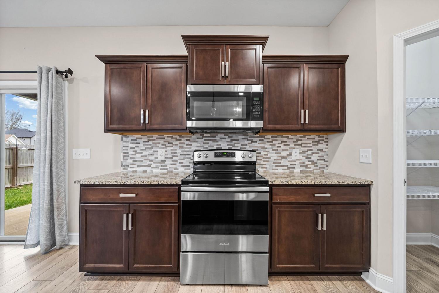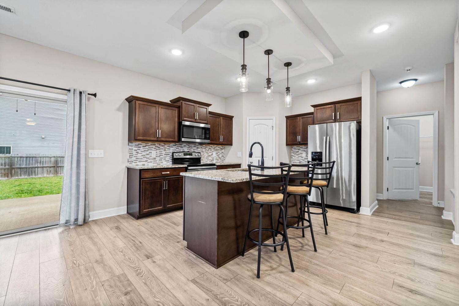 **1ST TWO WEEKS FREE RENT!** Stunning 4-bedroom, 2.5-bathroom residence boasts a large open floor plan, perfect for entertaining and comfortable living. Step into the formal entryway and be greeted by chic laminate flooring that extends throughout the living room to the kitchen. The kitchen features an island, granite countertops, and stainless steel appliances. The spacious primary bedroom is a true retreat, offering a walk-in closet and a double vanity with an extra-large walk-in tiled shower. Enjoy the privacy of a fenced-in backyard and a covered patio equipped with a ceiling fan, perfect for those warm summer days. Home allows for 2 pets weighing 70 lbs. or less, pet fees and restrictions apply.