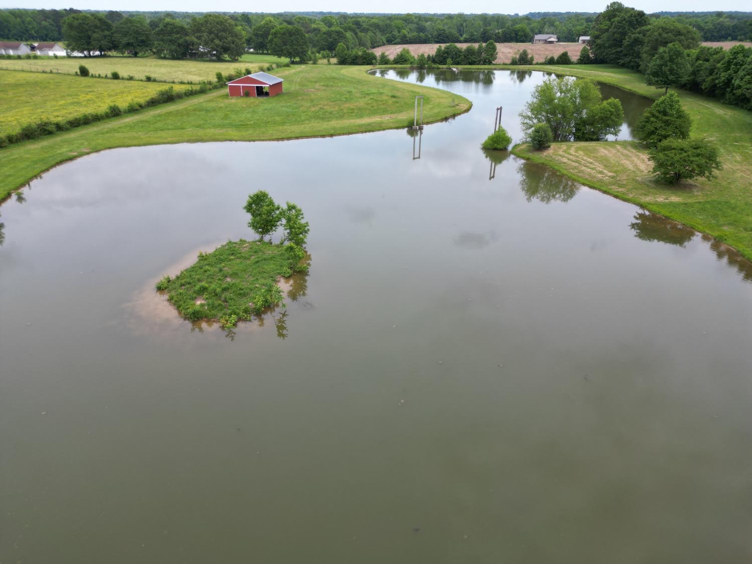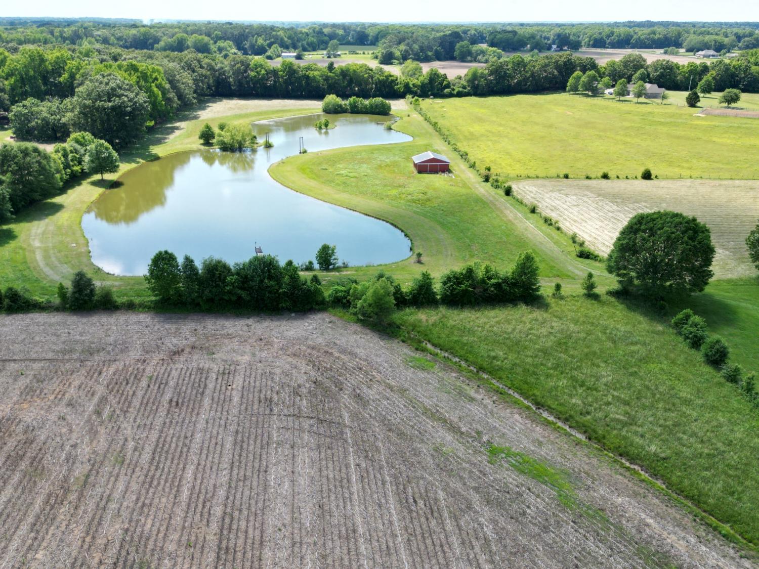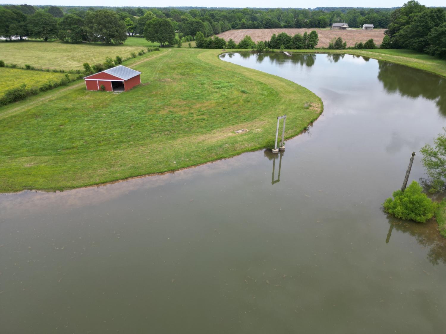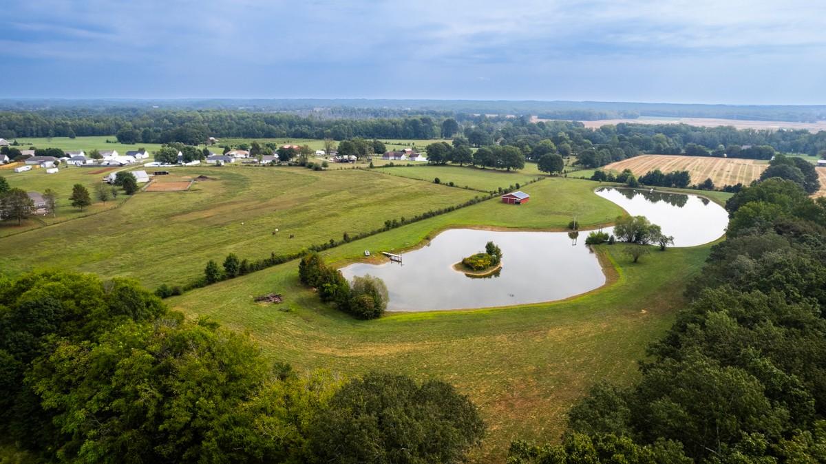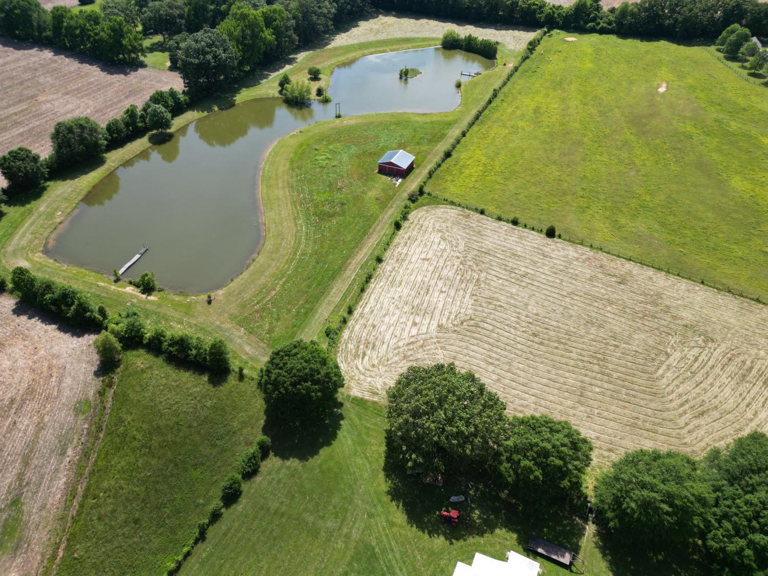 This stunning property, approximately 22.4 acres in size, is located in Lincoln County and offers a diverse range of features: a 3-bedroom, 2-bathroom home with 1,876 square feet of living space, a two-car insulated detached garage, two barns approximately 900 sf each, an outbuilding, a storm shelter, and a 4-acre pond that is stocked with fish. The spacious screened front porch, equipped with two ceiling fans, provides a covered entryway to the home. Two of the bedrooms feature wood flooring, while the primary bedroom is fitted with durable vinyl flooring. The kitchen appliances, along with the washer and dryer, are included in the sale. At the rear of the house, there is a patio area adjacent to the detached garage. The property is already fenced, making it suitable for livestock! It includes open yard space, pasture land, and cropland, as well as peach, apple, and pecan trees. Please refer to the documents for further details.