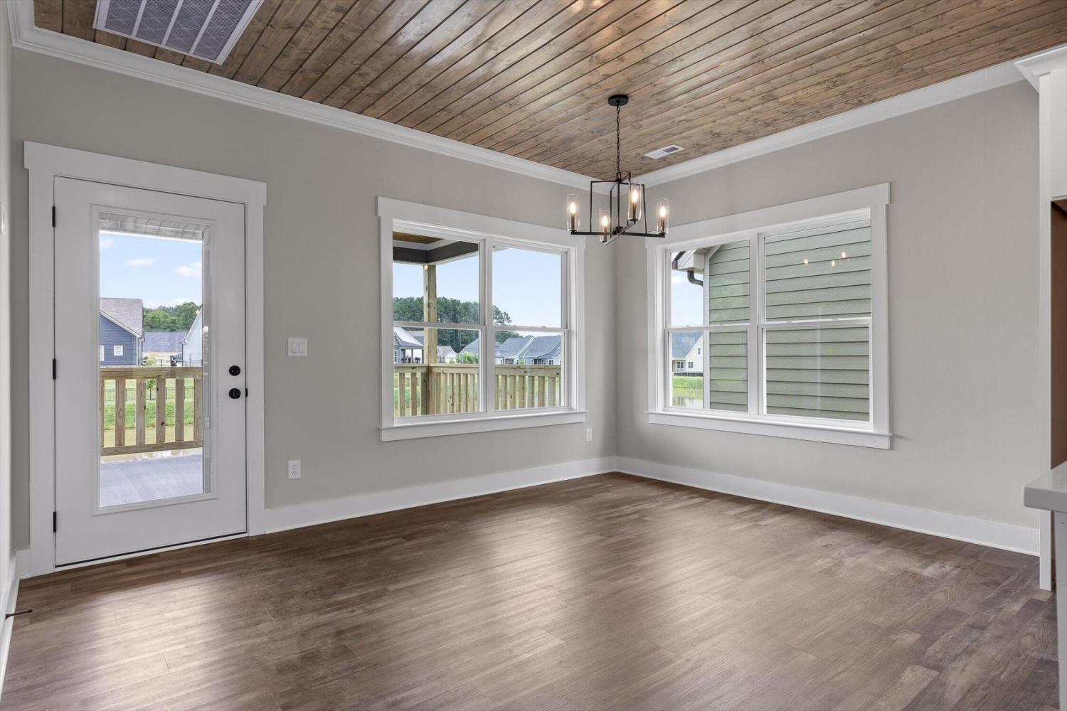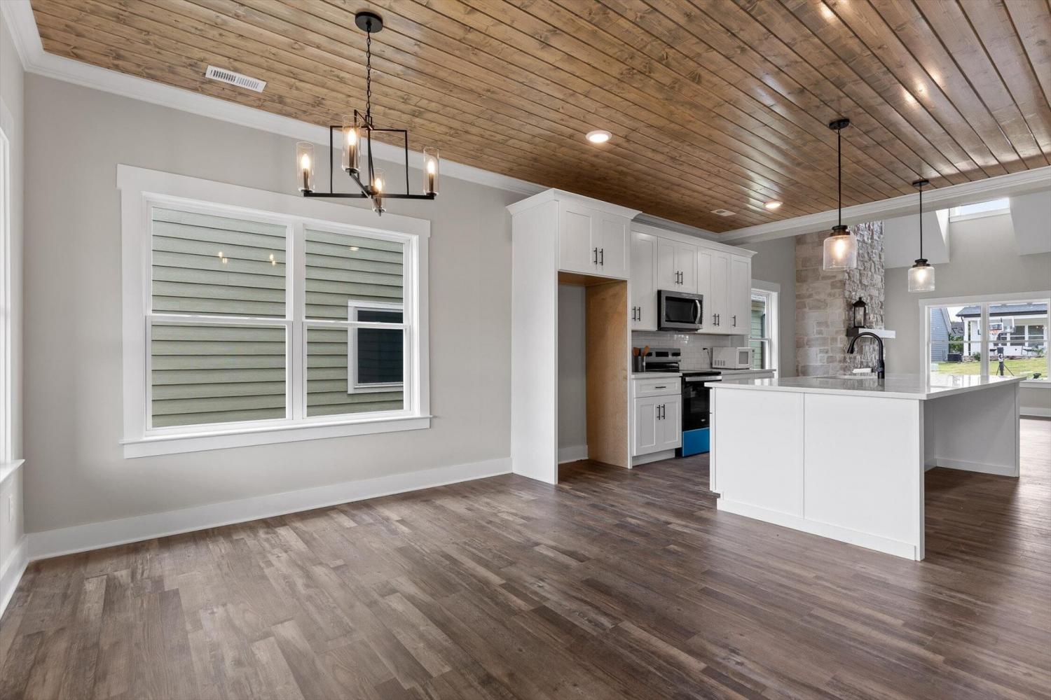 Find your perfect haven in this impressive new construction home, showcasing a well-designed floor plan. The primary bedroom, located on the main level, features a vaulted ceiling and an en-suite with a rejuvenating soaking tub and a generous tile shower. The kitchen with a tongue and groove ceiling is ideal for cooking and entertaining, with a spacious island, ample cabinetry, and a pantry. Upstairs, you'll discover three comfortable bedrooms and two full baths, while the outdoor concrete porch provides a relaxing spot to enjoy the community pond views. Don't miss out on living in this community that's convenient to shopping and dining. Heritage School Zone. Pets Allowed - deposit required. Seller will also consider lease purchase option with 10% down payment.
