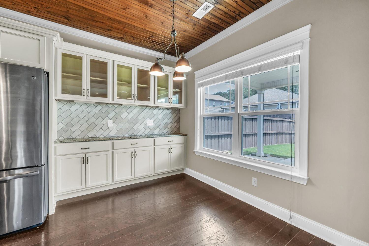 Welcome to your dream home at 5644 Bungalow Circle, a beautifully expanded and thoughtfully upgraded residence in the desirable Amberbrook Gardens community of Hixson. With 4 bedrooms, 3 full baths, a large finished bonus room, and walk-in attic storage, this nearly 2,800 sq ft home blends timeless design with modern comfort on a fully fenced, flat lot in a peaceful, sidewalk-lined neighborhood. Step through the wood front door with sidelights into a bright foyer featuring hardwood floors, a formal dining room to the left, and a wrought iron spindle staircase to the right. The spacious great room showcases a floor-to-ceiling cultured stone gas fireplace and flows into the expanded gourmet kitchen, which includes Merillat Classic cabinetry, a tongue-and-groove pine ceiling, under-cabinet lighting, glass-front cabinets, and a diagonal tambour appliance garage. A breakfast area and recently updated appliances (2-year-old dishwasher and microwave) complete the space. On the main level, a guest suite with full bath offers privacy, along with a custom mudroom with built-in cubbies and garage access via keypad. Upstairs, the primary suite features a tray ceiling, spa-like bath with Jacuzzi tub, tiled shower, double vanities, and a custom walk-in closet. Two additional bedrooms, a third full bath, and a spacious bonus room with expanded attic storage complete the second floor. The home also features hardwood throughout the main level, fresh paint, and new carpet upstairs. Enjoy the outdoors from the covered back porch overlooking the sunny yard. Upgrades include a two-zone irrigation system, lawn meter, French drains, buried downspouts, and extra water outlet. The cultured stone front porch with hanging lights adds charm. Located minutes from Big Ridge Elementary, Publix, Target, Northgate Mall, and Greenway Farms (8 min), Chester Frost Park (7 min), and only 18 minutes to Downtown Chattanooga - this home is a true Hixson gem. Schedule your showing TODAY!
