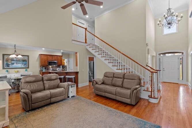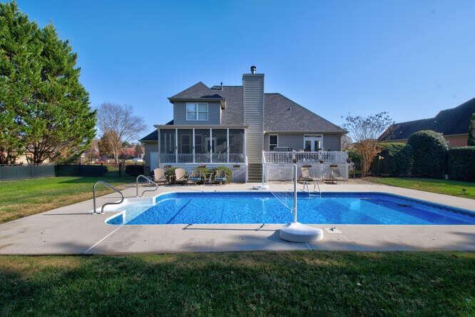 Welcome to this beautifully maintained 4-bedroom, 2.5-bath home in the desirable Crystal Brook neighborhood, perfectly situated in the highly sought-after Apison school zone. A private back gate offers the ultimate convenience, just steps from Apison Elementary and East Hamilton Middle. Inside, you'll find a warm, inviting open floor plan designed for both everyday living and entertaining. The kitchen shines with newer quartz countertops, stainless steel appliances, a gas range, and a large single-basin sink with a restaurant-style faucet. The living room centers around a cozy gas fireplace, creating the perfect gathering space. The primary suite is thoughtfully tucked away on the main level for added privacy. The ensuite bath features a jetted tub, separate shower, double vanity with under-mount sinks, and an impressive custom walk-in closet. Step through the double doors from the primary bedroom into your own outdoor retreat. Out back, enjoy a covered and screened-in porch overlooking a heated in-ground pool, perfect for year-round enjoyment. A large, separate workshop includes built-in heaters and hot water, ideal for hobbies or extra storage. Custom storage has also been added beneath the entire deck. A spacious two-car garage completes the main level. Upstairs, you'll find three additional bedrooms and a full bathroom, offering plenty of space for family, guests, or a home office. This home truly has it all: location, comfort, and thoughtful upgrades throughout. Showings begin on Sunday January 18. Call to schedule your showing today!