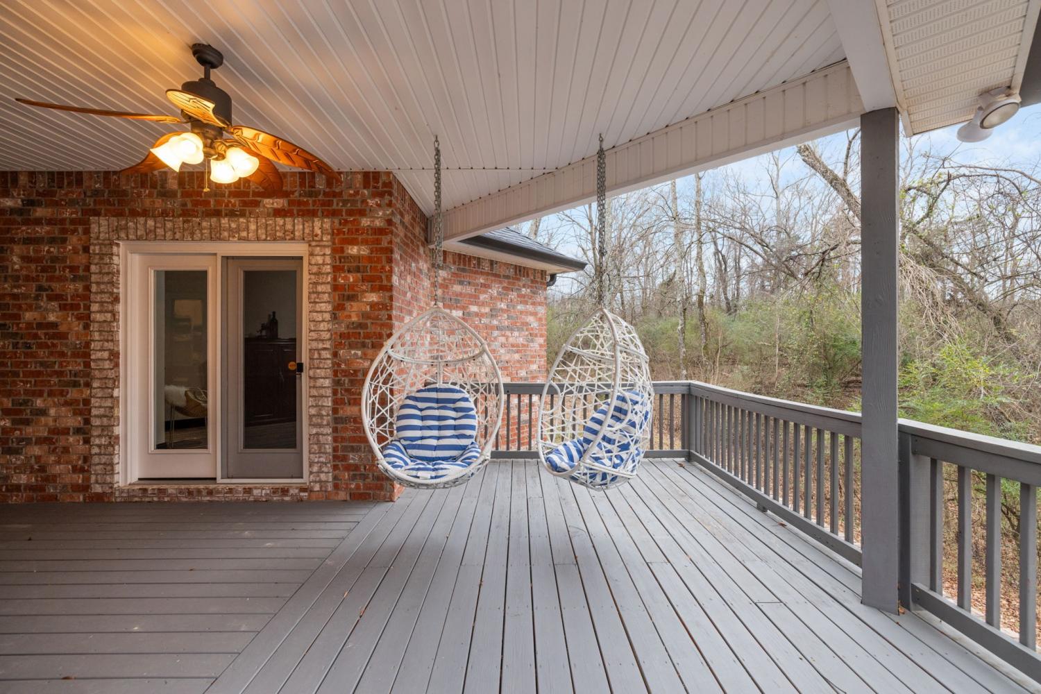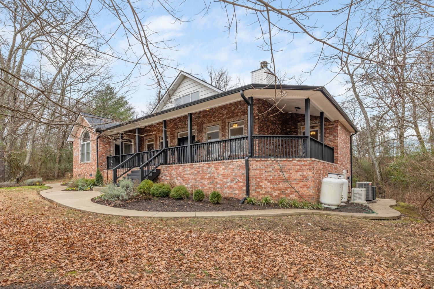 Experience Tennessee living at its finest in this stunning brick home set on 1.9 acres with a river view from the front porch and wooded privacy behind. A wraparound porch captures breathtaking sunrise and sunset views. The main level offers three bedrooms and two full baths, while an upstairs bonus/media room with a full bath sits above the oversized three-car garage. Designed for primarily one-level living, the home features generous storage and thoughtful upgrades throughout, including a chef’s kitchen with an oversized island, abundant cabinetry, double ovens, cooktop, and stainless steel appliances. Architectural details include arched doorways and a wood-burning fireplace with stone surround. Updated bathrooms complete the interior. Enjoy views of the Cumberland River and easy access to Cedar Creek Marina, just a 15-minute drive away.