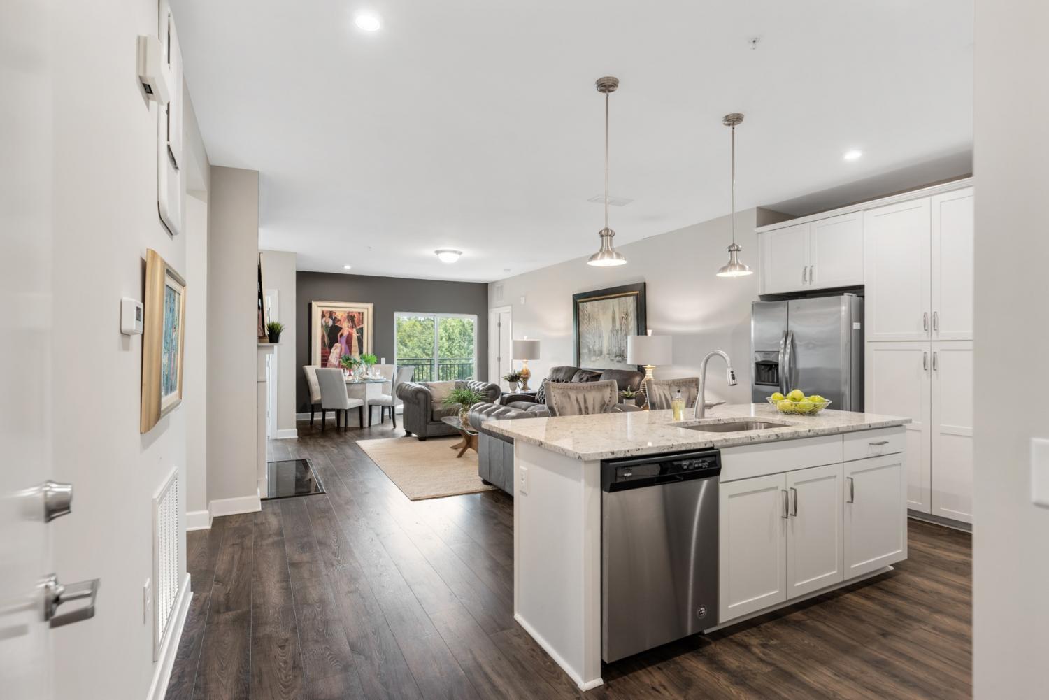 Welcome to your penthouse retreat in this 55+ community, where convenience, comfort, and lifestyle converge. Purchased by the original owner prior to construction, this residence occupies the prime top-floor location with unobstructed views of the park, walking trails, and the annual 4th of July fireworks. No other units on this level with these views have ever been offered for resale, making this a rare opportunity. The attached garage is in a premium location, just one space away from the building’s main entrance and directly connected to the lobby for ease of access. Builder upgrades include a gas fireplace for cozy evenings and a dedicated home office with a built-in desk. The washer and dryer remain with the home, providing true move-in readiness. Step outside onto your private balcony and take in the serene tree-lined views. The community’s location is unmatched—within walking distance to Hendersonville Library, Hendersonville Greenways & Park, and The Shops at Indian Lake, offering endless options for dining, shopping, and entertainment.