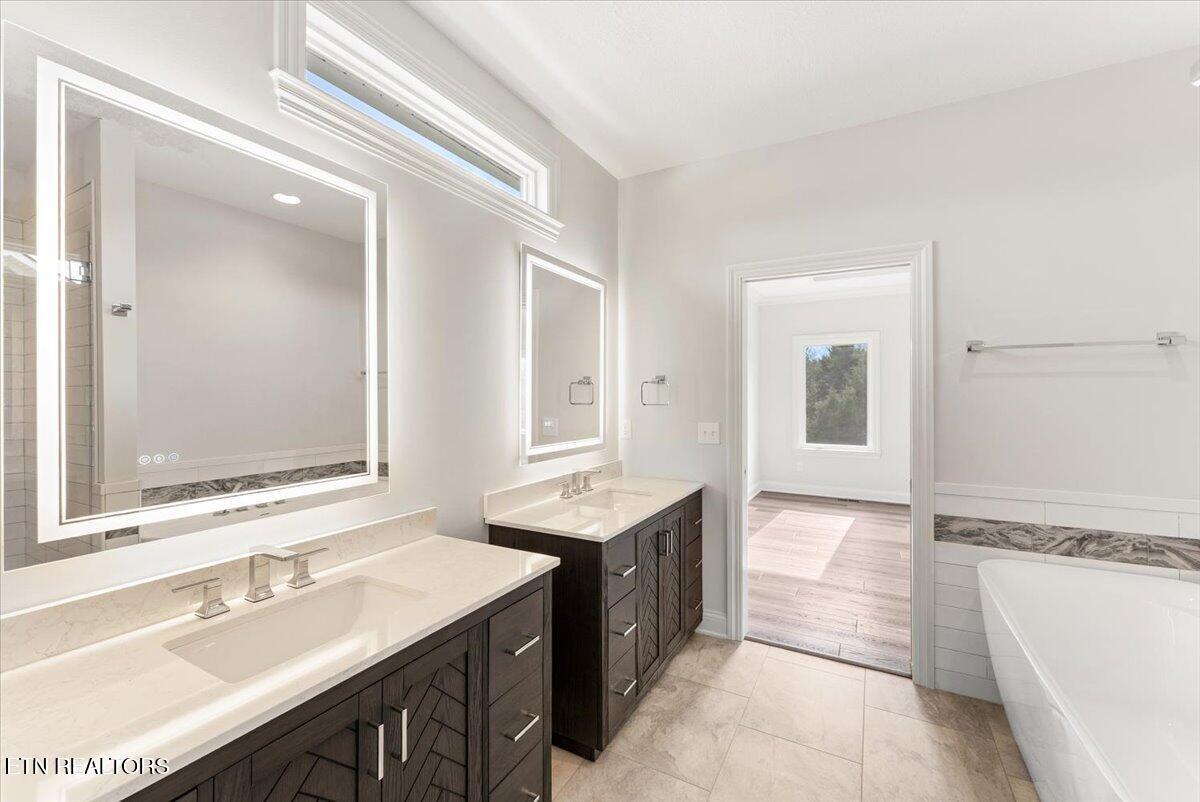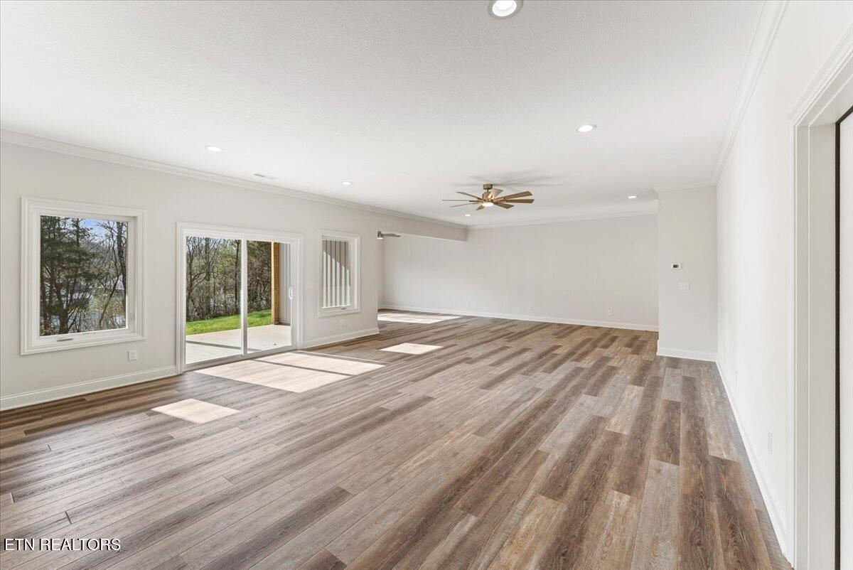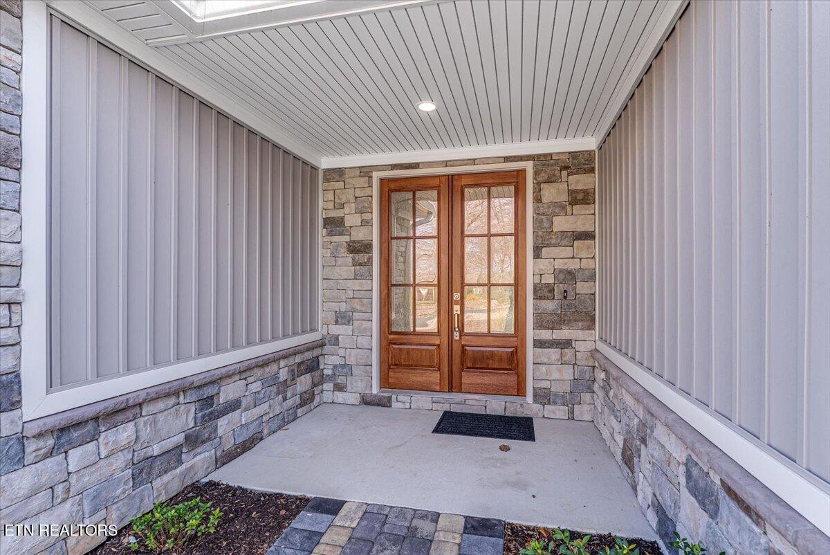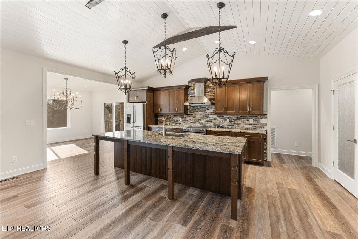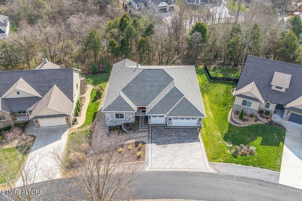 This exceptional new construction showcases the signature craftsmanship of Fred Hans, a long-standing and highly respected custom home builder in Tellico Village for decades. Known for thoughtful design, enduring quality, and attention to detail, his homes are recognized for blending functionality with refined architectural presence. Uniquely designed with a one-of-a-kind floor plan, the home welcomes you through a dramatic foyer featuring double 8' glass doors, intentionally separating the entry from the expansive vaulted great room and kitchen beyond. Inside, you're immediately drawn into a stunning open-concept great room and kitchen highlighted by vaulted shiplap ceilings, abundant natural light, and elevated finishes throughout. The great room opens through 4 panel sliding doors to a maintenance-free screened deck, ideal for year-round enjoyment. The spacious dining area—also accented with shiplap ceilings—features two additional sliding doors leading to a second maintenance-free covered deck with an exterior staircase to the backyard, offering seamless indoor-outdoor living and entertaining. The kitchen is as functional as it is beautiful, featuring granite countertops, upgraded KitchenAid appliances, a brick backsplash, and an oversized island with decorative posts that comfortably seats 6. Custom cherry cabinetry and two separate pantries with rain-glass doors complete this well-appointed space. The thoughtfully planned main level includes two large guest bedrooms with oversized closets, privately positioned away from the primary suite. The luxury primary retreat features two walk-in closets and a spa-inspired bath with a custom tiled walk-in shower with glass door, dual free-standing vanities with granite countertops and lighted mirrors, a dramatic vessel soaking tub, and a private water closet. The home features custom tiled walk-in showers with glass doors and upgraded flooring in all bathrooms.