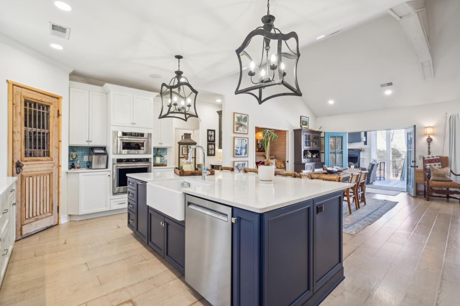 Looking for the perfect place to retire or just escape from the hustle and bustle? This is it! Welcome to paradise near Kentucky Lake! This magnificent home was built in 2022 and offers unparalleled luxury & comfort. When entering the home, you will notice the bright, spacious & open floor plan. The soaring ceilings with beams and beautiful blonde hardwood floors create an elegant ambiance throughout. The kitchen is a chef's delight with custom-design features, immense counter space, coffee bar and pantry. The Primary suite offers double sinks, tiled walk-in shower and soaker tub. The master walk-in closet leads into an enormous laundry room with storage and a workstation. Enjoy your outdoor kitchen and cozy fireplace while sitting at the bar taking in the breathtaking views of Kentucky Lake. The fenced-in yard is the perfect place to entertain and gather for a game of bocce ball, corn hole or horseshoes. Easy access to the lake—ideal for launching your boat, fishing, paddleboard or kayak for a day of fun on the water. For those who love the lake lifestyle, the 2-car garage provides plenty of room for all your gear—whether it’s skis, bikes, or paddleboards. Breakers Marina Restaurant & Bar and other locally owned restaurants are a short golfcart or ATV ride away. Whether you're seeking a full-time residence or a vacation retreat, this gem is a rare find. Conveniently, located to Paris Landings State Park, 15 minutes from downtown Paris that offers shopping and restaurants, 30 minutes from Henry County Airport, Clarksville only 30 minutes away, or take in the beautiful views while driving to Nashville.