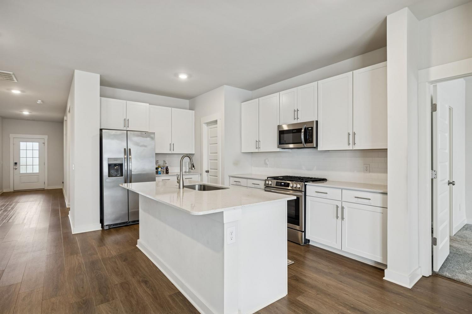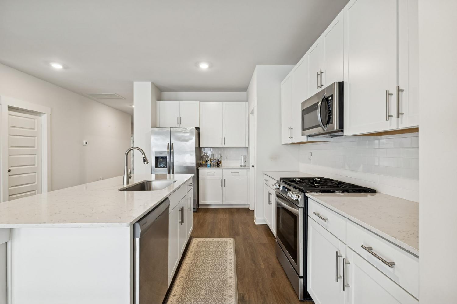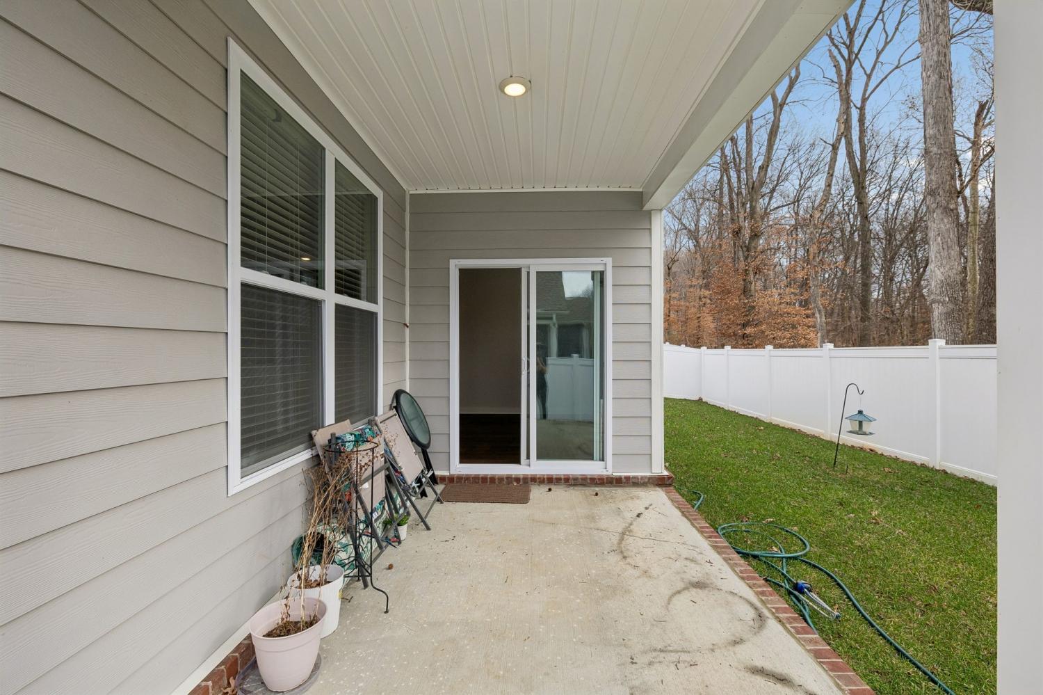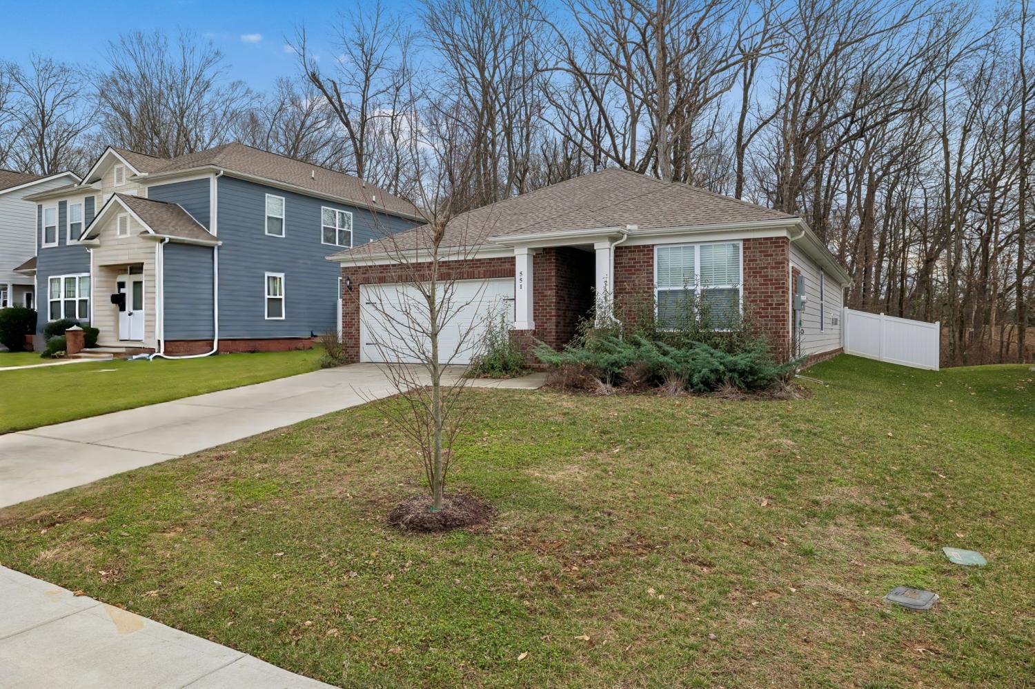 From the moment you step inside, this home invites you to slow down and settle in. Built in 2023 and lovingly cared for by its original owner, this 3-bedroom, 2-bath home blends modern comfort with a sense of calm that’s hard to find. Sunlight fills the open living spaces, where LVP flooring and a cozy gas fireplace create an inviting backdrop for both quiet evenings and easy gatherings. The heart of the home is the bright, white kitchen—clean, crisp, and welcoming—with an eat-in island that naturally becomes the place for morning coffee, homework, or catching up at the end of the day. Stainless steel appliances, a gas range, and a pantry keep everything both beautiful and functional, while the open layout allows the kitchen, dining, and living areas to flow effortlessly together. Thoughtful details make everyday life easier, from the mudroom drop zone just off the garage to the separate laundry room tucked neatly away. The front bedroom, filled with soft natural light, offers the perfect space for a home office, creative studio, or quiet retreat. The primary suite is a true place to recharge, featuring a spacious tiled step-in shower and a large walk-in closet that offers both comfort and convenience without compromise. Step out back to a covered patio and fenced yard where the view opens to peaceful woods beyond—no neighbors staring back, just a sense of privacy and breathing room. It’s an ideal spot for slow mornings, evening conversations, or simply unwinding after a long day. Set in a quiet neighborhood on the edge of town, yet just minutes from everything you need—and only a hop, skip, and a jump from H.B. Williams Elementary—this White House home offers that rare balance of convenience, comfort, and calm. It’s not just move-in ready; it’s ready to be loved.