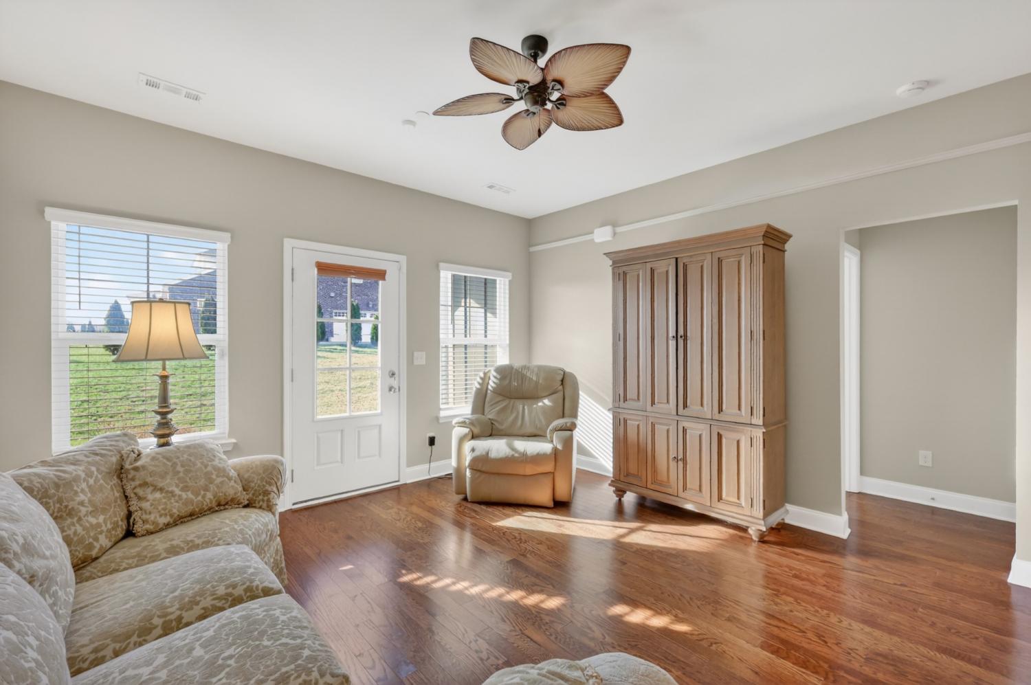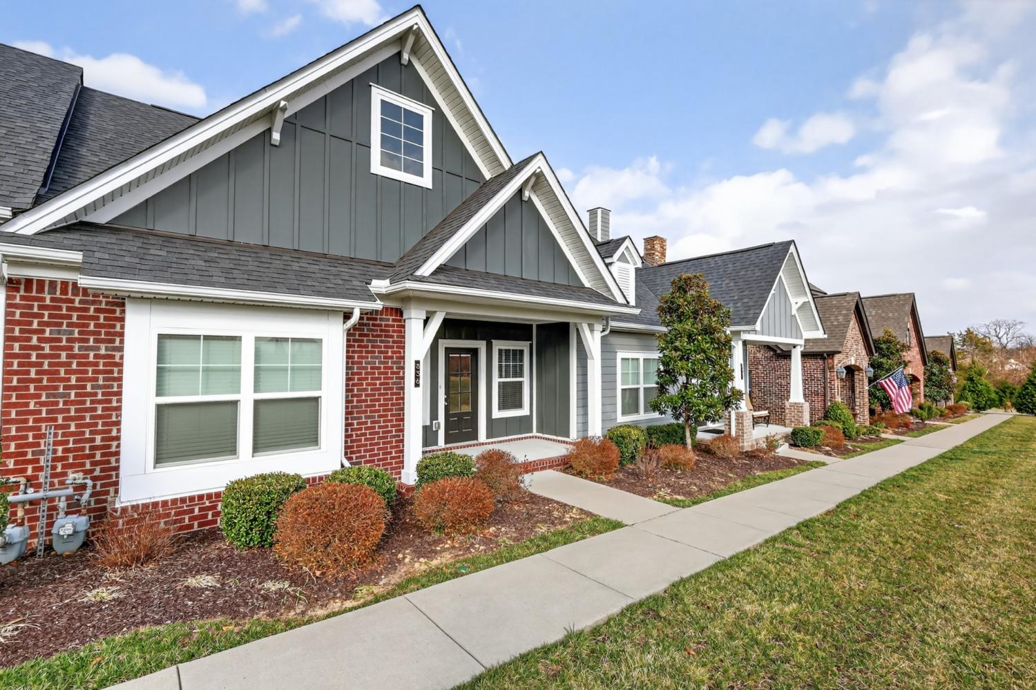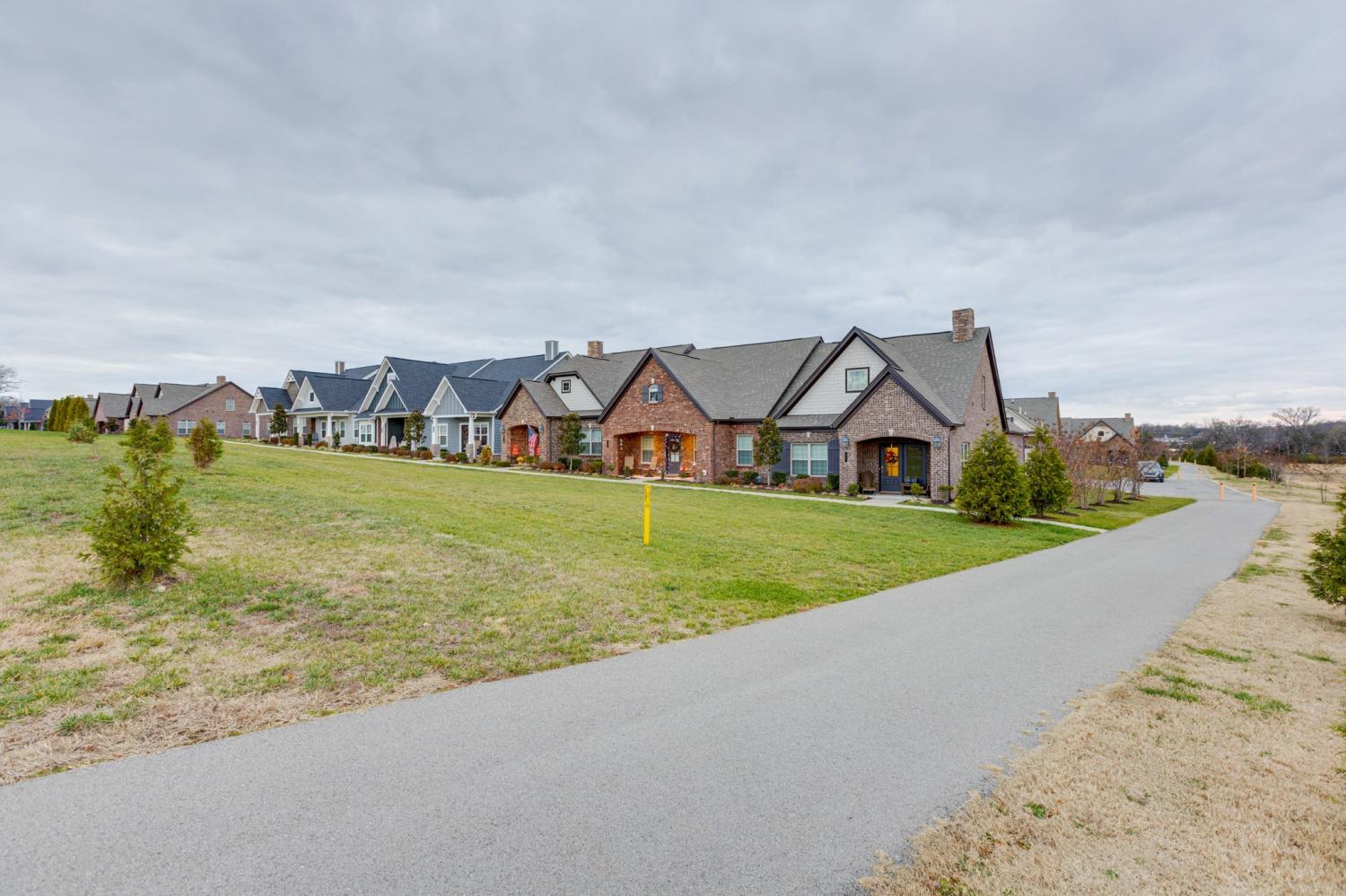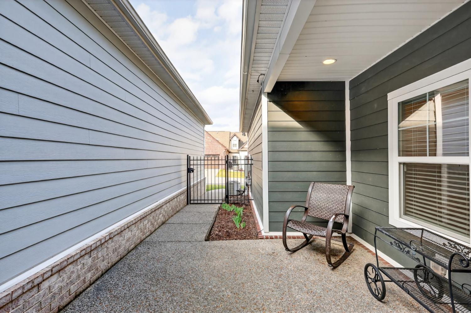 An exceptional opportunity for relaxed ONE-STORY living in the sought-after 55+ Cottages of Nolen Mill in Williamson County. The open Ashleigh floorplan offers effortless, single-step entry from the attached two-car garage (with attic storage above). Neutral paint colors enhance a thoughtfully curated interior featuring granite countertops, stainless steel appliances—including a Bosch refrigerator—and a spacious pantry. The kitchen is accented by warm, natural wood cabinetry with pull-out shelving, while rich oak hardwood floors add timeless character throughout the main living areas. The primary suite is designed for comfort and ease, featuring a custom step-in tile shower and dual vanities. Outdoor living is equally inviting with a private, gated courtyard ideal for quiet relaxation, complemented by a wide covered front porch overlooking manicured green space and gently rolling hills. Residents enjoy a beautifully walkable community with paved trails, a dog park, and convenient proximity to the Williamson County Recreation Center and Nolensville Farmers market—offering a lifestyle defined by comfort and convenience.
