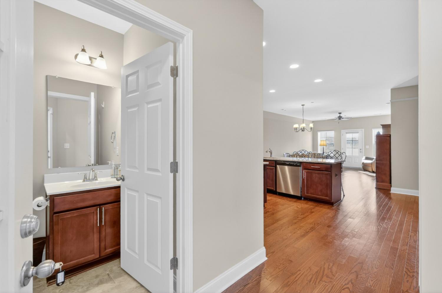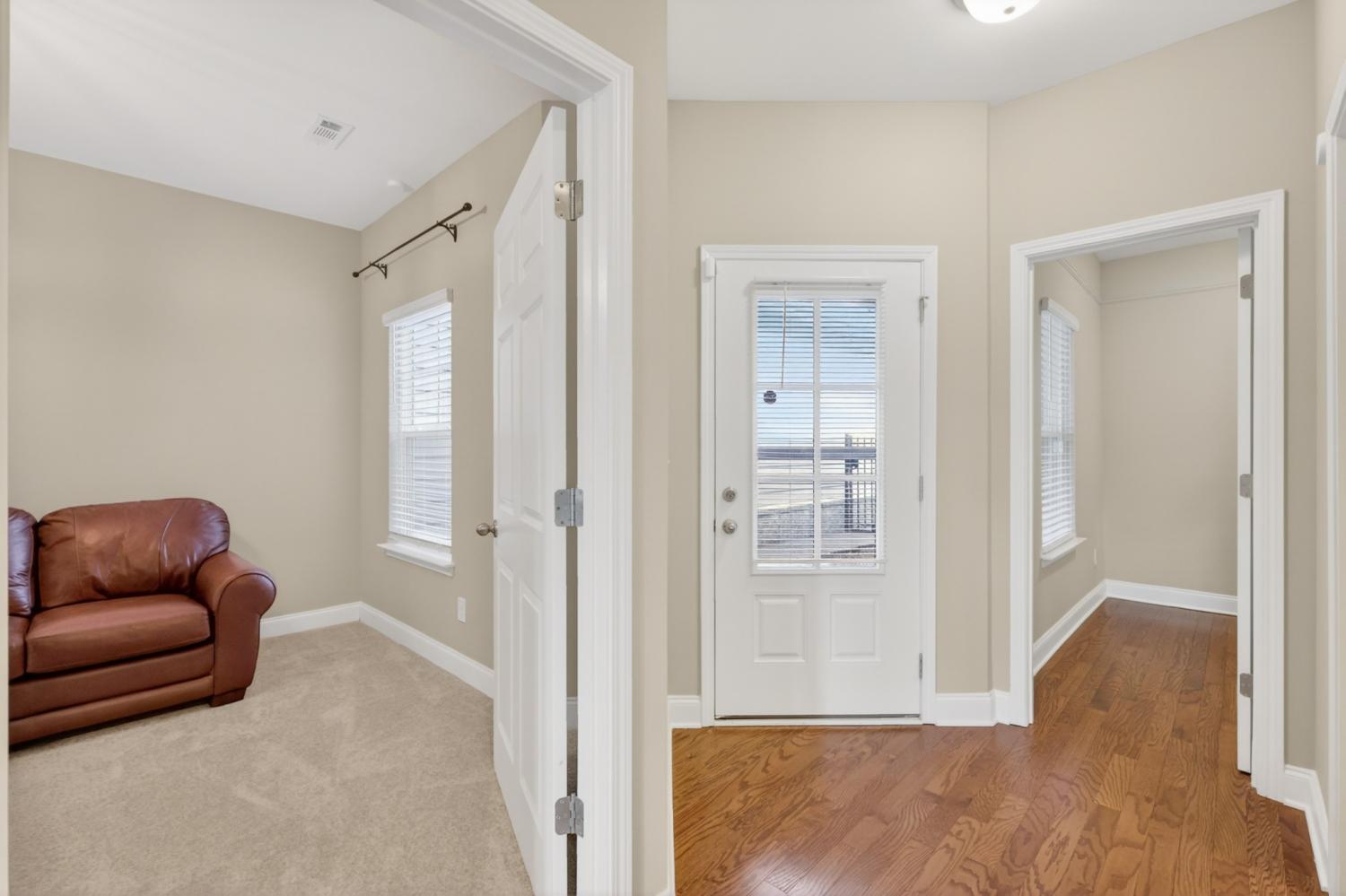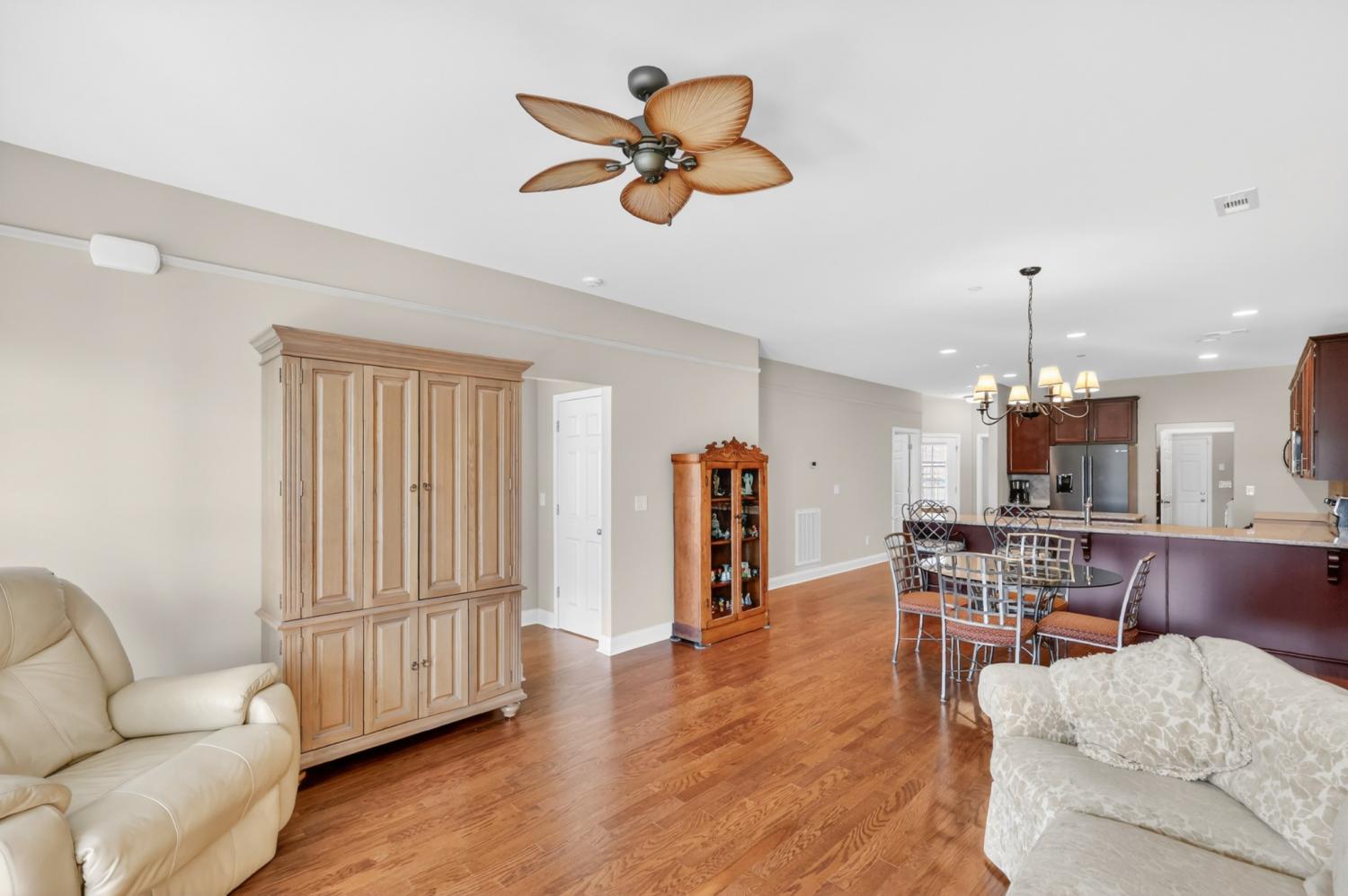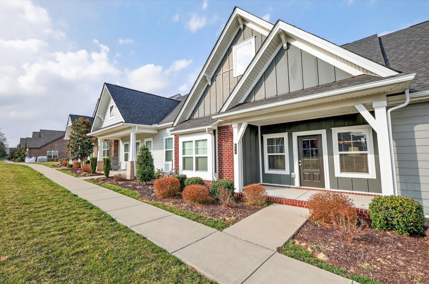 An exceptional opportunity for relaxed ONE-STORY living in the sought-after 55+ Cottages of Nolen Mill in Williamson County. The open Ashleigh floorplan offers effortless, single-step entry from the attached two-car garage (with attic storage above). Neutral paint colors enhance a thoughtfully curated interior featuring granite countertops, stainless steel appliances—including a Bosch refrigerator—and a spacious pantry. The kitchen is accented by warm, natural wood cabinetry with pull-out shelving, while rich oak hardwood floors add timeless character throughout the main living areas. The primary suite is designed for comfort and ease, featuring a custom step-in tile shower and dual vanities. Outdoor living is equally inviting with a private, gated courtyard ideal for quiet relaxation, complemented by a wide covered front porch overlooking manicured green space and gently rolling hills. Residents enjoy a beautifully walkable community with paved trails, a dog park, and convenient proximity to the Williamson County Recreation Center and Nolensville Farmers market—offering a lifestyle defined by comfort and convenience.