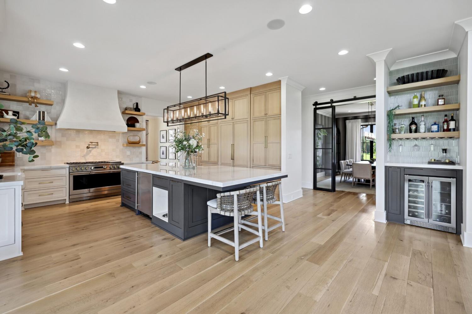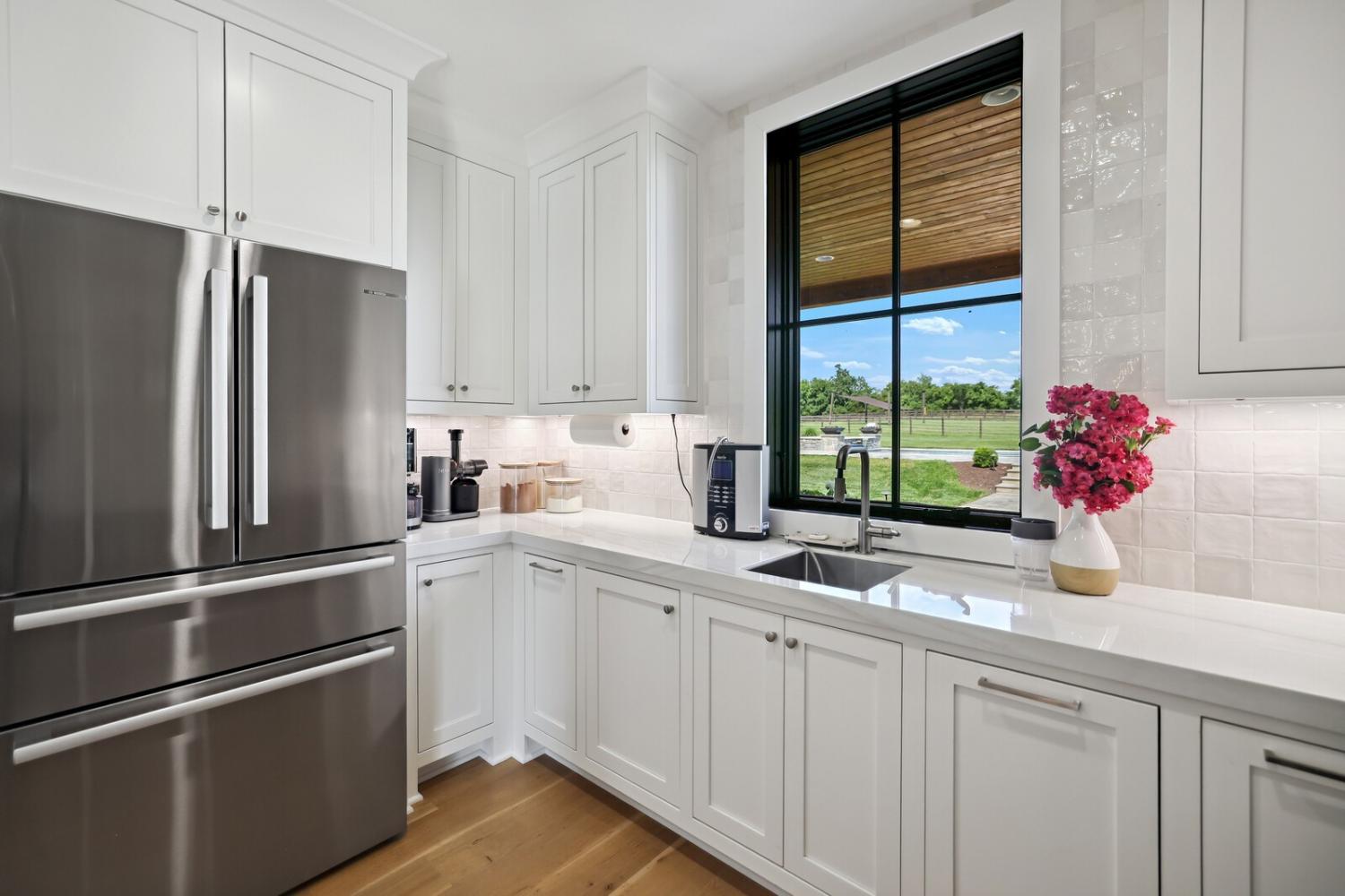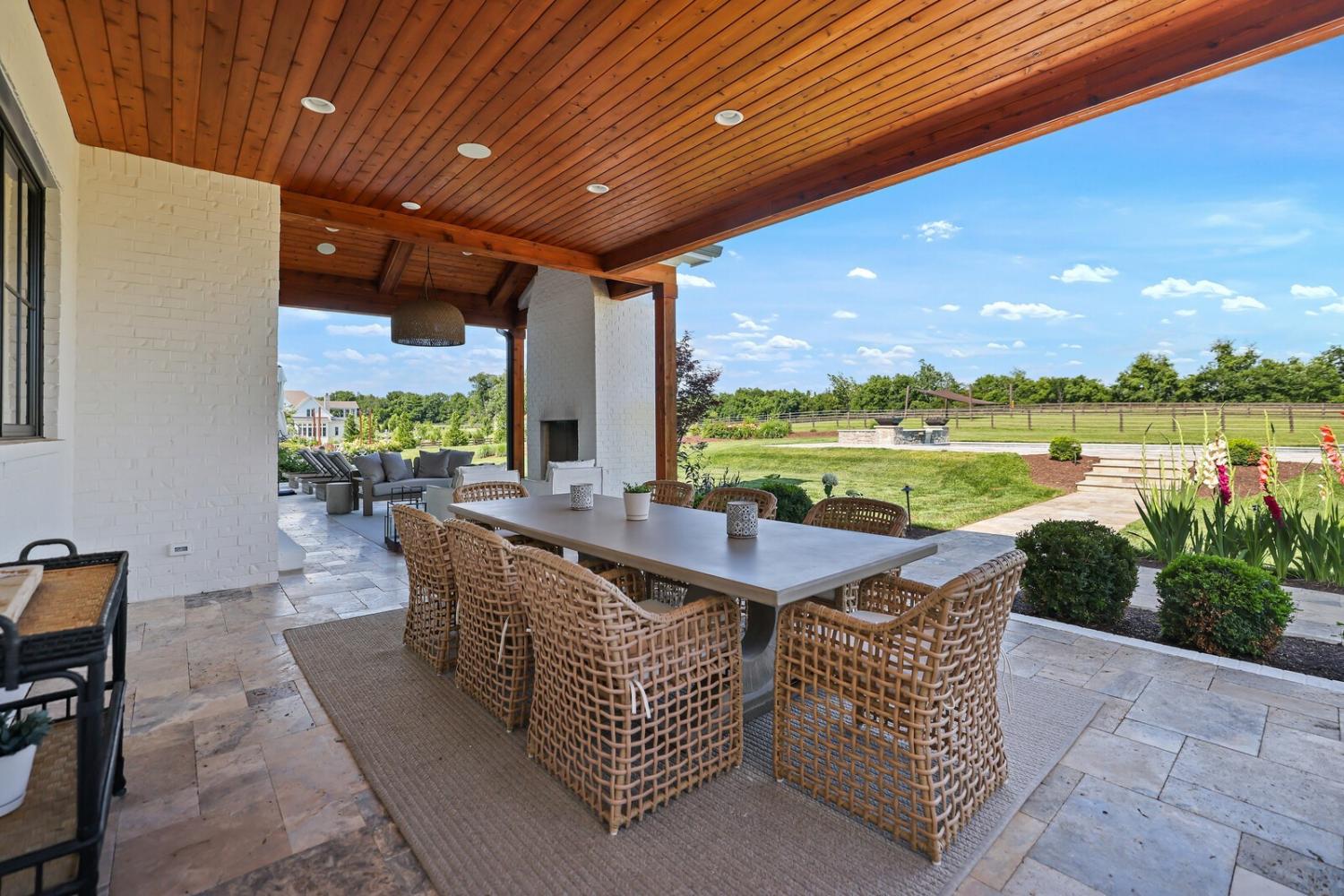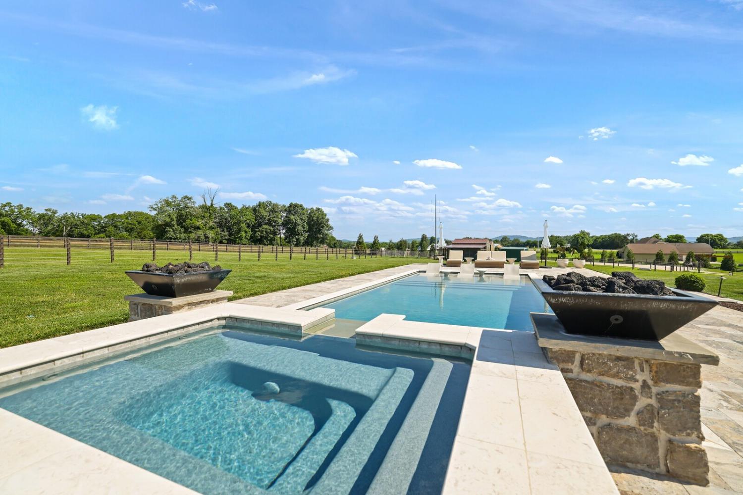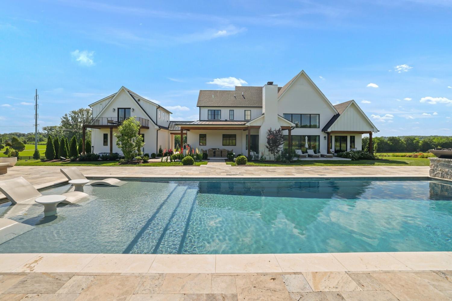 Welcome to one of Franklin’s most extraordinary estates, placed on nearly 8 acres in an exclusive community w/ no HOA. This remarkable property offers refined design & serenity, less than 10 min. from Historic Franklin.This electronically gated, 5 bed/5.5 bath home includes an attached guest suite w/ full kitchen, laundry & private balcony. The main home is a showcase of craftsmanship: hand-milled natural oak floors, solid wood doors & trim, locally sourced custom cabinetry, and Marvin windows & doors. The open living space has soaring ceilings, a gas-log fireplace & a wall of windows.The chef’s kitchen offers a massive sapienstone island, two sinks, built-in dog feeding station, Monogram appliances & double ovens. A separate bar area includes a wine fridge, while the spacious butler’s pantry is fully equipped.The formal dining room has glass walls & handmade iron doors. The primary suite is a retreat, complete w/ wood-beamed ceilings, gas-log fireplace, & a full wall of windows that open to garden views.The en-suite features a walk-through California closet, split vanities, & luxury finishes. Additional interior highlights include a custom home office w/ built-ins, a large bonus room w/ balcony & built-in coffee bar.The basement level has a speakeasy-inspired design & includes a home gym,theater room,sauna & marble topped bar.There's also a wine room, full bath & temp controlled storage. Step outside to enjoy resort style amenities, including a saltwater pool w/ tanning ledge, waterfall, spa & 2 dramatic fire bowls. The outdoor kitchen features a wood burning fireplace & grill.The surrounding travertine patio is bordered by over $200k in professional landscaping.The home offers 6 raised garden beds, fruit trees & bushes, large chicken coup, 2.5 acre fenced pasture & a riding arena. From it's refined finishes to resort-caliber amenities, this one-of-a-kind estate offers a rare lifestyle.Up to 1% lender credit on loan amount when buyer uses Seller's Preferred Lender.