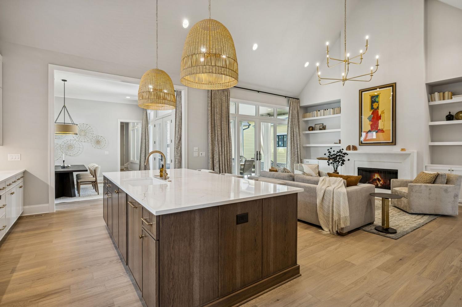 Designed for modern living and effortless entertaining, this lightly lived-in Stephens Valley residence offers the look and feel of new construction—paired with the advantage of completed, high-end upgrades. Spanning over 4,700 square feet, the home blends clean architectural lines with warm, timeless finishes throughout. The main-level primary suite is a true retreat, featuring a spa-inspired bath designed for comfort and privacy. The kitchen is both functional and elevated, showcasing Silestone countertops, custom hickory cabinetry, premium Thermador appliances, and a generous butler’s pantry with a built-in Avallon beverage center. Vaulted ceilings and abundant natural light create an open, airy flow across the main living spaces. A beautifully appointed office provides an ideal work-from-home setup, while a huge flex space above the three-car garage offers endless possibilities—perfect for a private gym, golf simulator, media room, or additional lounge space. The covered back porch serves as the home’s signature outdoor entertaining area, complete with a fireplace and a private setting ideal for hosting or unwinding year-round. Over $100,000 in custom motorized blinds and drapery have been added throughout, delivering effortless light control, privacy, and a fully finished, move-in-ready experience. A large driveway and three-car garage provide exceptional parking and storage. Offered below current new-construction pricing, this meticulously maintained, barely lived-in home presents a rare opportunity to own a like-new luxury residence in one of Nashville’s most sought-after communities—without the wait, uncertainty, or added cost of building.