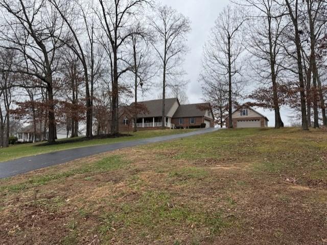 Spacious Brick Home located between Paris and Beautiful Kentucky Lake near shopping, church and schools. Main level features three bedrooms with the master bedroom having access to a nice enclosed heated and cooled sunroom, large master bath with jet tub, shower, double vanity and walk-in closets. Bedrooms 2 and 3 have easy access to a full bath and attic pull down stairway with great floored storage area. Enjoy your open Family room with vaulted ceilings, gas log fireplace and access to sunroom. Large kitchen area with stainless steel appliances, ample cabinets with glass front display doors and pantry area. Large utility room with 3rd full bath. Utility area just off the double enclosed garage with insulated roll-up door and safe room area. Upper level has large bonus room with new HVAC in 2024, attic access and could be a 4th bedroom. Covered front porch and rear sunroom has awesome views, for you to enjoy your morning coffee and watch all different types of wildlife. Detached 30x30 garage/workshop with roll-up door, passage door, access to attic storage and a hookup to natural gas. Concrete walkways to blacktop driveway, wood deck, sunroom, outbuilding and covered front porch. Roof replaced in 2022. Nice lot with several mature shade trees and open areas. You need to make your appointment today to see this quality brick home approximately one hour from Jackson and Clarksville, Tennessee and two hours from Nashville and Memphis. Immediate occupancy is available!!! You don't want to miss this opportunity!!