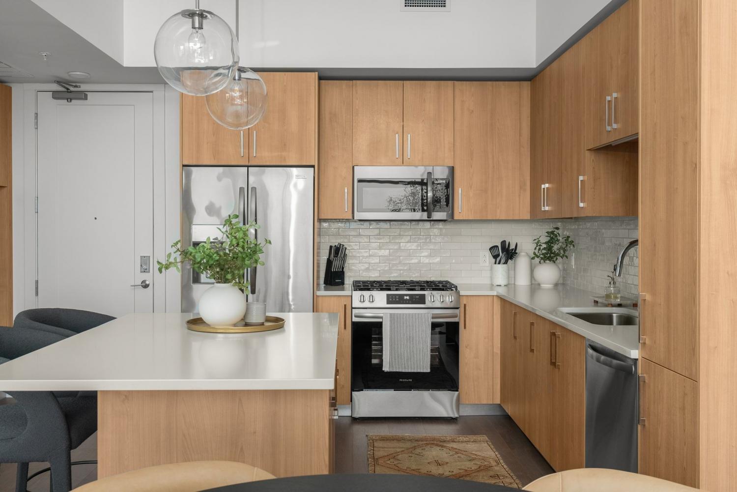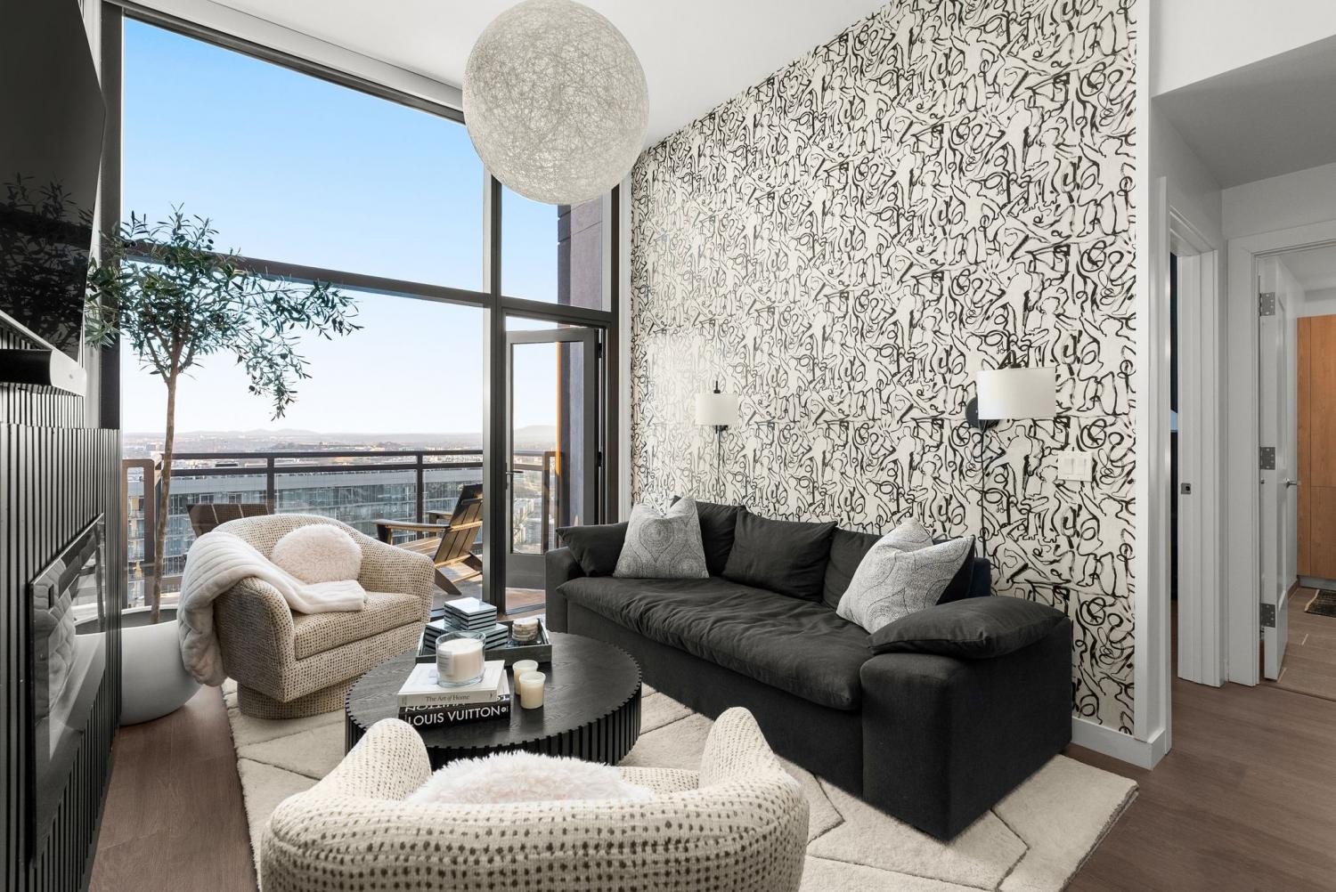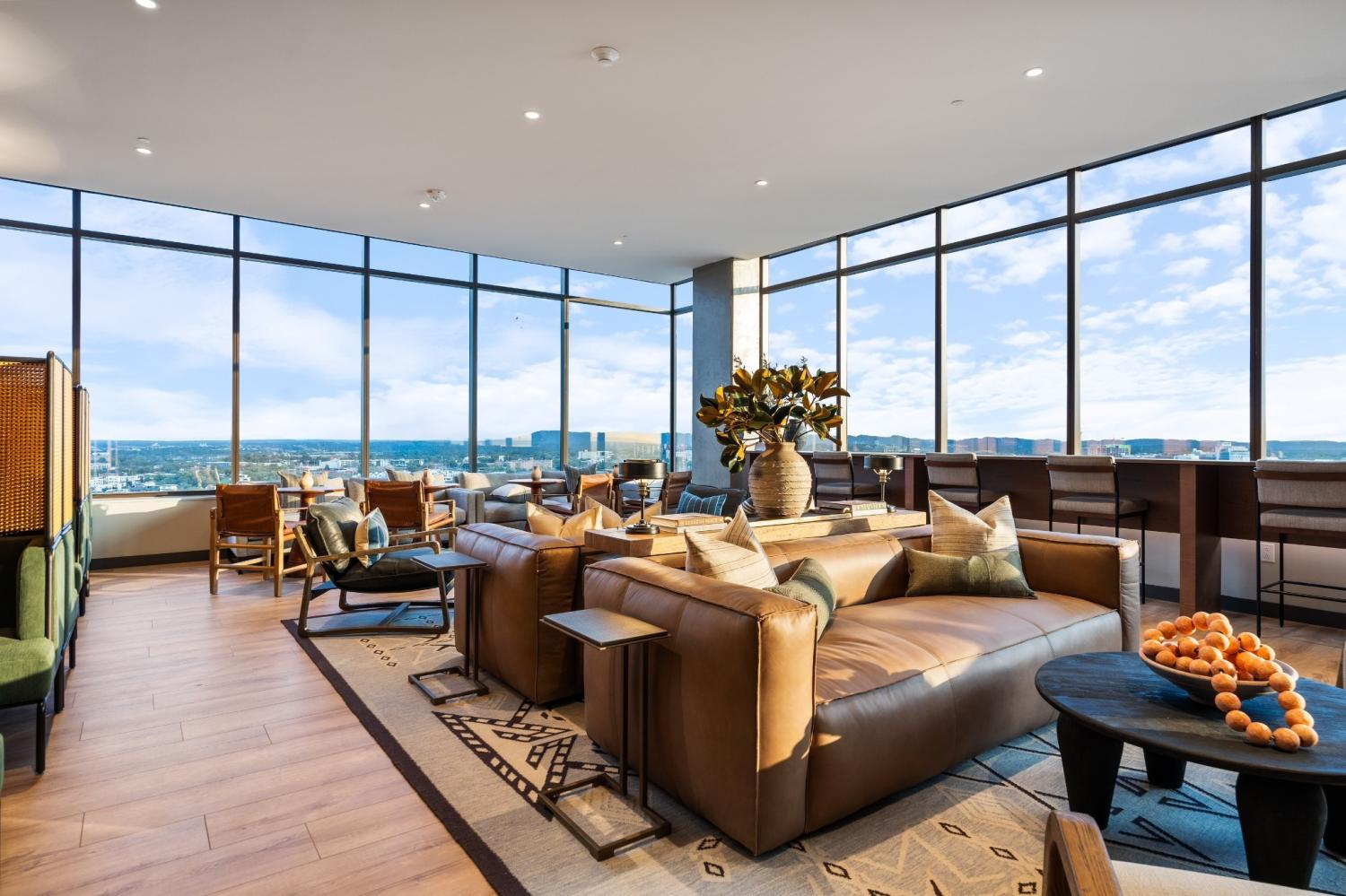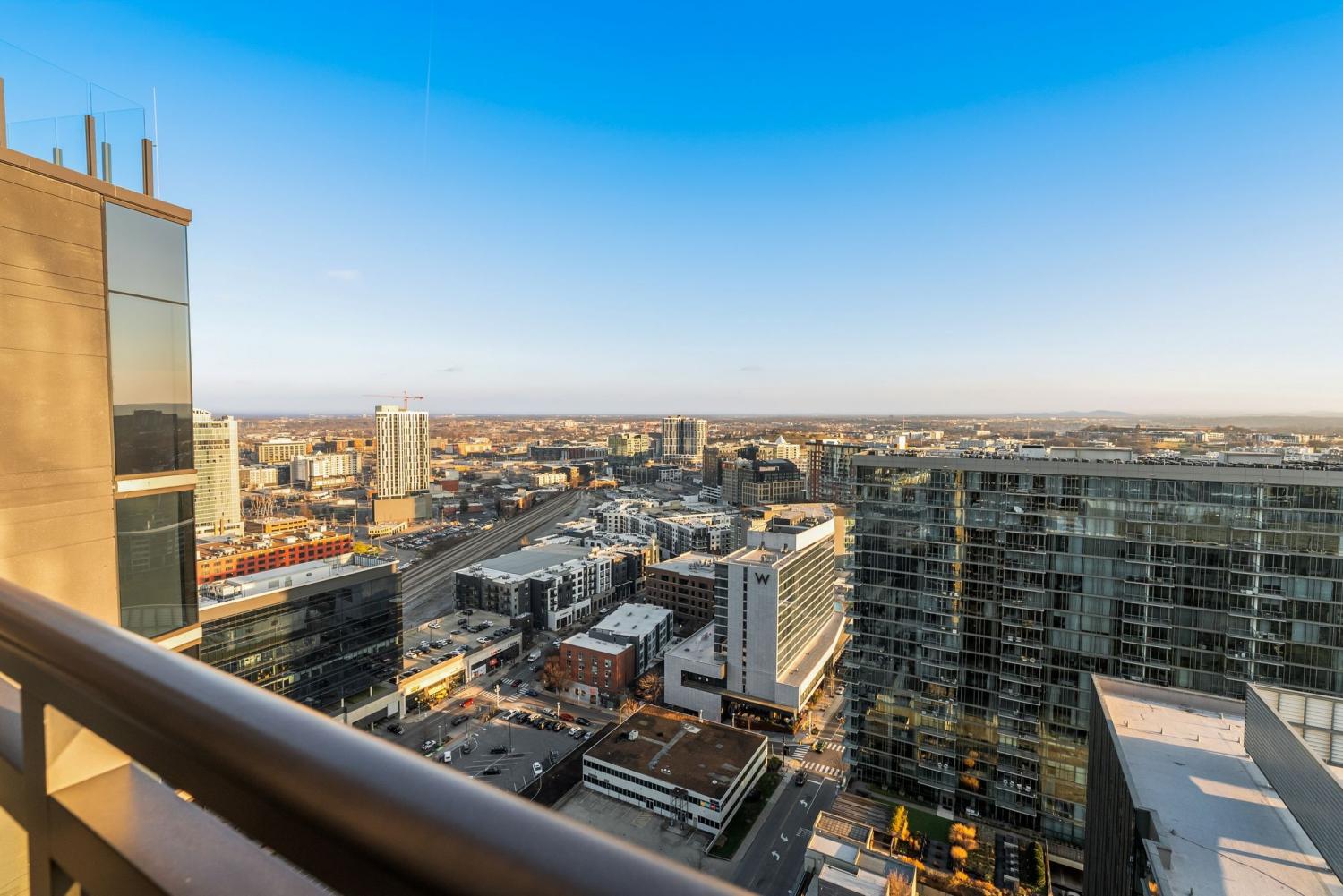 Fully furnished condo at The Pullman with a private balcony and panoramic city views. The unit features custom finishes, floor-to-ceiling windows, and an open layout with in-unit laundry that makes it move-in ready. Parking spot included. Building amenities include a rooftop pool, fitness center, co-working spaces, outdoor lounges with fire pits, café, and 24/7 concierge. Prime Gulch location puts you steps from Nashville's best dining, bars, and entertainment. 6 month lease term.