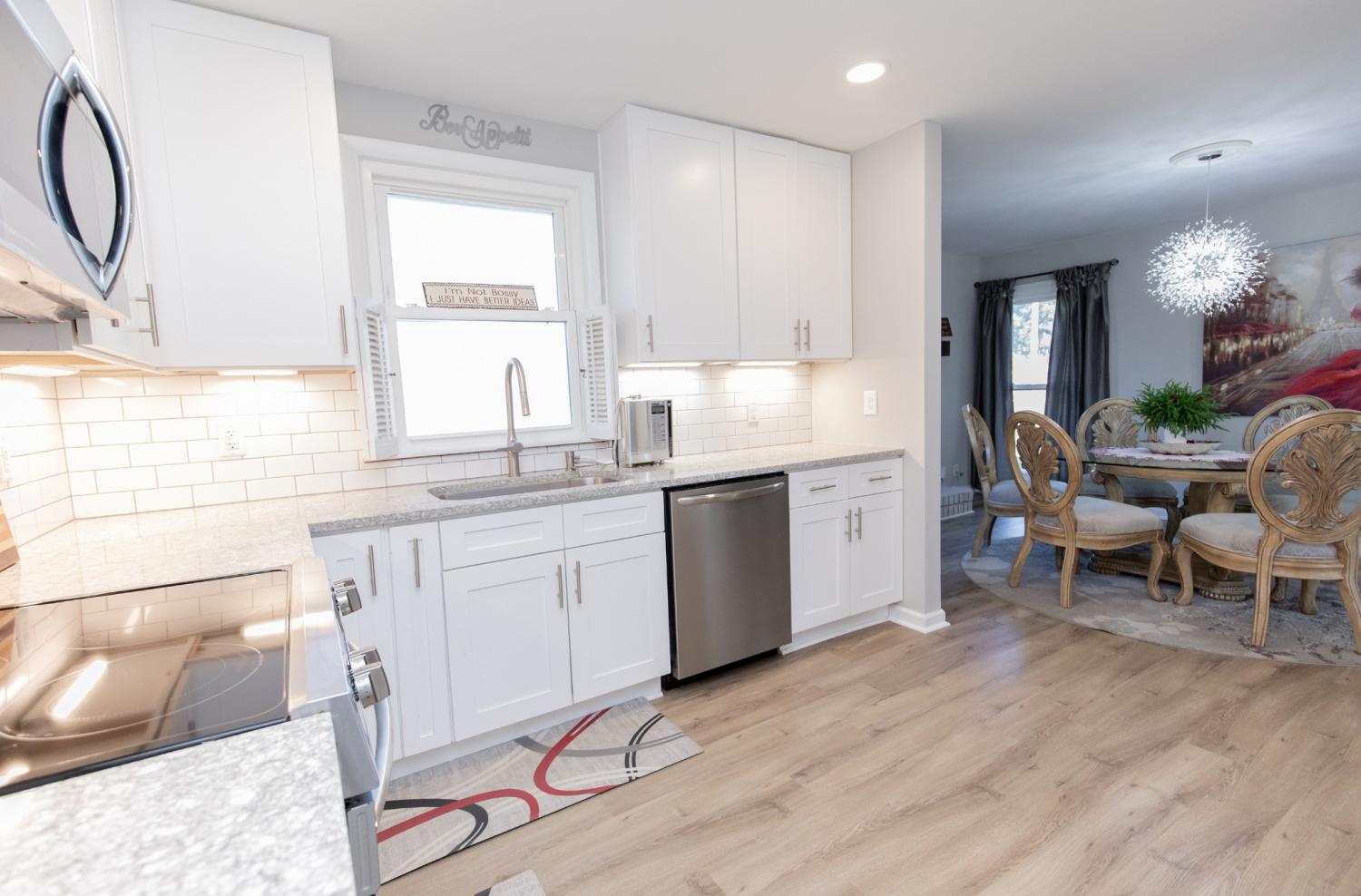 This renovated one level brick ranch is ready for its new owner. The home offers 4 bedrooms, 2-1/2 baths on a large corner lot. New everything; flooring, paint, trim, doors, lighting, plumbing fixtures, kitchen, baths, water heater. Roof & HVAC approx 8 years old. Stainless appliances. Kangen water machine to remain. Washer/dryer remains. Crawl space is encapsulated and has a French drain system work done by Frontier Foundation and is under warranty. All appliances are included "as is".
