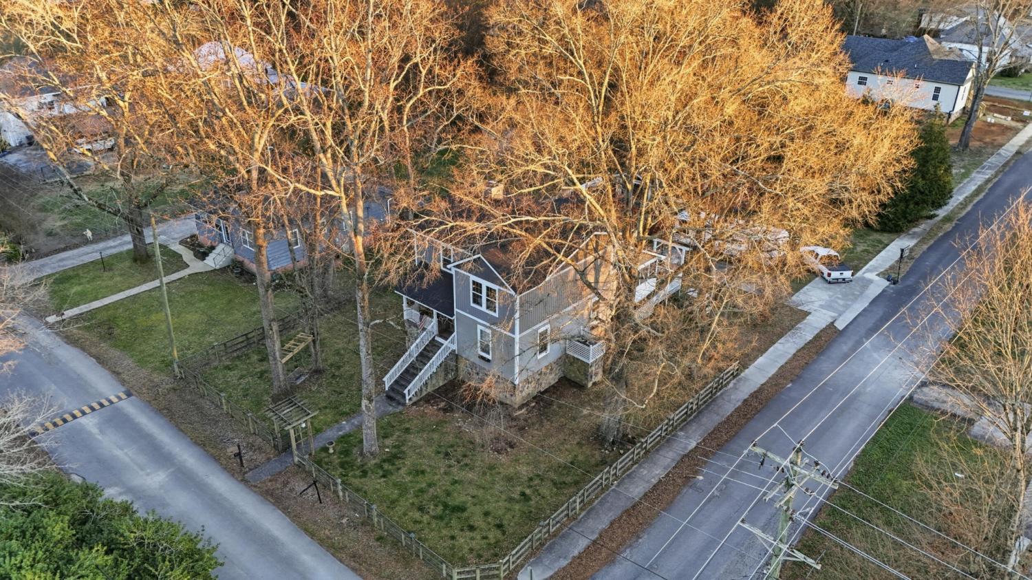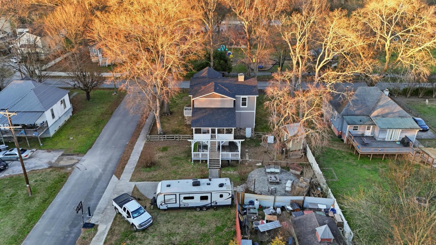 Tucked along one of Chickamauga's most picturesque, tree-lined streets, this beautifully remodeled home offers the perfect blend of charm, space, and everyday convenience. The drive up alone sets the tone — a peaceful, welcoming road that instantly feels like home. Out front, a large fenced yard with an attractive gated entrance provides privacy, curb appeal, and plenty of room to enjoy the outdoors. From the porches, you can even enjoy views of local festival fireworks, adding a special touch to evenings spent at home. Out back, you'll find ample parking with room to expand, making it ideal for gatherings, extra vehicles, or future plans. A shop space adds flexibility for hobbies, projects, or additional storage, while the unfinished walk-out basement offers generous room for storage and future potential. The outdoor living area is built for entertaining, featuring a fire pit with a pizza oven — perfect for hosting friends or enjoying relaxed nights at home — along with a screened-in porch designed for unwinding year-round. Inside, the home has been fully remodeled from top to bottom, including a fresh, modern kitchen and updated bathrooms that balance style and function. The spacious upstairs serves as a true hangout zone with a seating area and a bonus room that could easily function as a fourth bedroom, home office, or playroom. The location truly sets this property apart. The home is blocks from Chickamauga City School and local city facilities, just one block from a brand-new dog park, and directly across the street from a park that hosts live music and community events. Downtown Chickamauga is within walking distance, offering easy access to local shops, restaurants, festivals, and small-town charm. This is a home that feels warm, inviting, and move-in ready — perfectly positioned for an active, community-focused lifestyle while still offering space, privacy, and room to grow.