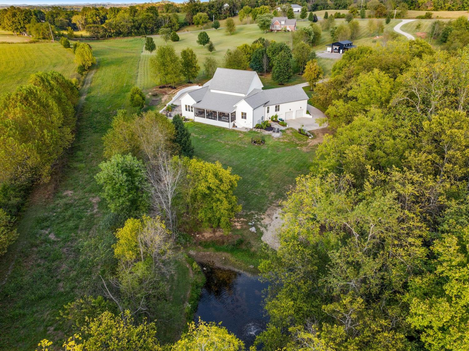 This stunning custom estate is situated on over 6 acres and features a tranquil pond, a long private concrete driveway, and a brand-new oversized shop. The home boasts spacious, oversized bedrooms, custom cabinets, and a hidden pantry. Enjoy the screened porch, walk-in closets, and his-and-her garages with epoxy floors. The property features stone pavers, raised garden beds, a hot tub, motorized shades, and many other impressive details. It's just a quick five-minute drive to Coles Ferry boat ramp on Old Hickory Lake and Friendship Christian School. Be sure to check out the video of this fabulous property.