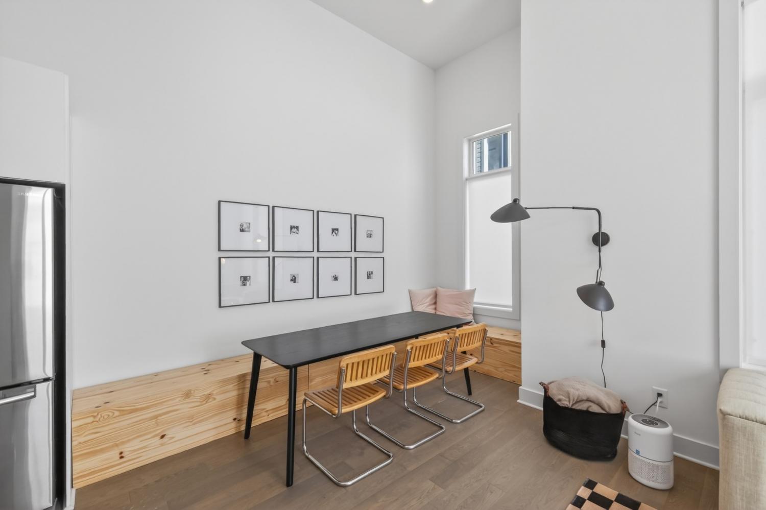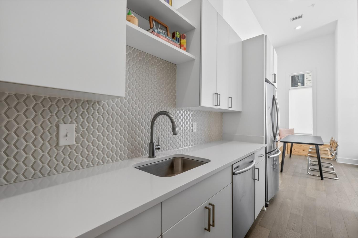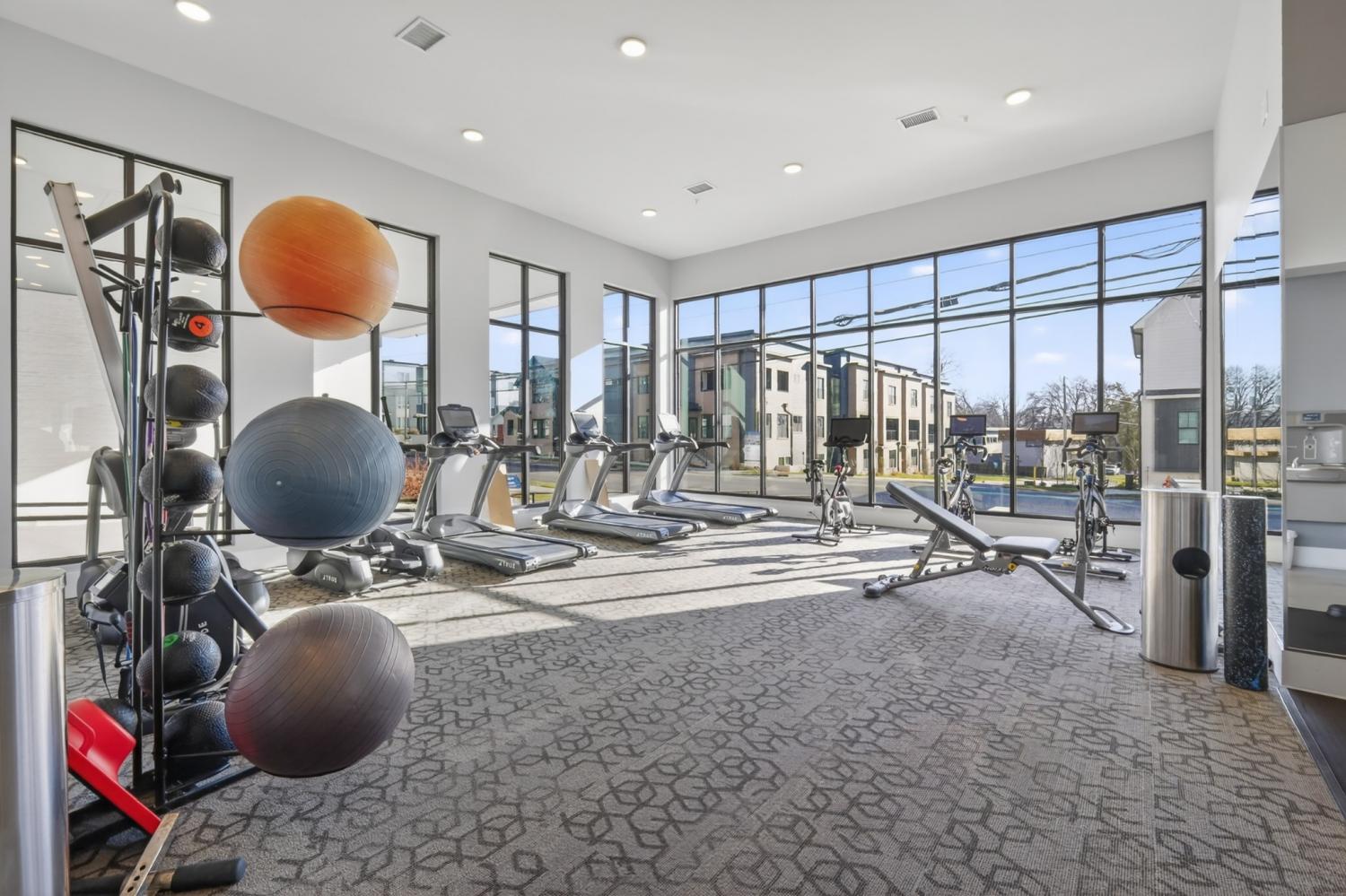 Move-in ready ground-level corner unit with extra-tall ceilings, oversized windows, and one of the best layouts in the building—filled with natural light and offering great views throughout. Located in the heart of highly sought-after East Nashville, this home stands out for its thoughtful design and bright, open feel. The spacious bedroom features double closets and connects to a large bathroom with tiled floors and shower, generous vanity space, and ample storage. The kitchen offers stainless steel appliances, excellent cabinet space, a tiled backsplash, and built-in dining seating that maximizes functionality without sacrificing style. The open living area provides plenty of room to entertain or unwind while enjoying the corner exposure and abundant natural light. 1041 Flats is conveniently located on E Trinity Lane just off Ellington Parkway—just minutes from downtown and within walking distance to Grimey’s, coffee shops, breweries, bars, restaurants, and more. Building amenities include a fully equipped gym with free weights, Peloton bike, cardio equipment, and rower; a dog park; meeting rooms; resident lounges; a rooftop patio; and a well-lit parking lot with assigned parking. The parking lot is just steps from the unit, mailboxes, and gym, adding everyday convenience to this exceptional home in one of East Nashville’s most walkable and well-connected locations.