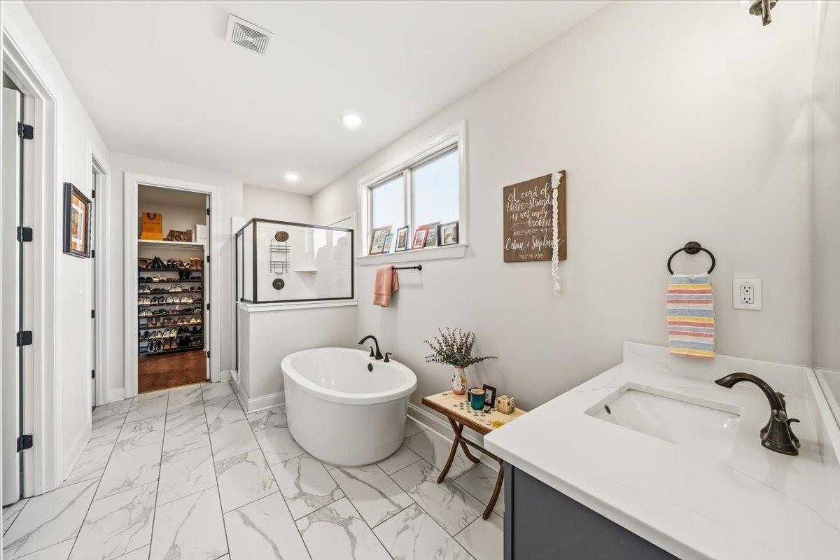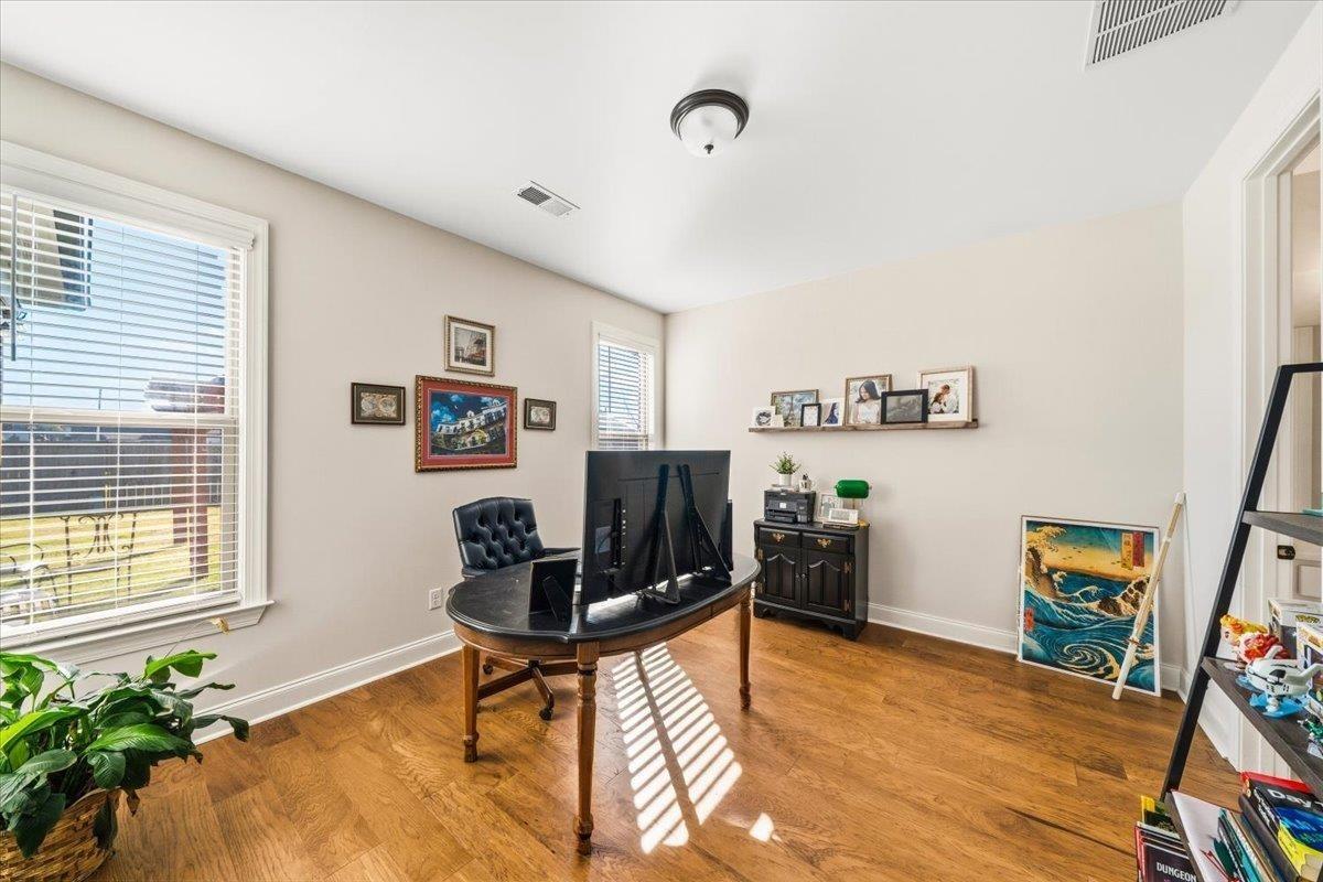 Better than new and move-in ready! This beautifully maintained home sits in the highly sought-after Belmont neighborhood of Arlington, known for its peaceful walking trails, scenic pond, and welcoming community feel. Built just a few years ago, this home offers a spacious open-concept floor plan with a desirable split-bedroom design, perfect for both families and entertaining. Features include hardwood floors on the main level, designer colors and finishes throughout, and a bright kitchen with a large island and modern touches. The inviting great room is open and filled with natural light! The primary suite offers a relaxing retreat with a soaking tub, separate shower, double vanities, and walk-in closet. Step outside to enjoy the covered patio, extended pergola, and fenced backyard—a perfect setup for outdoor dining, play, and summer evenings. Belmont residents love the private neighborhood lakes, walking trails, and community feel, plus convenience!