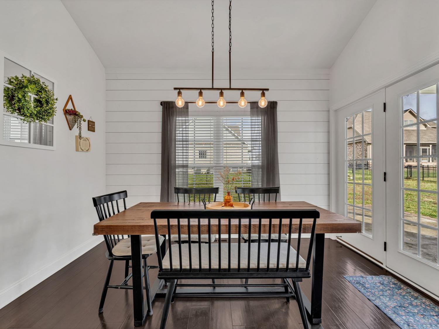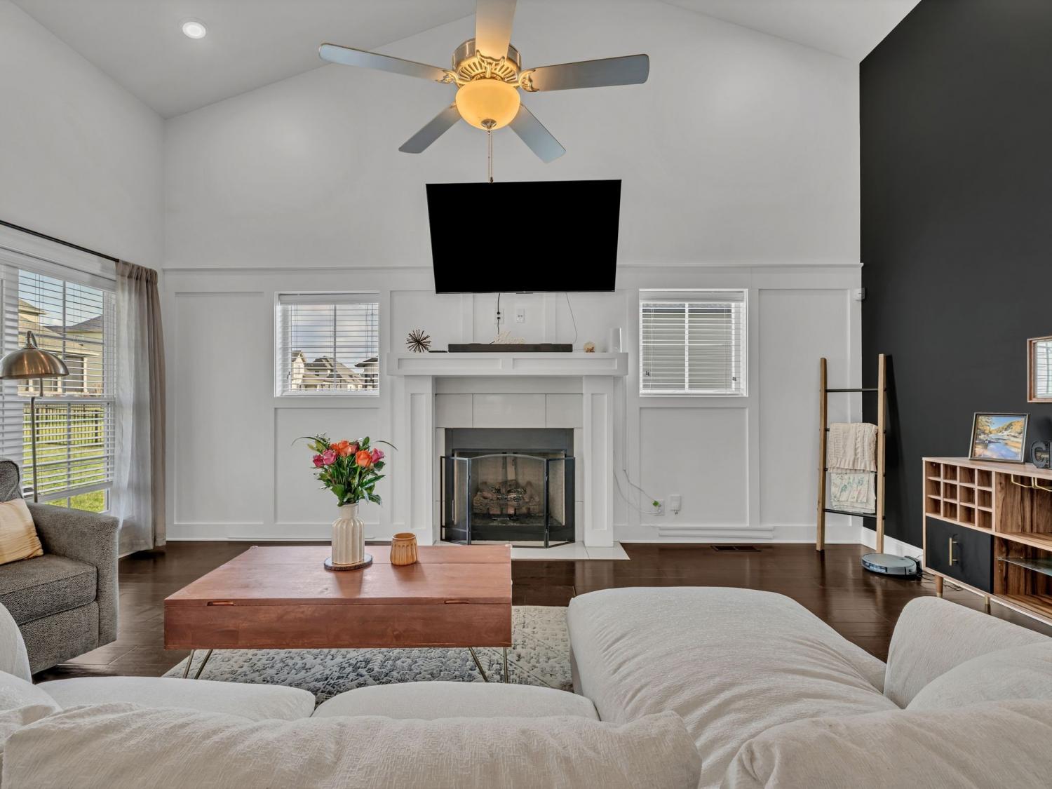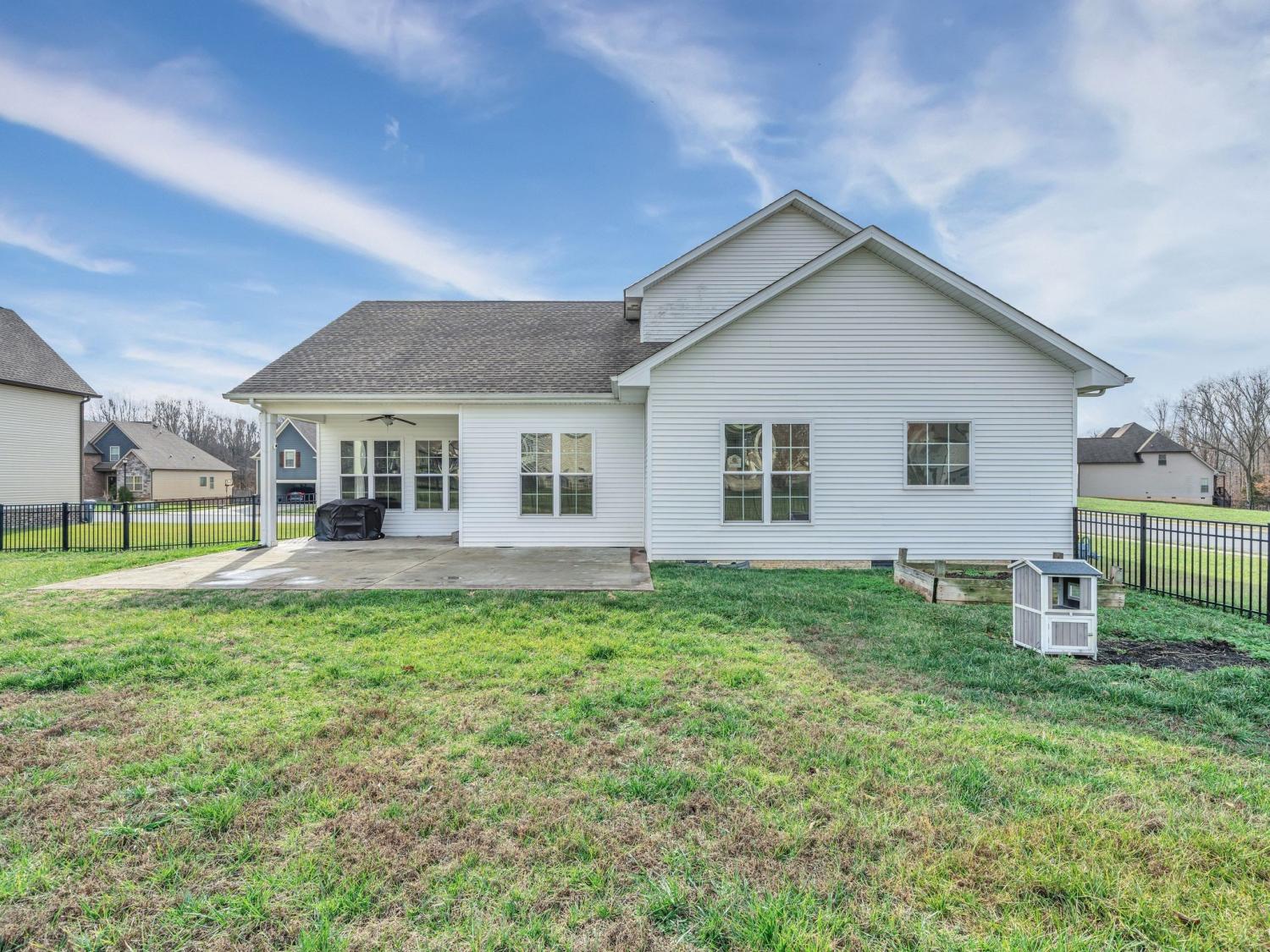 This stunning modern home welcomes you with a charming rocking chair front porch and an open, light-filled interior. Soaring ceilings, beautiful flooring, custom trim work, shiplap accents, and an abundance of windows create a warm yet stylish atmosphere. The white kitchen features stainless steel appliances, a farmhouse sink, pantry, and generous island with extra seating—perfect for everyday living and entertaining. Open-concept living areas center around a cozy fireplace. The spacious main-level primary suite offers high ceilings, a walk-in closet with built-in shelving, and a spa-like bath with double sinks, a separate shower, and a soaking tub. Upstairs, you’ll find spacious secondary bedrooms and a large bonus room ideal for a media room, playroom, gaming room.or teen hangout. Step outside to enjoy a fenced, level yard with both patio and covered patio spaces—perfect for relaxing or entertaining. Crawlspace is encapsulated. Conveniently located near shopping, dining, parks, and I-24 access, with excellent neighborhood amenities to enjoy. 1% lender credit with use of preferred lender.