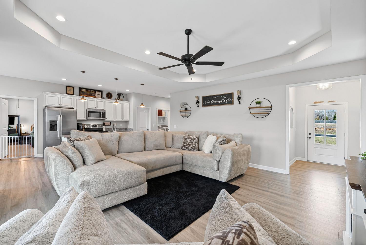 This beautiful home offers 4 bedrooms and 2 full bathrooms with stylish finishes throughout. The kitchen features stainless steel appliances, granite countertops, an eat-in area, and additional countertop seating—perfect for entertaining. Enjoy a covered front and back porch, a spacious walk-in closet in the primary bedroom, and tile flooring in both bathrooms. The fenced-in backyard adds privacy and functionality. Located in Hopkinsville’s newest neighborhood, this home also offers sidewalks, street lighting, and convenient access to local amenities.
