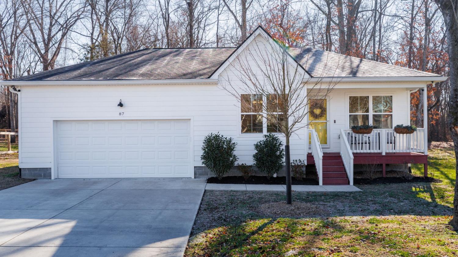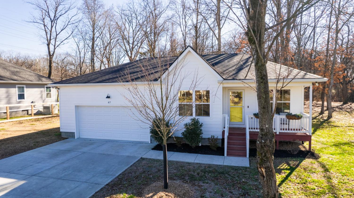 One level living on a private half acre lot with no HOA, built in 2022 with major upgrades already complete. 87 Hickerson St is move in ready with an open layout, two pantries, granite throughout, soft close cabinetry, stainless Whirlpool appliances, under cabinet lighting, and pull out cabinetry. The primary suite features a frameless tiled shower, and the secondary bath offers a full tile surround. Both bathrooms include double vanities. Upgrades include an electric fireplace, whole home air purification system, smart thermostat, and smart entry. Enjoy outdoor living on the 16x20 deck with a privacy wall, along with gutter covers around the entire home for low maintenance peace of mind. French drains around the home provide long term drainage protection. The garage has been upgraded with added lighting, insulation, overhead storage racks, and an insulated garage door. Additional improvements include a storm door, screened back door, crawl space pest protection, transferable termite coverage, and regular HVAC maintenance. Close to Old Hickory conveniences, with peaceful wooded views in the backyard. Ask about the 1% lender credit available through Chris Weber at First Community Mortgage.
