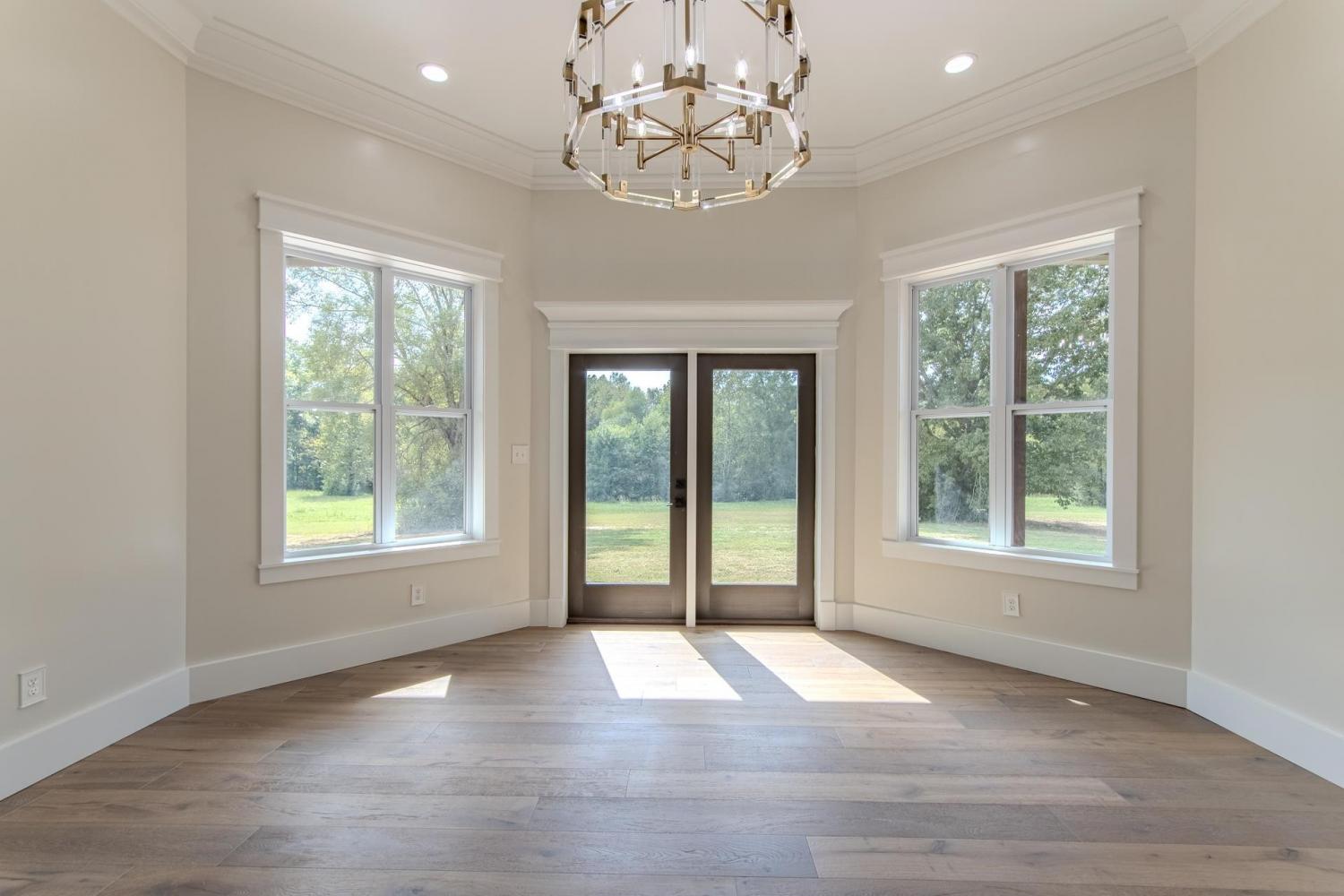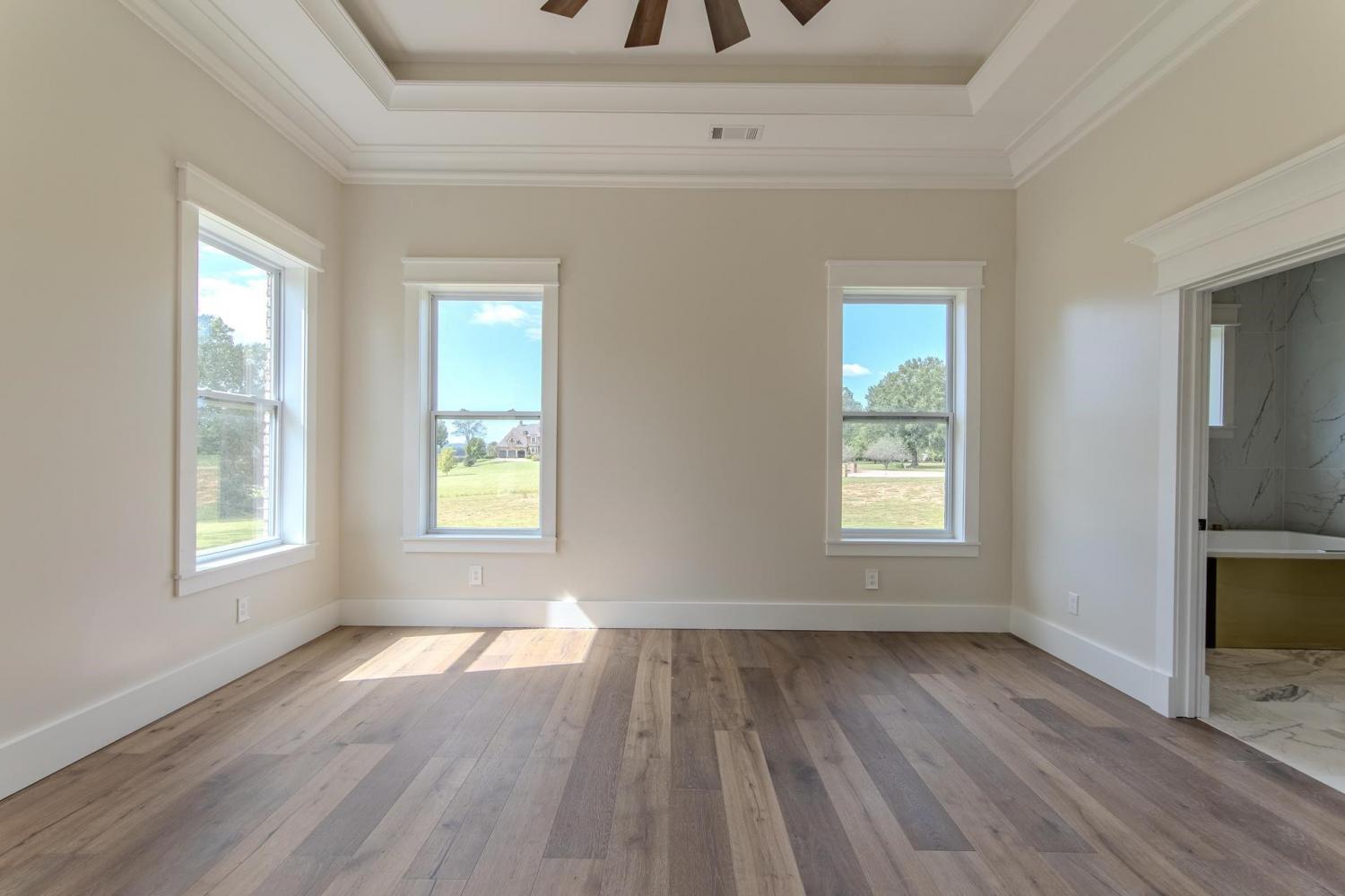This home has the WOW factor! Newly constructed, one-story custom-built home just minutes from the TN River & public boat ramp. Featuring approx. 3,200 sqft, 4 bedrooms each w/private luxury baths, & over 1,400 sqft of garage space for 3 cars. From the moment you step inside you’ll notice the craftsmanship & attention to detail - wide trim moldings, rustic solid oak flooring, brushed brass accents, & designer lighting. The chef’s kitchen offers custom cabinetry, stylish fixtures & abundant storage. The primary suite includes gold vein marble flooring, a huge walk-in shower w/dual heads, wall sprays, rainfall shower, & walk-in closets. Entertaining is effortless w/large covered back patio w/fireplace and dedicated outdoor entertaining area. The front & back yards are fully sodded & beautifully landscaped & accented by exterior lighting. Welcoming circular concrete drive. Situated on 4.2+/- acres w/high-speed internet, city water, natural gas, and more—this home checks all the boxes!
