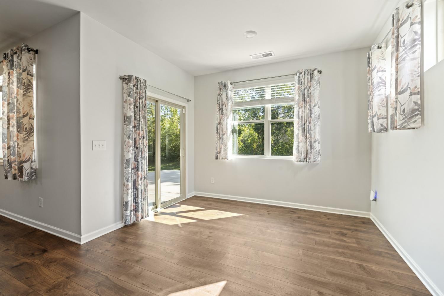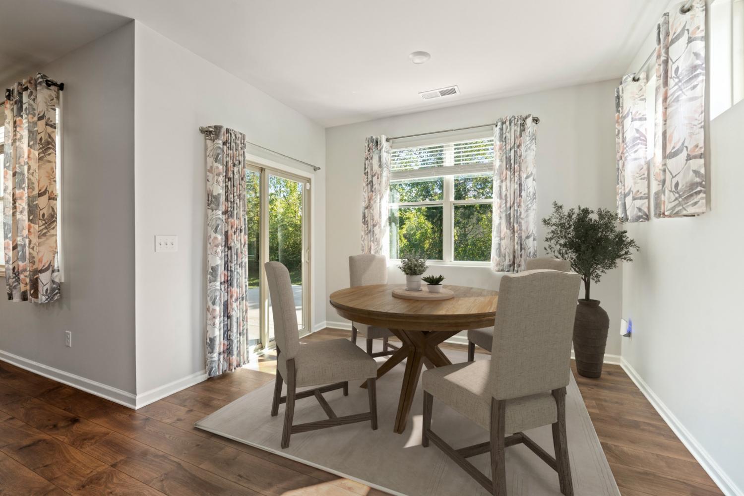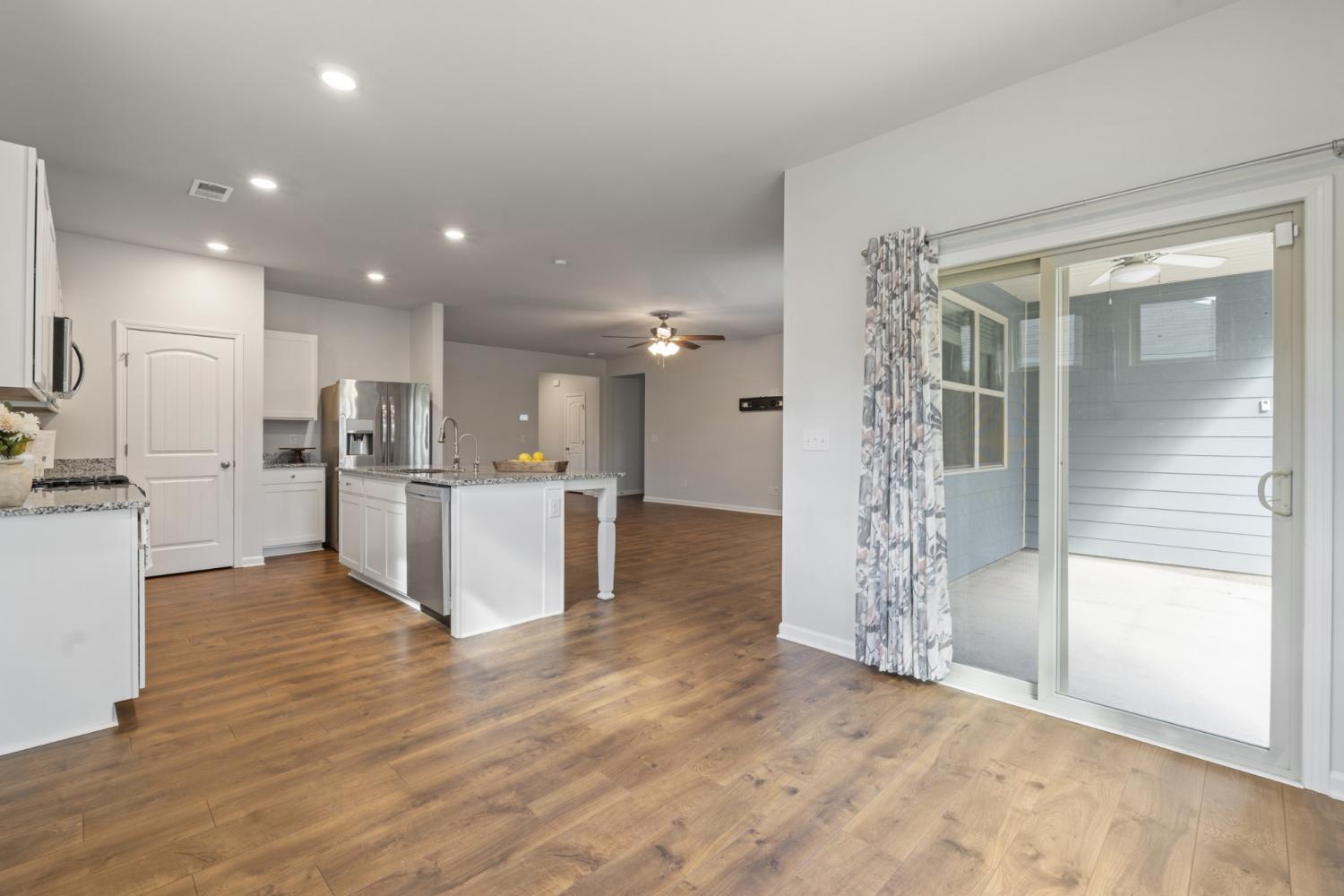 Come see this beautiful, rare opportunity of a single-level home in the Villages of Hunter's Point neighborhood. Nestled against the backdrop of trees, the back yard feels peaceful and private. Freshly painted and move in ready for the next owner. As you walk in through the entry, you enter into an open living room adjacent to the kitchen and dining space. The high ceilings make it feel even more open! With a large kitchen island, it is perfect for cooking and hosting. Walking outside, you are greeted with a newly extended covered patio and the peaceful back yard. The large primary suite has an ensuite bathroom with a walk in shower. Don't miss the two walk in closets! On the opposite side of the house, there are three spacious bedrooms and a bathroom. This home features plenty of storage space between all the closets and the two car garage. The sellers have improved the property by adding a new water softener and extending the back and front patio. They have loved this home and are so sad to leave! This home comes with transferable home warranty coverage until October 2028! The community has a beautiful resort style pool, picnic area, playground, and sidewalks! A short 5 minute drive to Lebanon's adorable downtown square with restaurants and shopping!