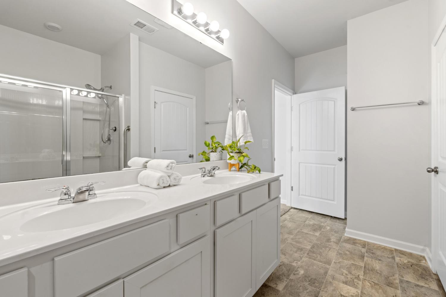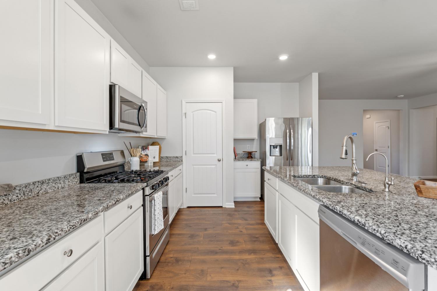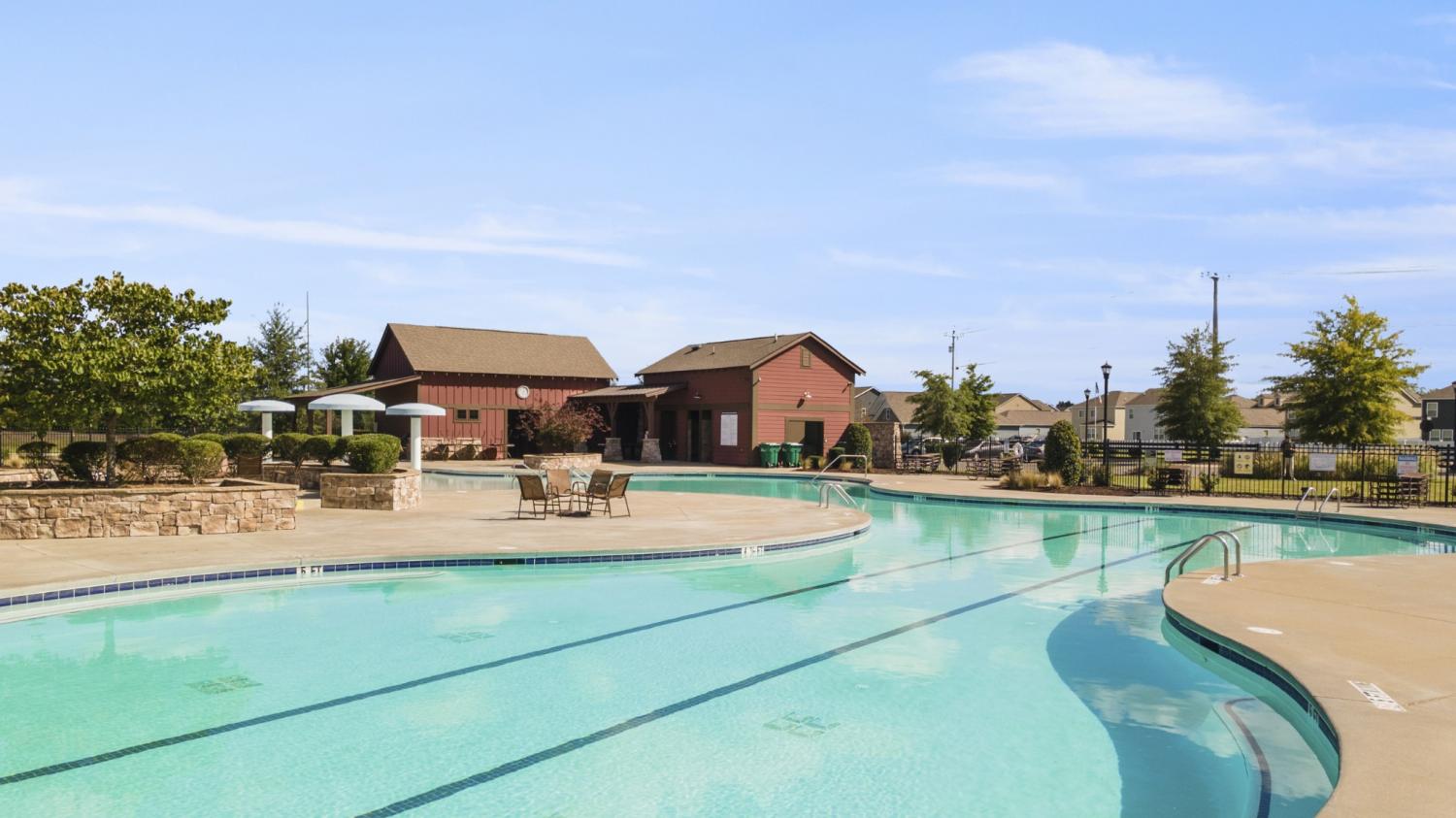 Come see this beautiful, rare opportunity of a single-level home in the Villages of Hunter's Point neighborhood. Nestled against the backdrop of trees, the back yard feels peaceful and private. Freshly painted and move in ready for the next owner. As you walk in through the entry, you enter into an open living room adjacent to the kitchen and dining space. The high ceilings make it feel even more open! With a large kitchen island, it is perfect for cooking and hosting. Walking outside, you are greeted with a newly extended covered patio and the peaceful back yard. The large primary suite has an ensuite bathroom with a walk in shower. Don't miss the two walk in closets! On the opposite side of the house, there are three spacious bedrooms and a bathroom. This home features plenty of storage space between all the closets and the two car garage. The sellers have improved the property by adding a new water softener and extending the back and front patio. They have loved this home and are so sad to leave! This home comes with transferable home warranty coverage until October 2028! The community has a beautiful resort style pool, picnic area, playground, and sidewalks! A short 5 minute drive to Lebanon's adorable downtown square with restaurants and shopping!