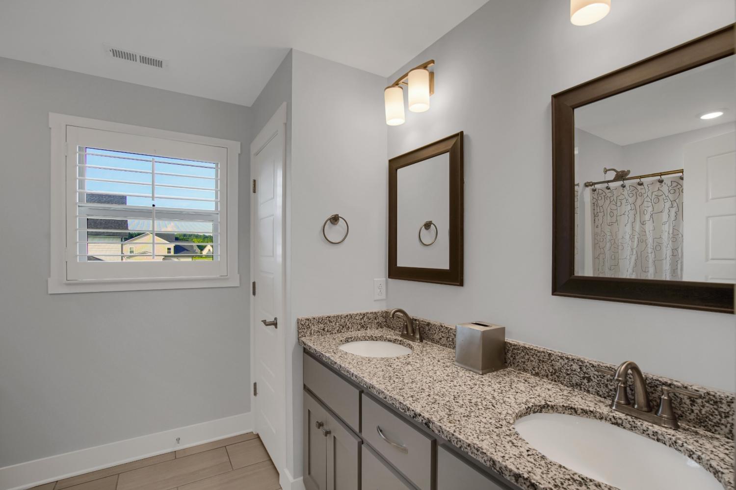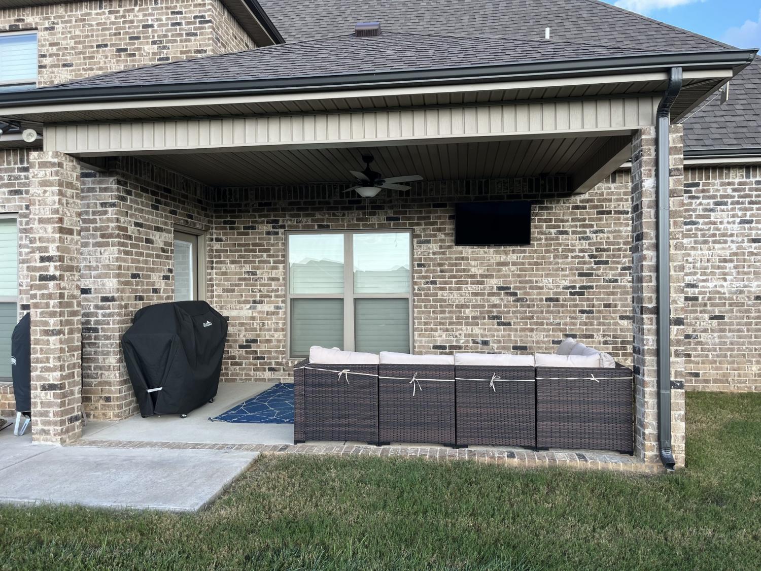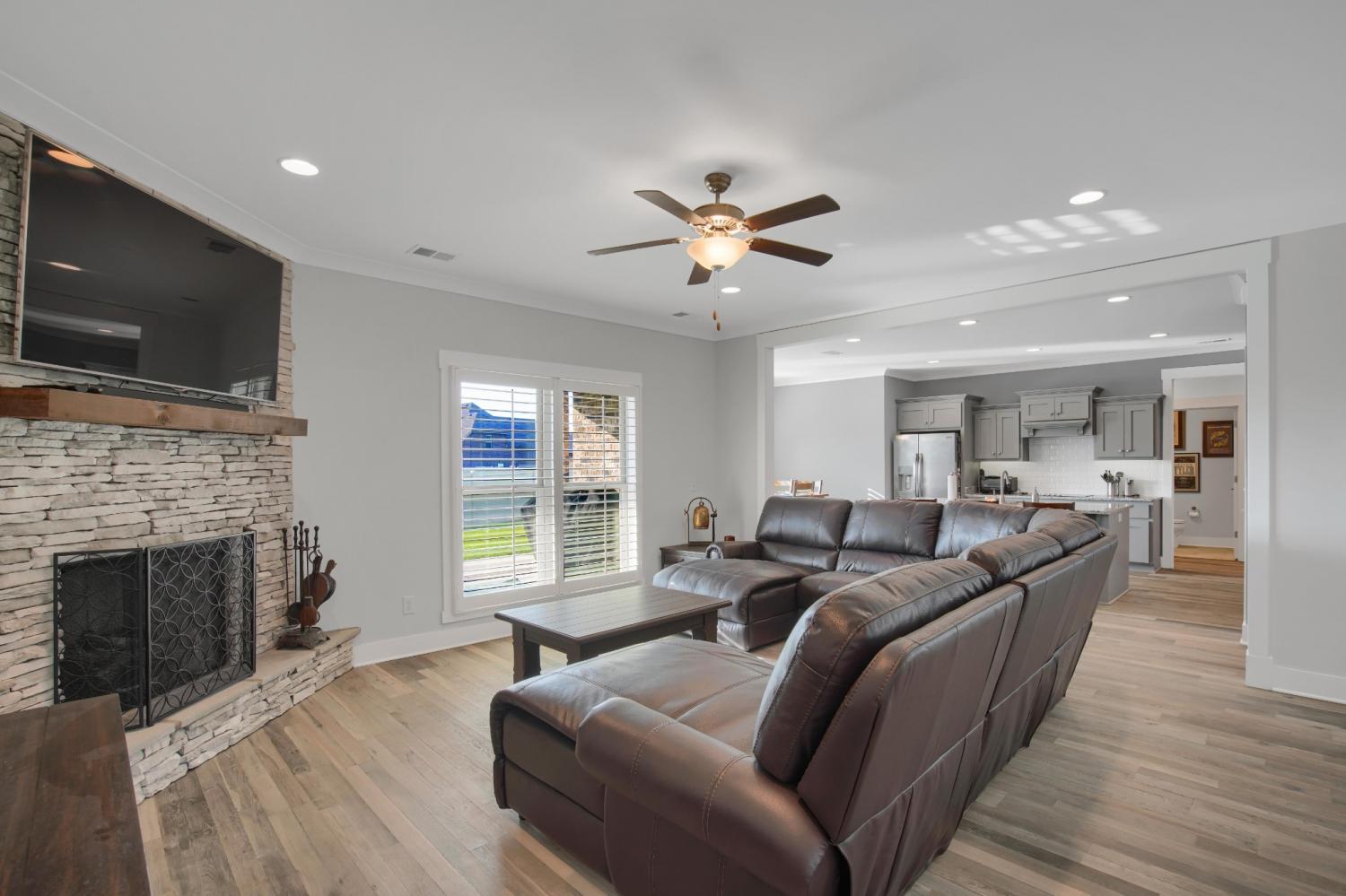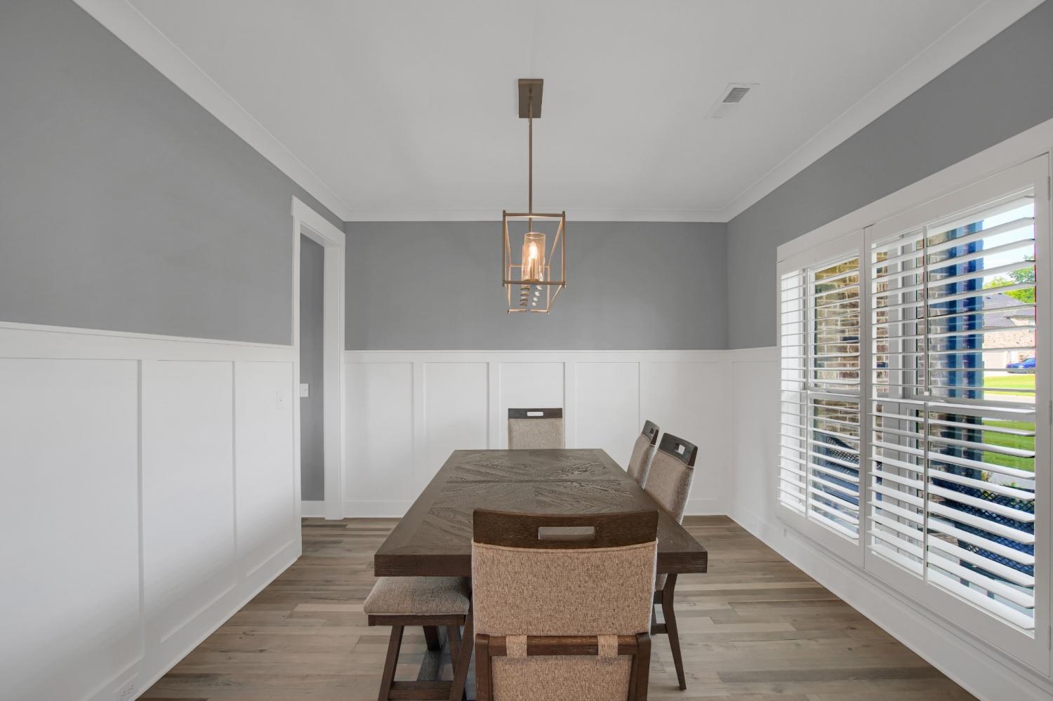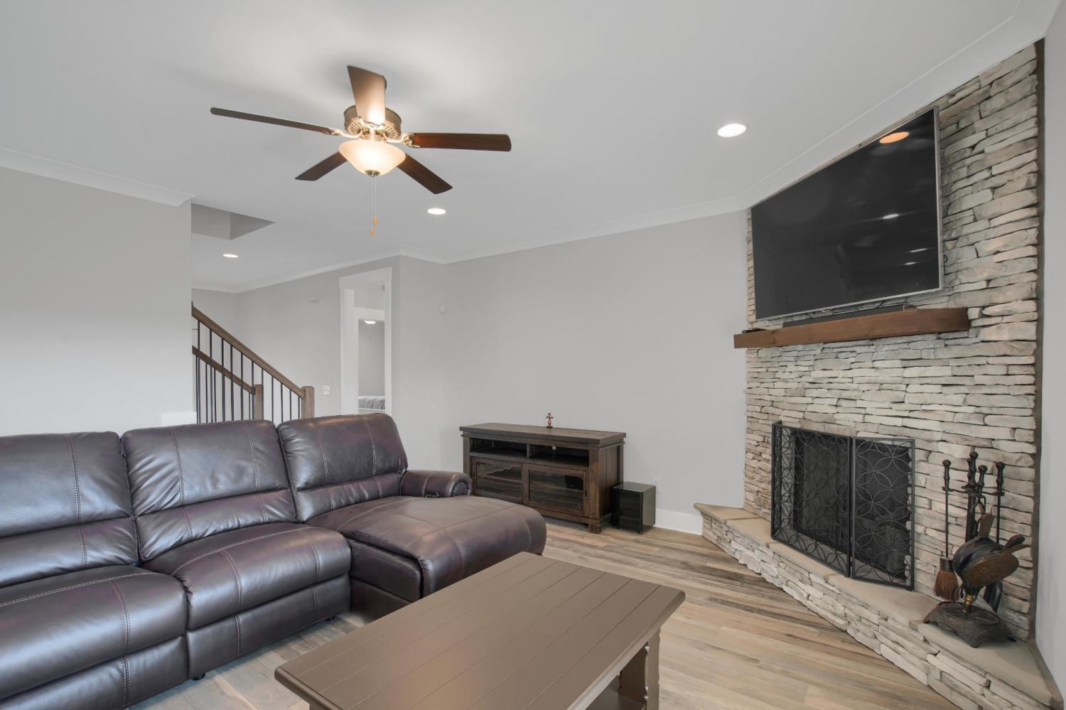 Total Turnkey! This home is available with all furniture for purchase, making it a rare opportunity for first time buyers or anyone looking for a move-in-ready experience. Immaculate and truly better than new, this all-brick home is loaded with upgrades- including plantation shutters, a full vinyl privacy fence and extensive custom shelving. Inside, you'll find a spacious open layout with a welcoming foyer, cozy fireplace, and stunning hardwood floors throughout the main level and stairs. The gourmet kitchen features granite countertops and custom cabinetry, while the formal dining and breakfast rooms offer flexibility for gatherings. The luxurious primary suite include double vanities, a tiled shower and walk-in closet. With 4 bedrooms, 3.5 bathrooms, and a versatile bonus room, this home provides ample living space. Plush carpet in the bedrooms adds comfort, while tile in all wet areas offer durability. The covered patio is perfect for relaxing outdoors. Uniquely situated for maximum privacy in a neighborhood setting- this lot sits between two streets with no immediate rear neighbors in view. Furniture package available for $30,000