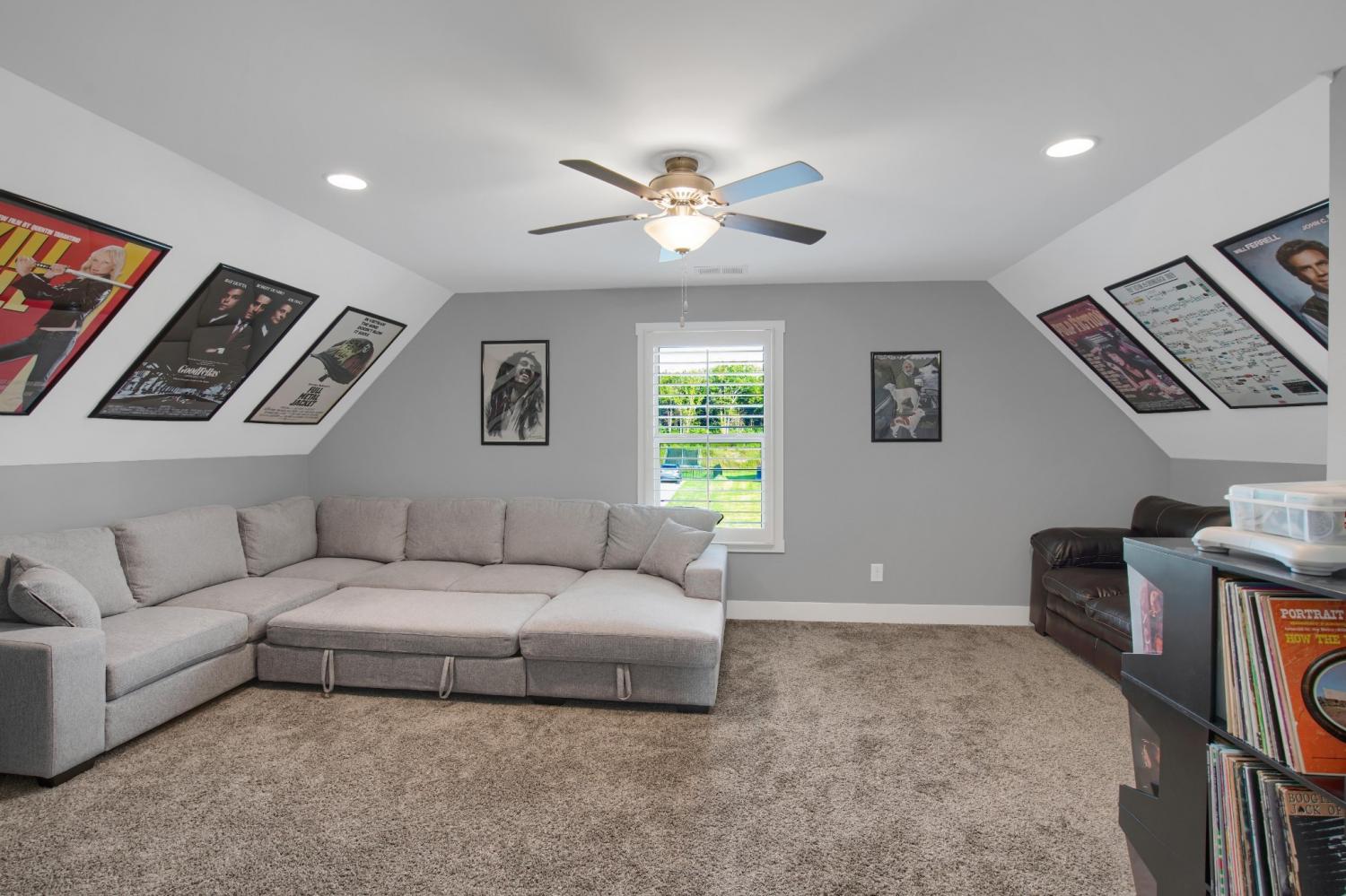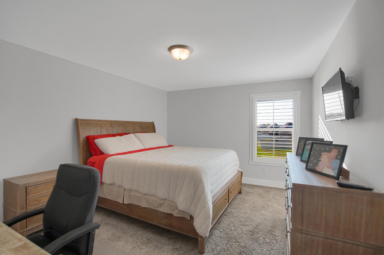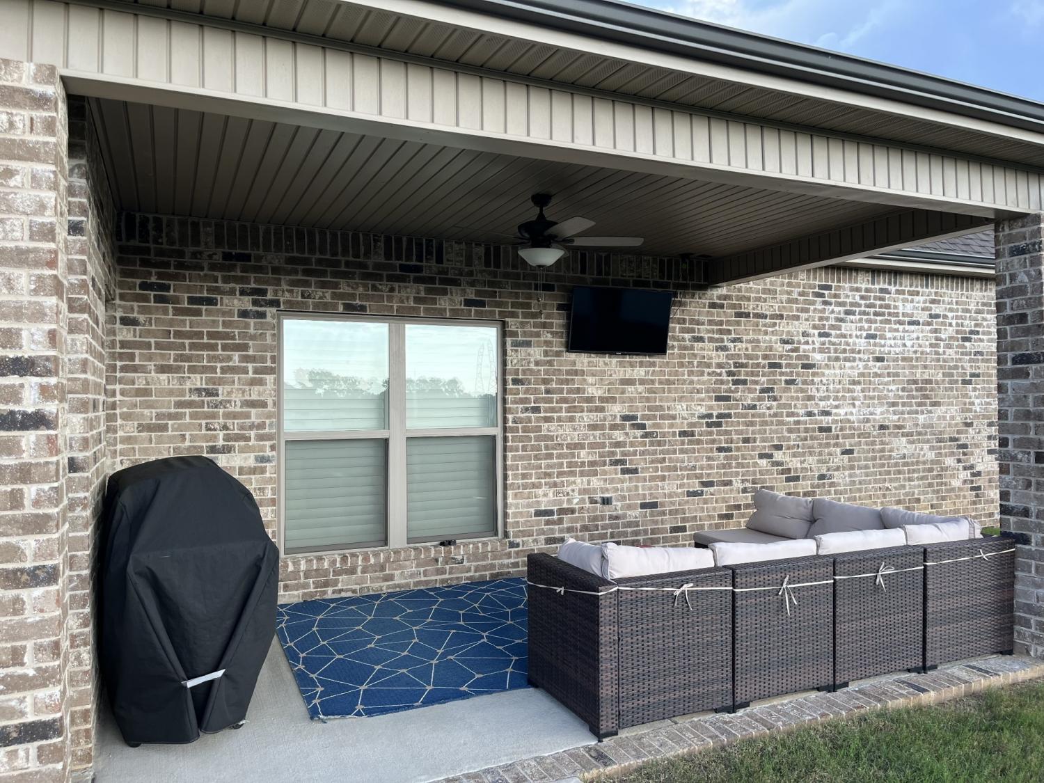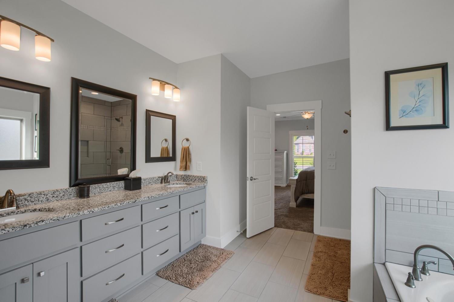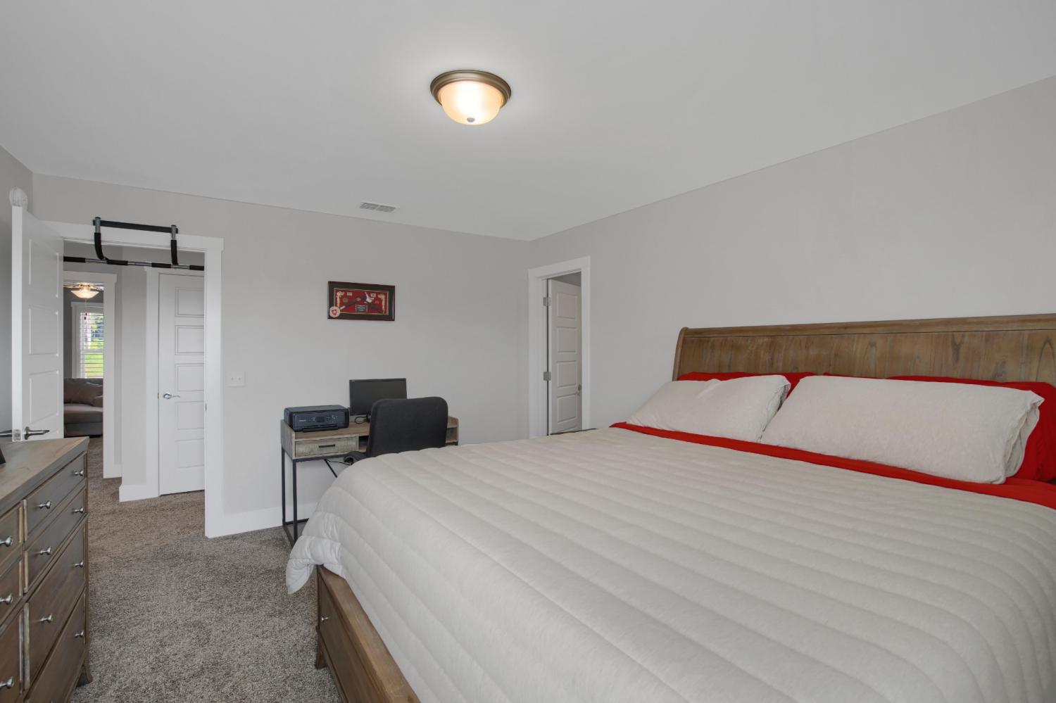 Total Turnkey! This home is available with all furniture for purchase, making it a rare opportunity for first time buyers or anyone looking for a move-in-ready experience. Immaculate and truly better than new, this all-brick home is loaded with upgrades- including plantation shutters, a full vinyl privacy fence and extensive custom shelving. Inside, you'll find a spacious open layout with a welcoming foyer, cozy fireplace, and stunning hardwood floors throughout the main level and stairs. The gourmet kitchen features granite countertops and custom cabinetry, while the formal dining and breakfast rooms offer flexibility for gatherings. The luxurious primary suite include double vanities, a tiled shower and walk-in closet. With 4 bedrooms, 3.5 bathrooms, and a versatile bonus room, this home provides ample living space. Plush carpet in the bedrooms adds comfort, while tile in all wet areas offer durability. The covered patio is perfect for relaxing outdoors. Uniquely situated for maximum privacy in a neighborhood setting- this lot sits between two streets with no immediate rear neighbors in view. Furniture package available for $30,000