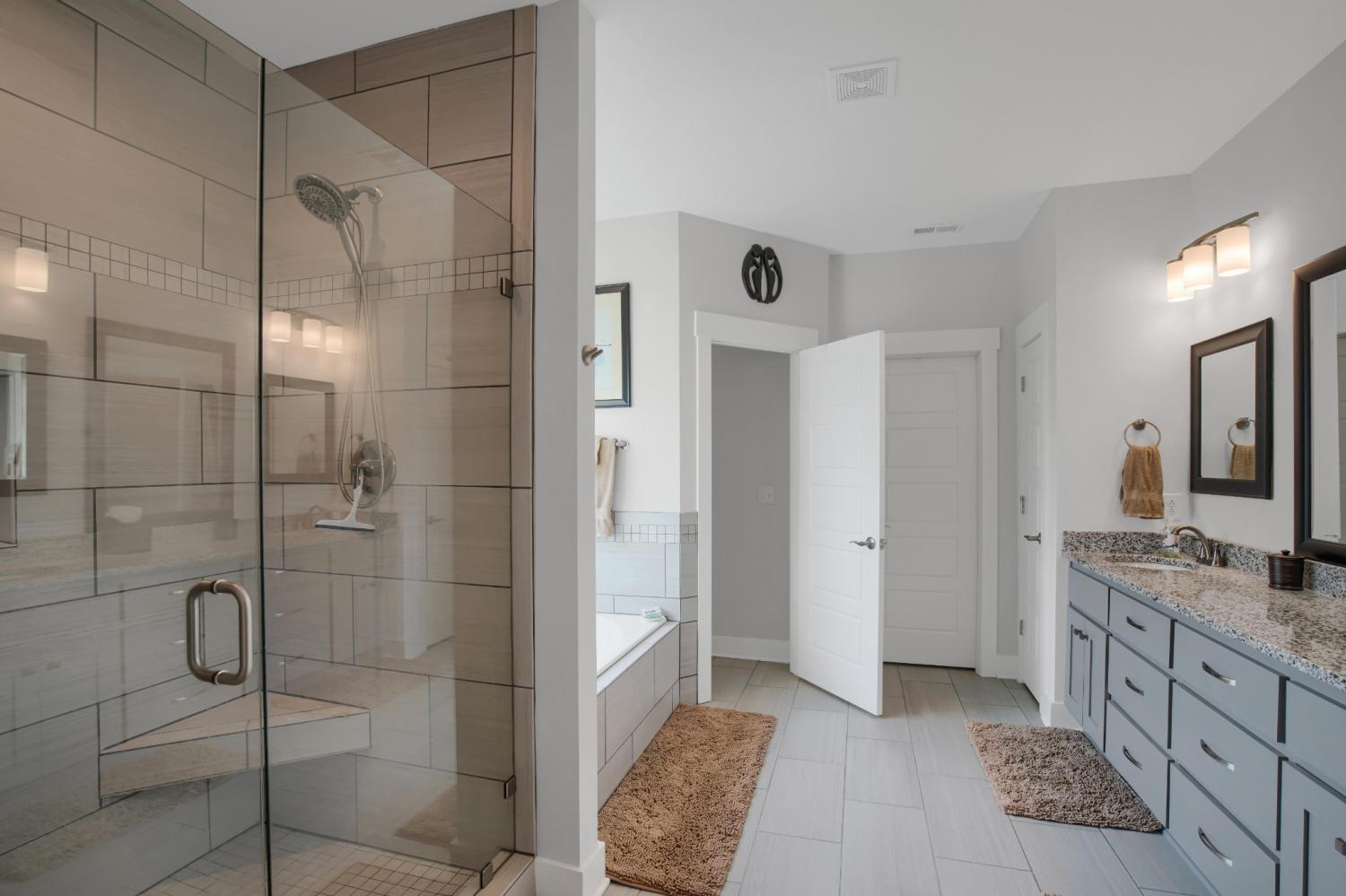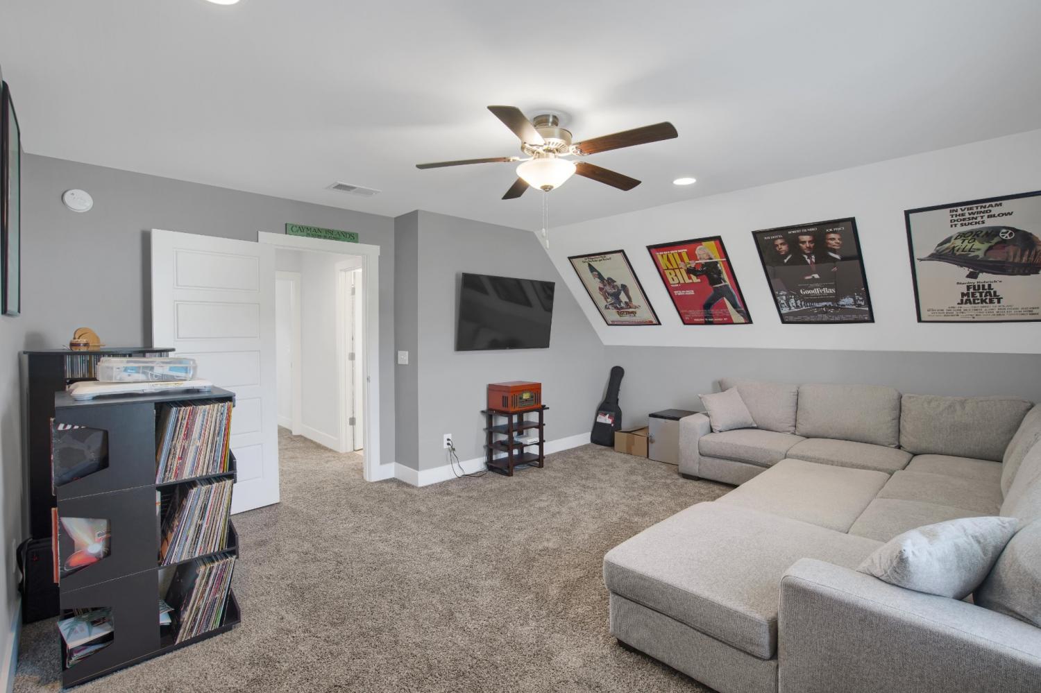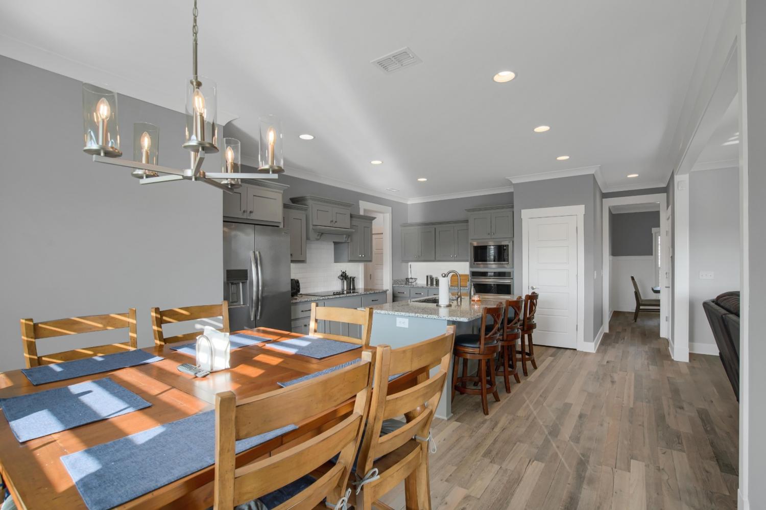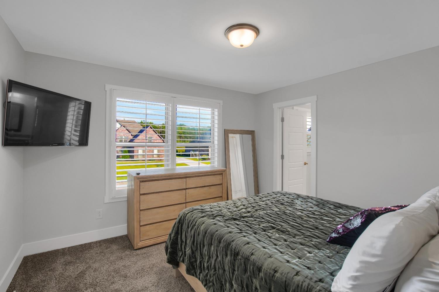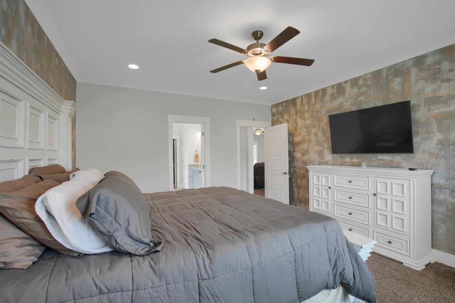 Total Turnkey! This home is available with all furniture for purchase, making it a rare opportunity for first time buyers or anyone looking for a move-in-ready experience. Immaculate and truly better than new, this all-brick home is loaded with upgrades- including plantation shutters, a full vinyl privacy fence and extensive custom shelving. Inside, you'll find a spacious open layout with a welcoming foyer, cozy fireplace, and stunning hardwood floors throughout the main level and stairs. The gourmet kitchen features granite countertops and custom cabinetry, while the formal dining and breakfast rooms offer flexibility for gatherings. The luxurious primary suite include double vanities, a tiled shower and walk-in closet. With 4 bedrooms, 3.5 bathrooms, and a versatile bonus room, this home provides ample living space. Plush carpet in the bedrooms adds comfort, while tile in all wet areas offer durability. The covered patio is perfect for relaxing outdoors. Uniquely situated for maximum privacy in a neighborhood setting- this lot sits between two streets with no immediate rear neighbors in view. Furniture package available for $30,000