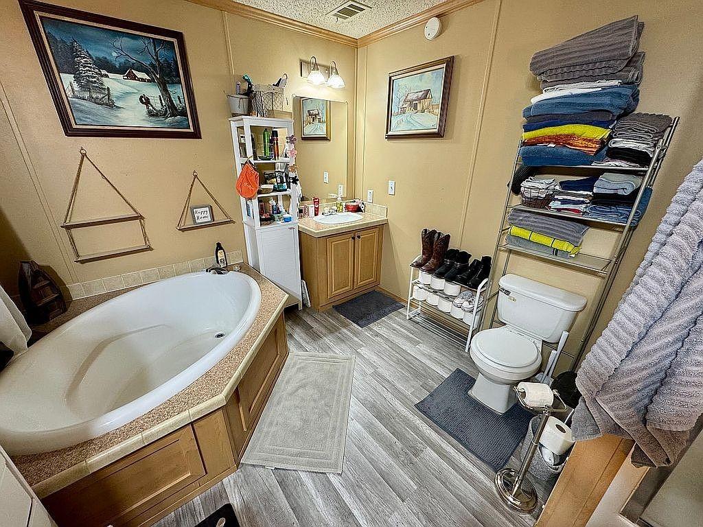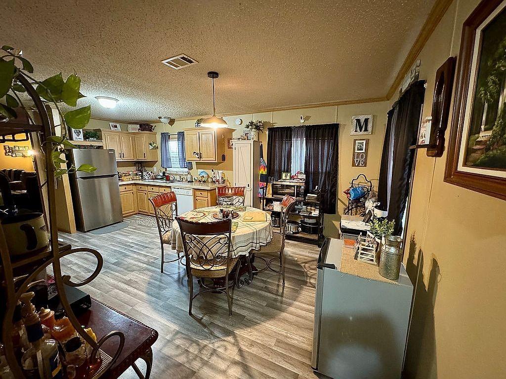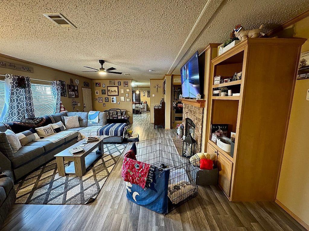 Welcome to this stunningly beautiful updated living space, perfectly positioned in the peaceful countryside just beyond the city limits. With 1.09 acres of land, this property provides the ideal blend of privacy, space, and modern comfort. Perfect for gardening, animals, or simply watching the sunset over the tranquil countryside. Step inside to a warm and inviting interior featuring brand new LVP flooring, new light fixtures, new ceiling fans with multi-selection LED lighting and remotes to control all functions, and gorgeous cabinetry with stylish black knobs and pulls. The spacious living room boasts a beautiful stone fireplace, creating a cozy centerpiece for the home. The kitchen boasts a brand-new refrigerator and stove for a modern, convenient space. The master suite highlights a garden tub, separate shower, and dual vanities for a true private retreat. Property extras include a 24x30 two-car garage via a breezeway, a 24x24 one-car garage, separate storage, a new fenced yard, a new 30-year roof, a new water heater, and an updated well for city water independence. Two large outbuildings with electricity and smooth concrete pads stand out as premier features. These versatile buildings offer endless possibilities: workshop space, storage, hobby areas, vehicle parking, a gym, or even future expansion. The 24x30 two-car garage, connected to the home by a breezeway, provides convenience and shelter, with a large work bench that conveys, and plywood has already been installed in the rafters for additional storage. The 24x24 one-car garage offers additional powered workspace and a secure, dry space dedicated to housing all your gear and toys for outdoor enthusiasts! A separate storage building adds even more functional space, providing an area for gardening or feed storage. This move-in-ready home combines country charm, modern updates, and room to grow—truly a peaceful oasis. Call Today for your showing!
