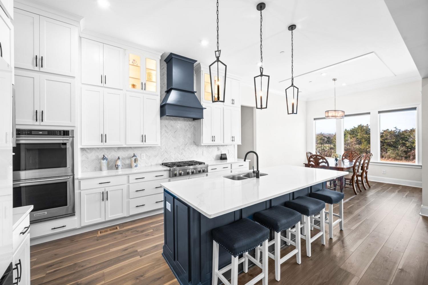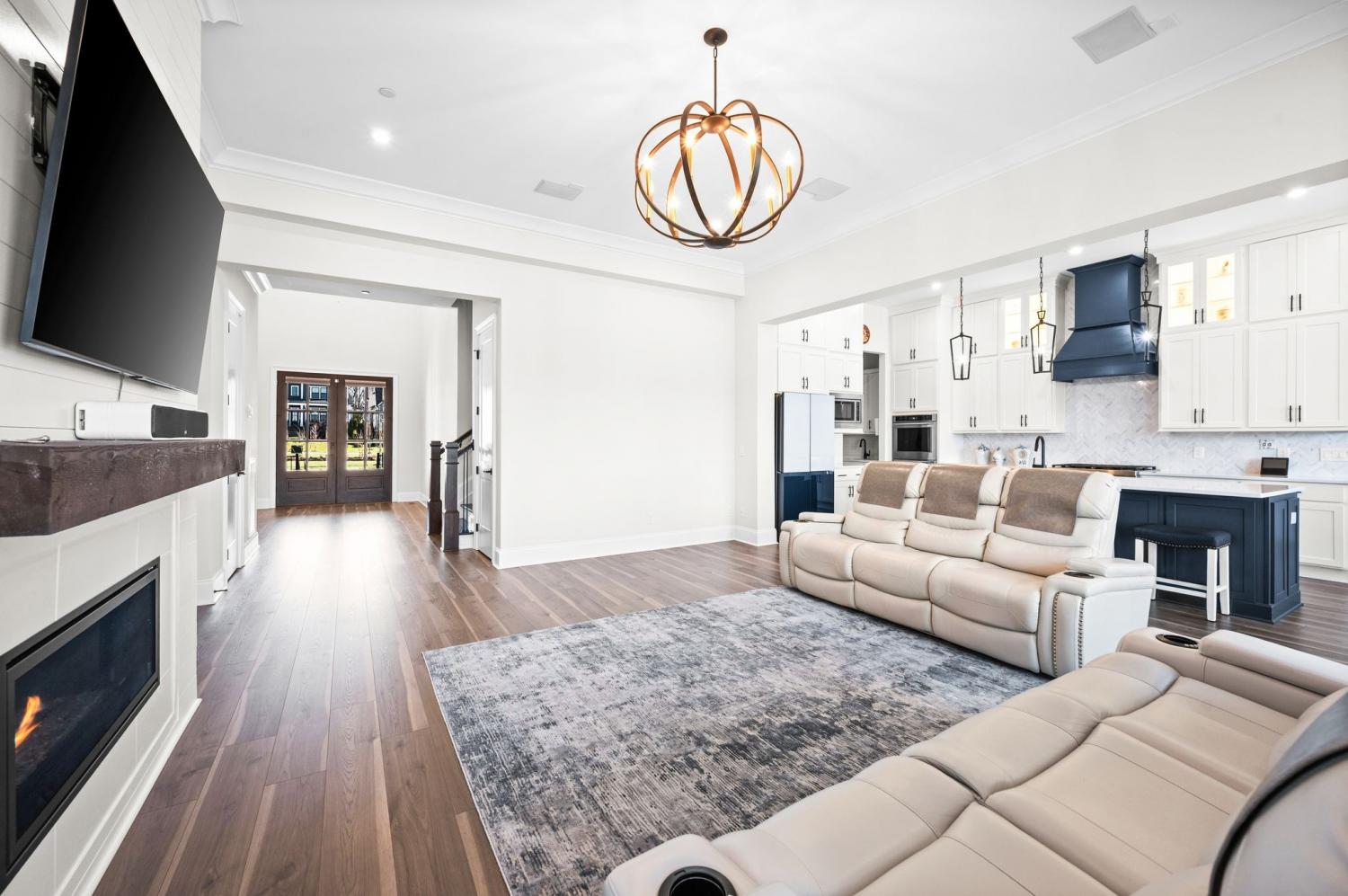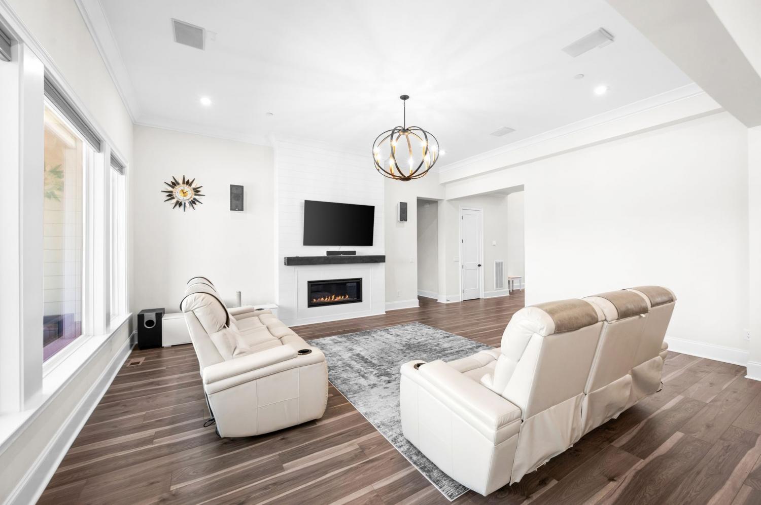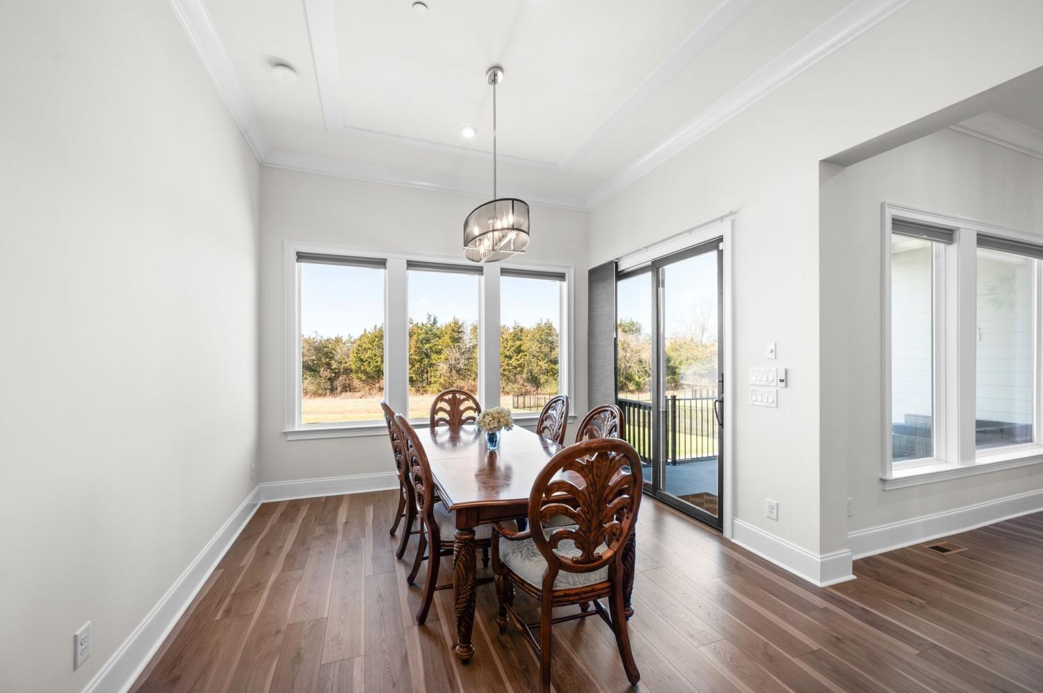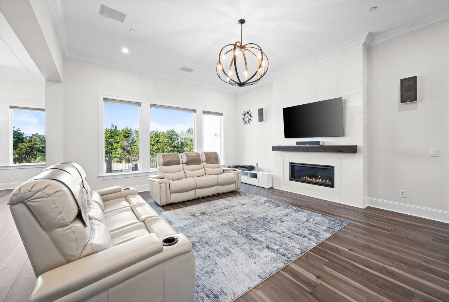 Custom built home with 5 bedrooms and 4.5 baths. This home features an open floor plan and luxurious upgrades throughout. Located on one of the largest level lots in Annecy, at the end of cul-de-sac and backs to woods. Enjoy the views from first or second floor on one of the outdoor living areas: like the 4th of July fireworks. Gourmet kitchen has an oversized island and walk-in pantry and a work room with extra cabinets, countertop space and wet bar. The second main level bedroom could be a 2nd primary bedroom with large walk-in closet. The third main level bedroom is currently used as an office with a large walk-in closet. Home theater is 32x12. This home offers many Smart Features: WiFi with 3 more access points. Conduit added to attic & crawlspace to add to any room. All outdoor lights turn on when the garage door opens after dark. Kitchen sink disposal turn on with voice command, All lights turn off at midnight if left on, when back door opens at night, the back porch and backyard lights turn on. Remote blinds, front porch and driveway lights turn on when front door is opened. Bathroom exhaust fans turn on automatically when humidity is detected. Media streaming available. All lights are voice-controlled. Power plugs installed in the eaves of front and back porch for holiday/eave lights. Outdoor access point installed for extended outdoor Wi-Fi coverage. Smart garden sprinkler system installed. Sprinklers available in the raised vegetable bed. This home offers everything you need. Perfect yard for Oasis pool.