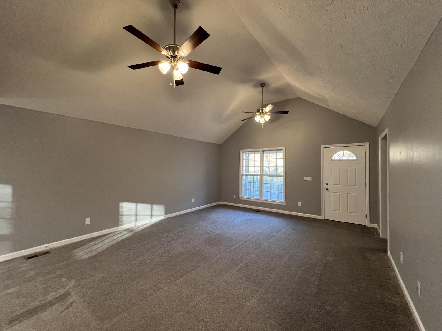 Great location!!! Just off Hwy 64, located very close to I-65, exit 14, between Fayetteville and Pulaski. Easy driving to either town and only about two minutes to I-65 for travel or work. This 3-bedroom home has an extra room with a closet if more space is needed! It has an open floor plan for spacious living. The kitchen has lots of cabinetry, an existing dishwasher and a new stainless electric stove. An island and recessed lighting in the kitchen add convenience. The living and dining areas are open for family time or entertaining. The living area has a vaulted ceiling with ceiling fans. The primary bedroom is separate from other bedrooms and has it's own walk-in closet and bath. A vaulted ceiling in the living area and a trey ceiling in the primary bedroom add to the look and feel of the home. The hallway with the additional bedrooms also has a laundry/utility room and extra hallway closet. Much to see in this home in the country, with a very convenient and beautiful location!