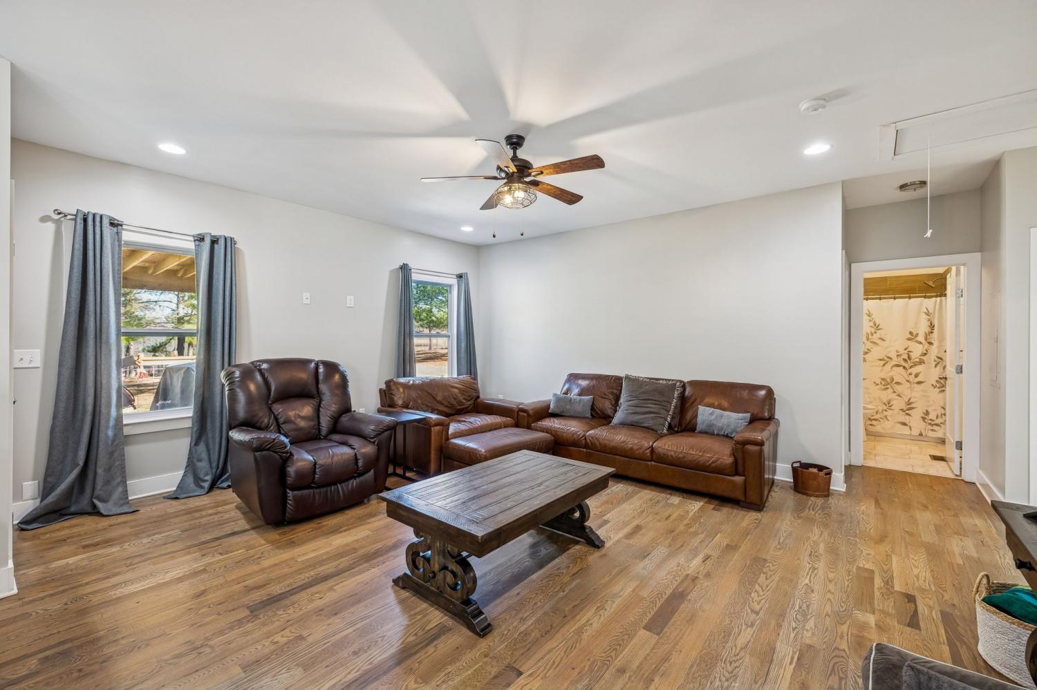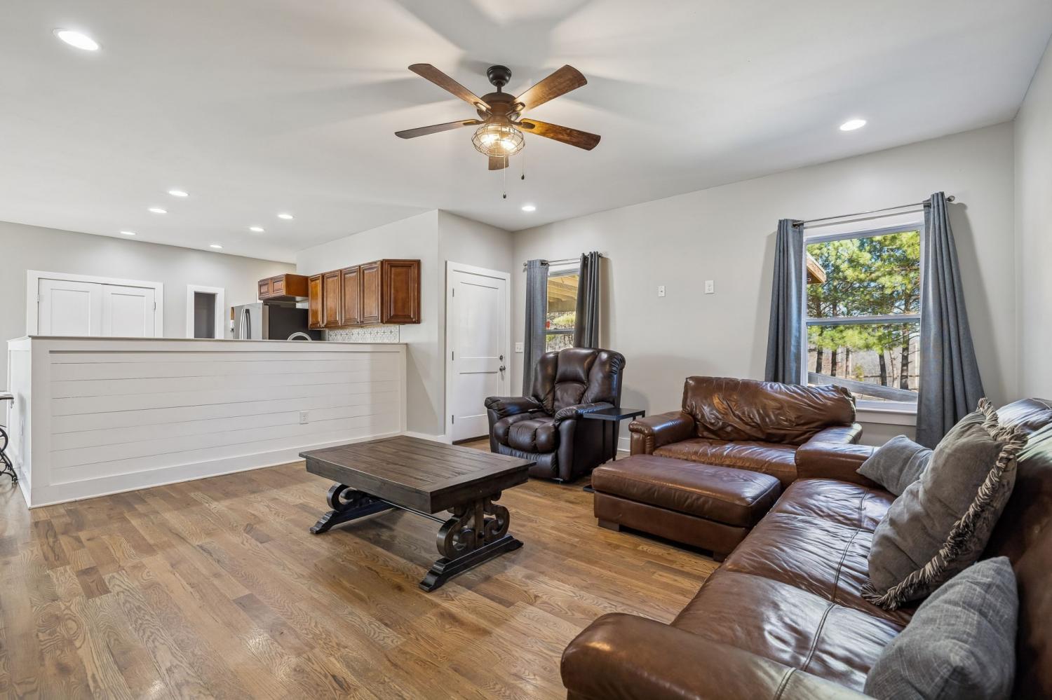 Private, Updated Home on 13.4 Acres with Exceptional Outdoor Living Built in 2019 and thoughtfully updated, this stunning 2,700 sq ft home sits on 13.4 private acres, surrounded by mature trees, fruit trees, and raised garden beds. A long paved private driveway leads to the home, which is completely hidden from the road, offering unmatched privacy and serenity. The home features four bedrooms on the main level, including a spacious primary suite with a large, tiled shower, double vanity, and walk-in closet. The finished walk-out basement provides a fifth bedroom or bonus room along with a full bathroom, perfect for guests, multigenerational living, or a home office. Outdoor living truly shines with a massive recently built covered back porch, designed with handicap accessibility, ideal for entertaining or relaxing. Step directly from the porch into the fenced backyard, perfect for children or animals, and enjoy evenings under the stars. A covered front porch offers beautiful sunset views overlooking the barn and surrounding land. Additional features include stainless steel kitchen appliances, a newly installed whole-house generator, new exterior paint, updated landscaping, and high-speed internet availability. Conveniently located just minutes from I-840, with an easy 35-minute commute to Nashville or Franklin, this property blends modern comfort with peaceful country living.