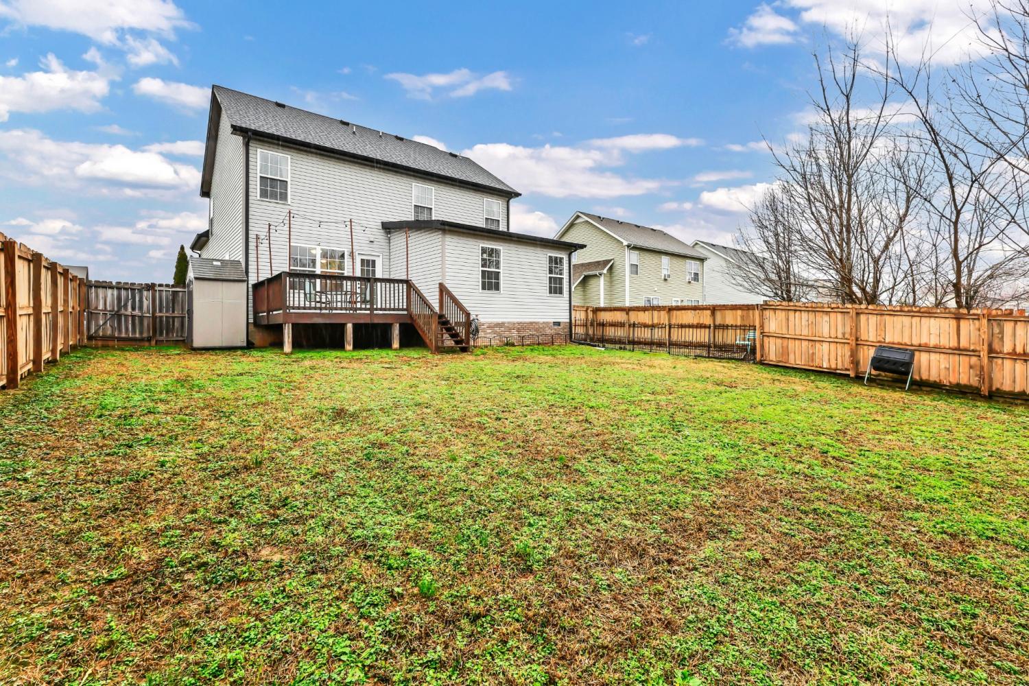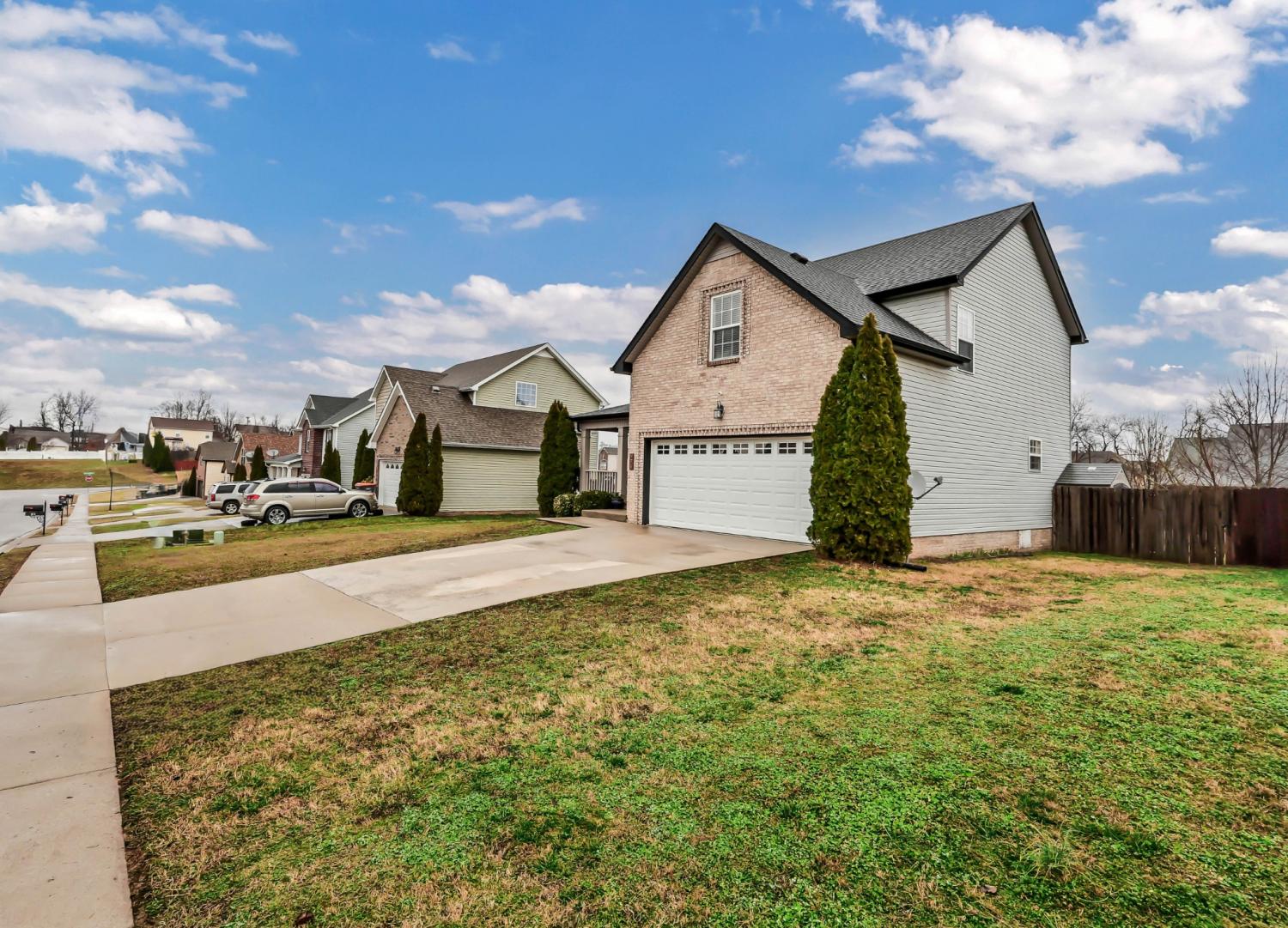 Priced to sell with a rare opportunity to assume a VA loan at an incredible 2.37% interest rate—this is one you don’t want to miss. Seller will pay $15k concessions with Full price offer, buyer can use it however they please. Welcome home to this spacious and versatile 5-bedroom, 2.5-bath property designed for comfort, convenience, and flexibility. Featuring a two-car garage, gas fireplace, and fully fenced backyard, this home offers both functionality and charm. All spare bedrooms have fresh coat of paint. Carpet throughout the house is professionally cleaned. Outdoor enthusiasts will love the designated and fenced gardening area with established American elderberry bushes, perfect for those who enjoy growing their own plants. The thoughtfully designed second floor includes laundry room furnished with washer and dryer conveniently located near the primary bedroom and three additional bedrooms, making daily routines a breeze. The fifth bedroom, a newly added downstairs addition, offers endless possibilities—use it as a guest suite, home office, gym, or playroom to suit your needs. Ideally located close to Fort Campbell, Wilma Rudolph Boulevard, and downtown, this home provides easy access to shopping, dining, and commuting routes. A brand-new refrigerator, washer&dryer, curtain rods, garden bench, basketball hoop and storage shed all convey with the property, adding immediate value.