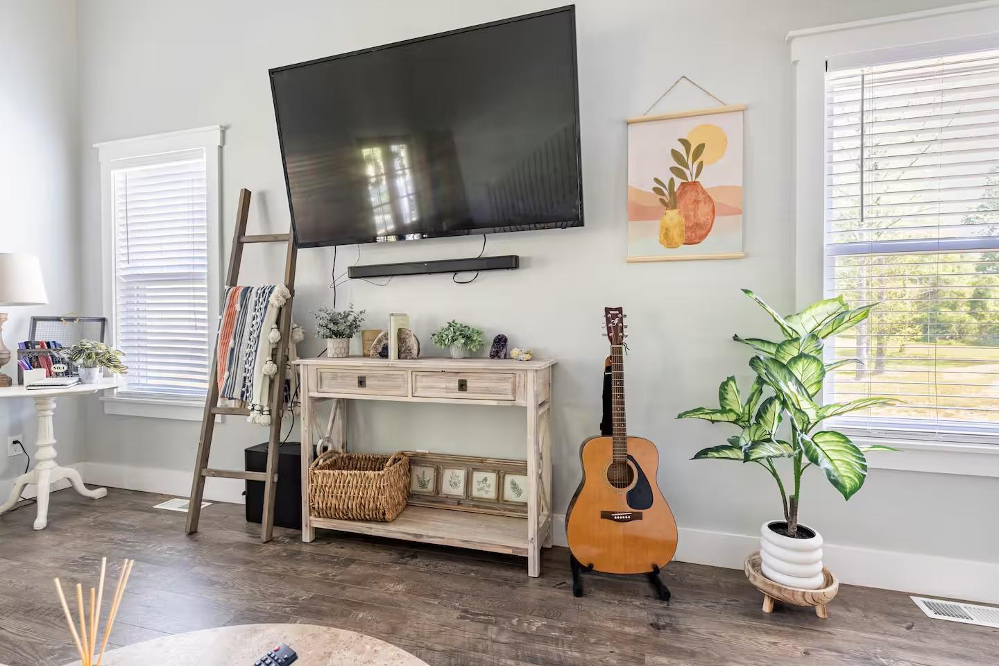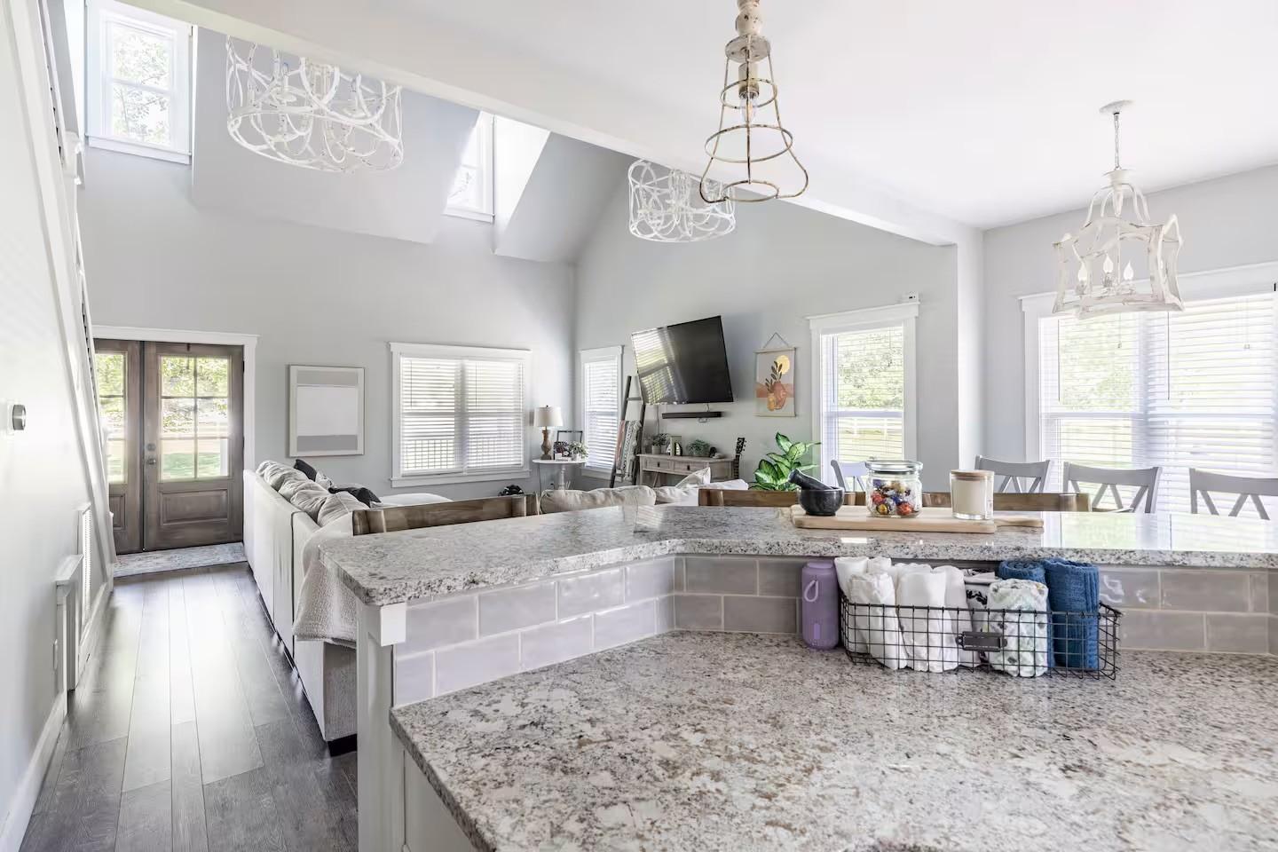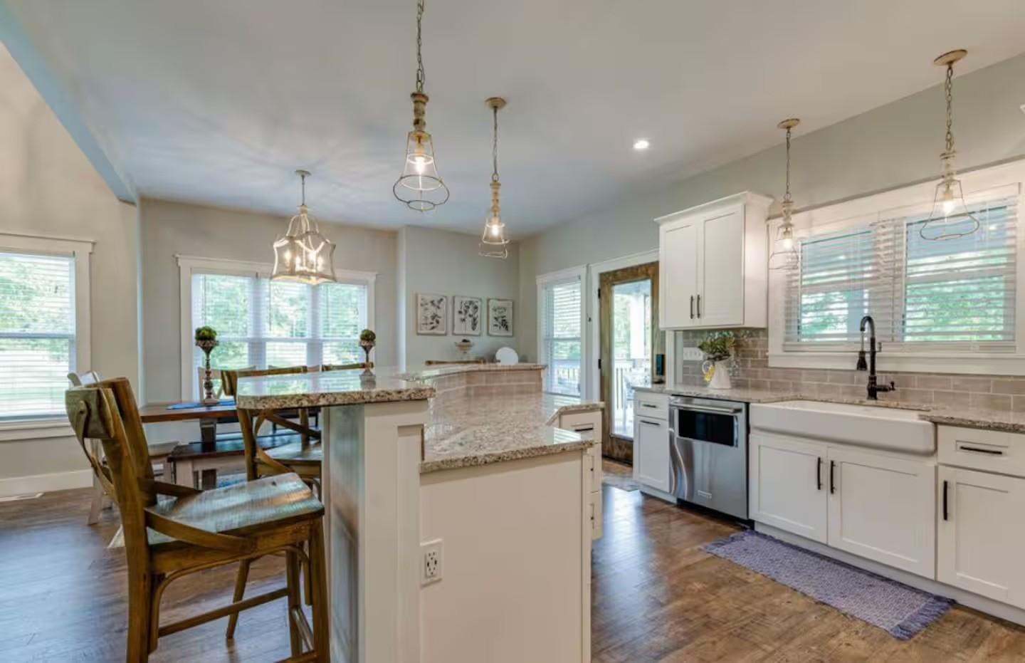 Experience the perfect blend of rustic charm and upscale modern living in this stunning modern farmhouse located just steps from the beautiful Tennessee River. Nestled on 6+ serene acres, this home is thoughtfully designed for comfort, functionality, and timeless style. Step inside to be greeted by an open-concept layout with high ceilings, beautiful hard surface flooring throughout, and an entertainer delight. The open kitchen features quartz countertops, a large island, stainless-steel appliances, and lots of storage that makes entertaining effortless. With three spacious bedrooms plus a HUGE rec room that also has 2 custom built bunkbeds for additional sleeping, this home can very comfortably sleep 12 and can be used for a continued short term rental or make it your primary residence. Seller is willing to sell home furnished... Picket fence and beautiful new driveway was added to give this already beautiful home more functionality and curb appeal. Enjoy the peace and privacy of rural living from your screened in back porch overlooking natures beauty — ideal for relaxing evenings, backyard gatherings and more. A new tiled fire pit area was added with a gazebo and built-in grill for more outdoor living space! Make this yours today!