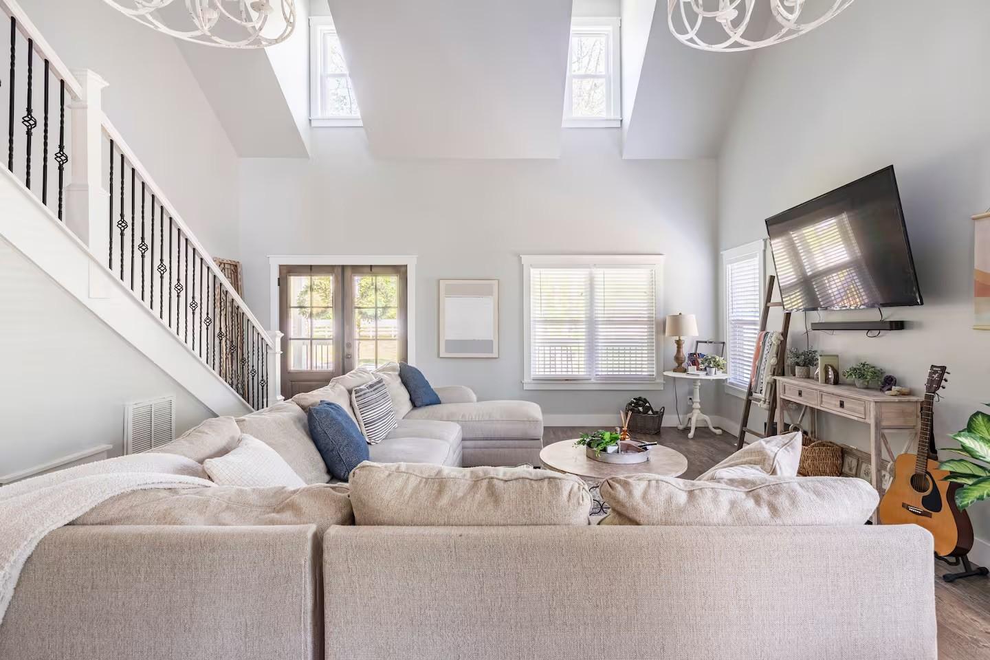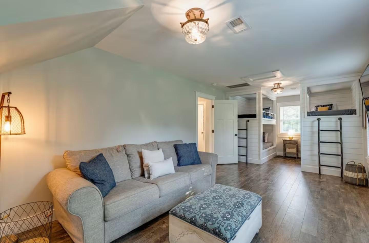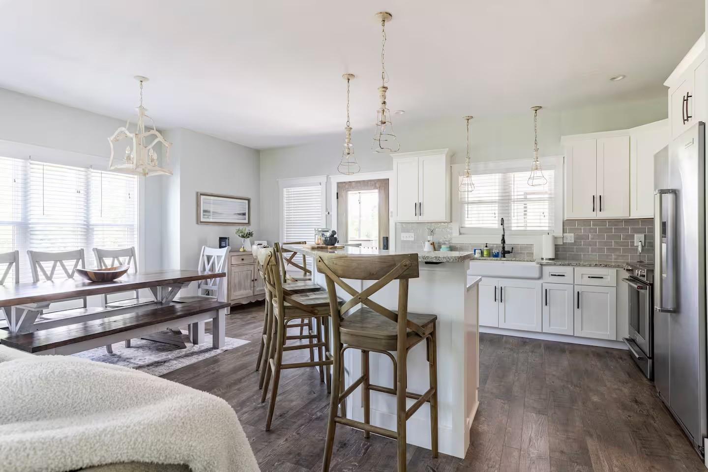 Experience the perfect blend of rustic charm and upscale modern living in this stunning modern farmhouse located just steps from the beautiful Tennessee River. Nestled on 6+ serene acres, this home is thoughtfully designed for comfort, functionality, and timeless style. Step inside to be greeted by an open-concept layout with high ceilings, beautiful hard surface flooring throughout, and an entertainer delight. The open kitchen features quartz countertops, a large island, stainless-steel appliances, and lots of storage that makes entertaining effortless. With three spacious bedrooms plus a HUGE rec room that also has 2 custom built bunkbeds for additional sleeping, this home can very comfortably sleep 12 and can be used for a continued short term rental or make it your primary residence. Seller is willing to sell home furnished... Picket fence and beautiful new driveway was added to give this already beautiful home more functionality and curb appeal. Enjoy the peace and privacy of rural living from your screened in back porch overlooking natures beauty — ideal for relaxing evenings, backyard gatherings and more. A new tiled fire pit area was added with a gazebo and built-in grill for more outdoor living space! Make this yours today!