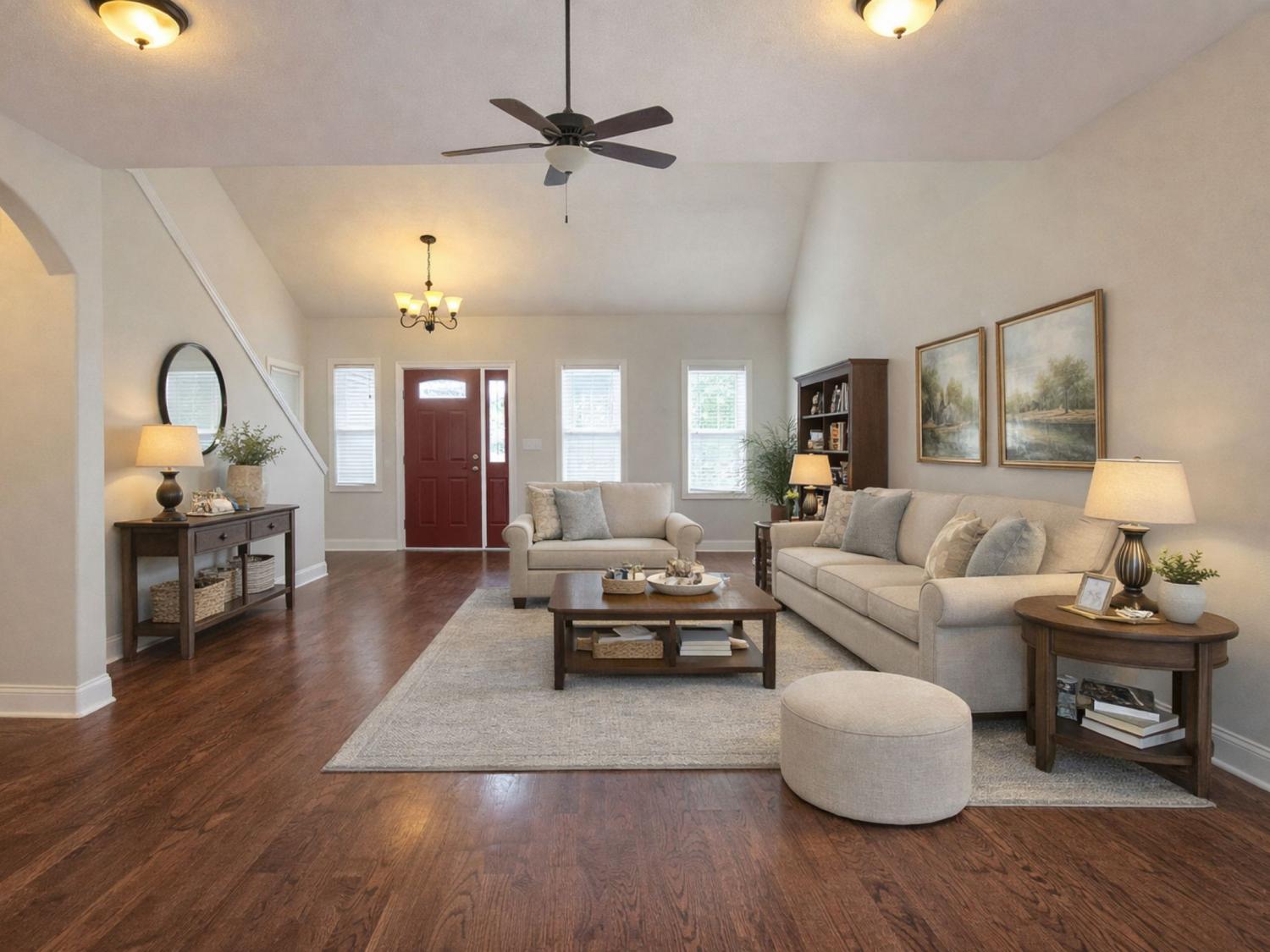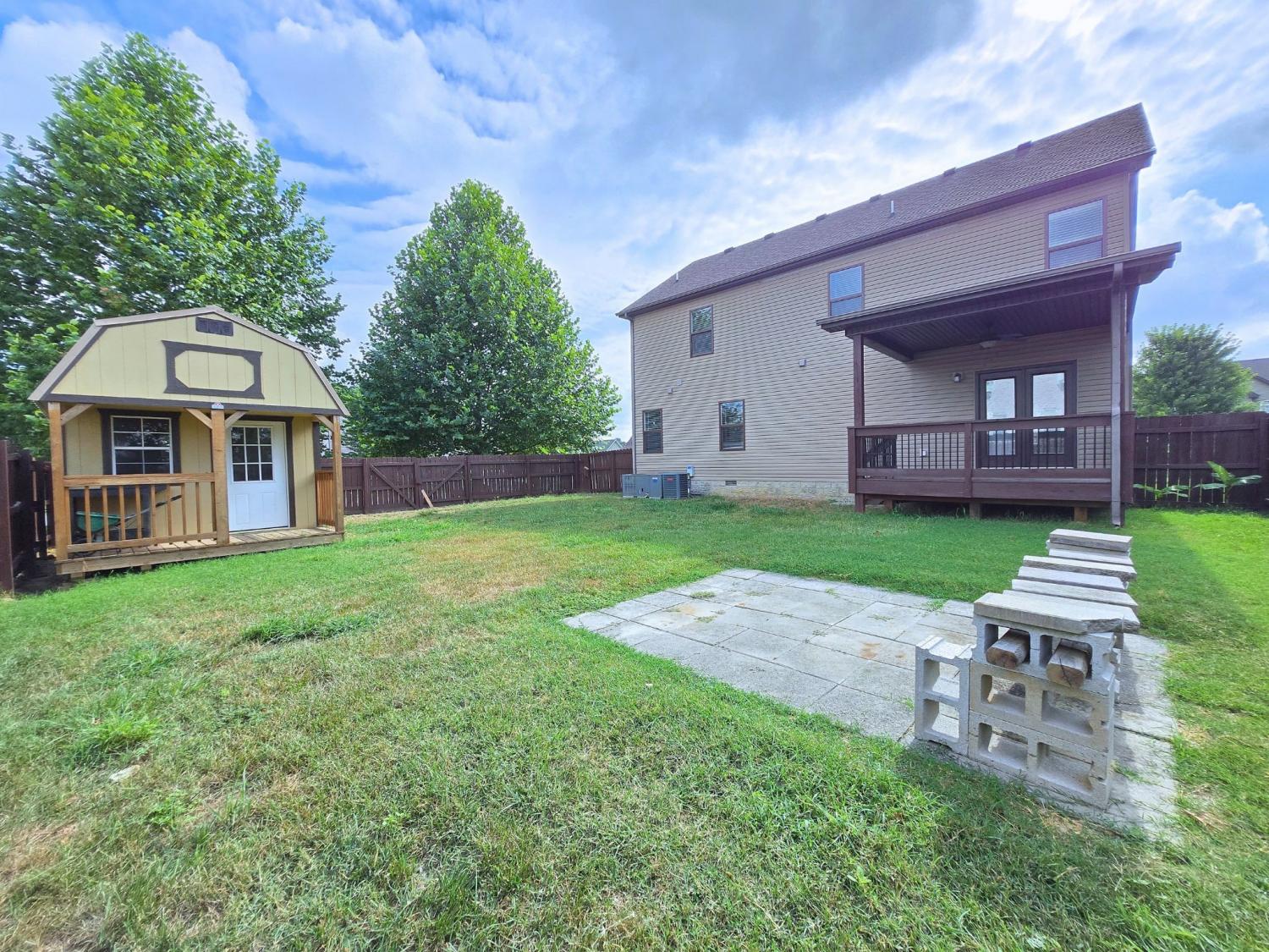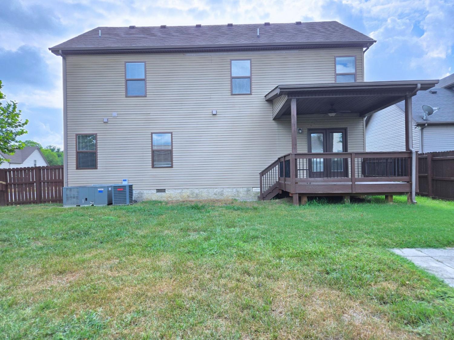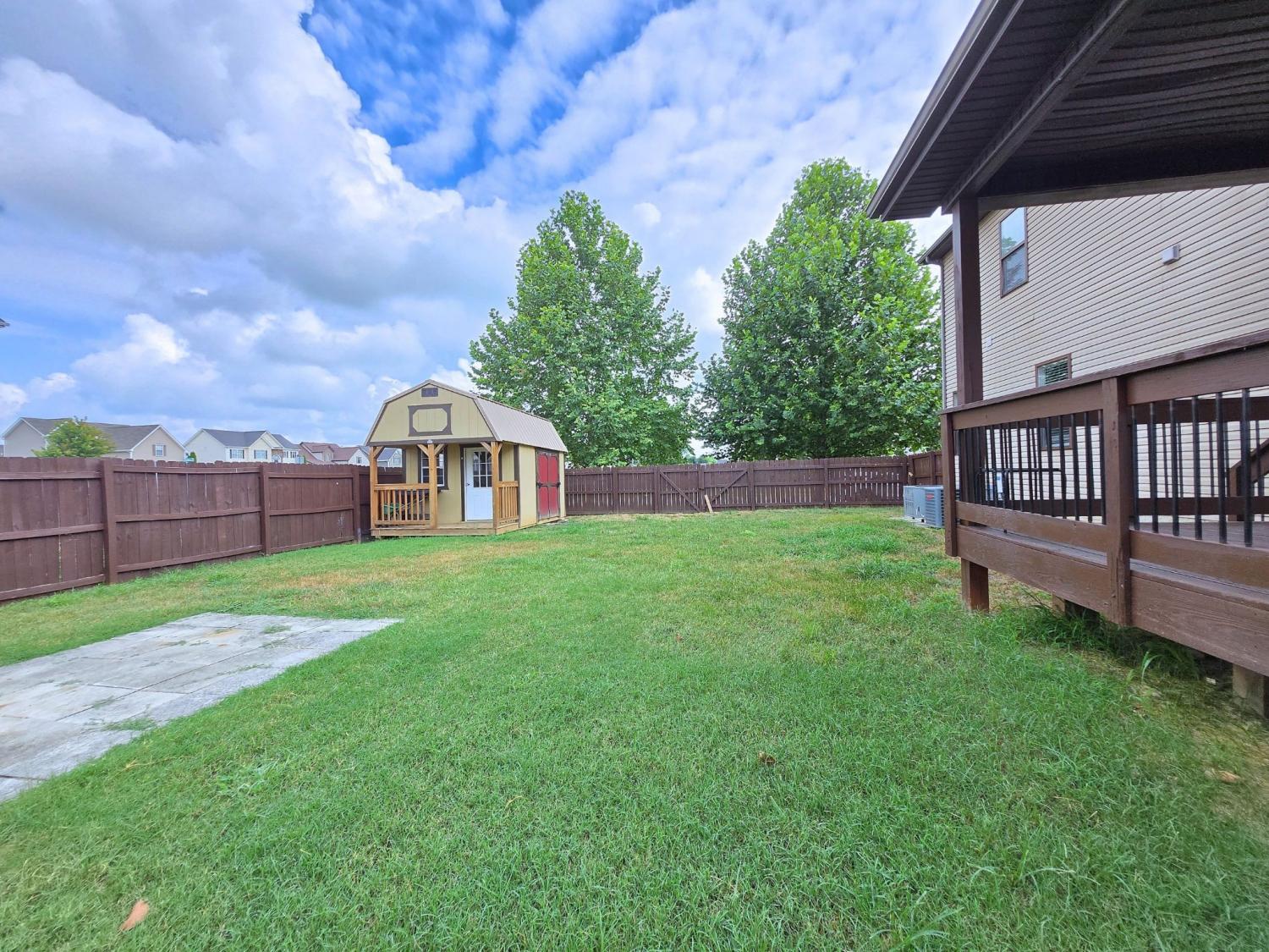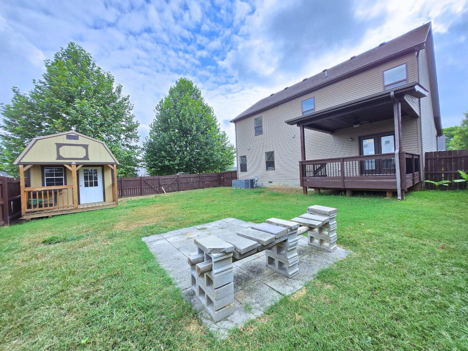 Concessions Available! This 2,307 sq. ft. home features 4 bedrooms plus a versatile 20x15 ft BONUS ROOM THAT CAN SERVE AS A 5TH BEDROOM, COMPLETE WITH 2 CLOSETS AND A HALF BATHROOM. The main-level Primary Suite offers convenient single-floor living, while the upstairs bedrooms are finished with comfortable carpeting. With 2 full baths and 2 half baths, the floor plan balances everyday functionality with plenty of room for guests. The open-concept living and dining areas connect seamlessly to a modern kitchen with brand-new appliances-perfect for family dinners or entertaining. Step outside to a covered front porch for morning coffee or a covered back deck for evening relaxation. Situated on a desirable corner lot, this property includes a side-entry garage and a spacious storage shed. NEWLY ADDED DINING AND FOYER MODERN LIGHT FIXTURES. NEW BACKSPLASH ADDED IN KITCHEN. Just minutes from shopping, dining, the Clarksville Greenway, Dunbar Cave State Park, and the Riverwalk-with an easy commute to Fort Campbell. Now move-in ready, competitively priced, and offering added buyer incentives-this home delivers outstanding value in a sought-after neighborhood.