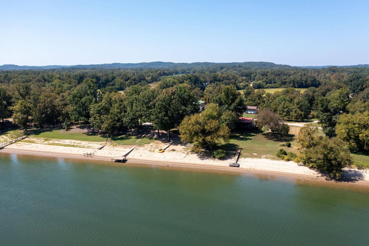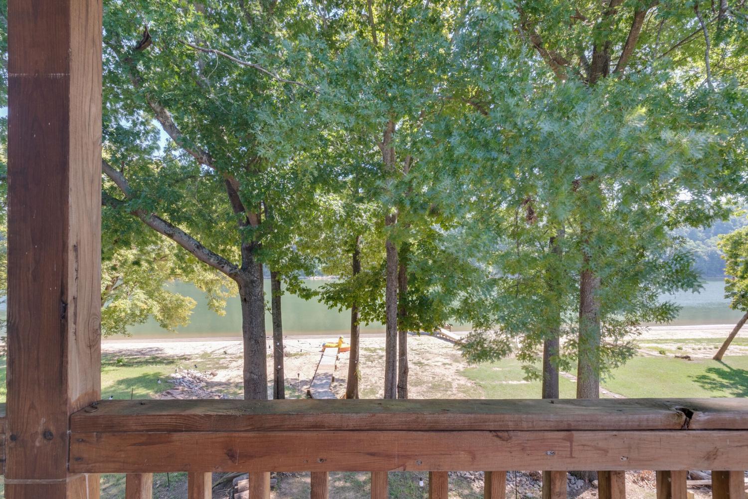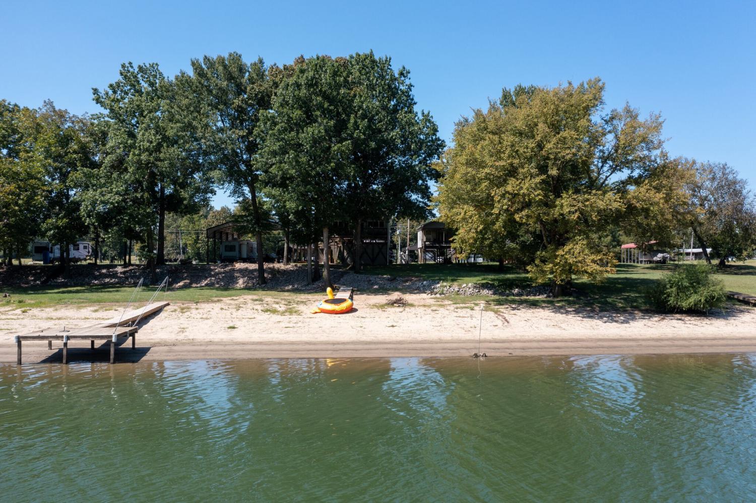 Welcome to 752 Pevahouse Rd, a rare riverfront find on the Tennessee River/Kentucky Lake. This beautifully renovated and fully furnished home is elevated on pilings above the shoreline, offering stunning water views and seamless access to the river via a private boardwalk that leads to a sandy beach, pier, and the water’s edge. Updated just a few years ago, the home features new siding, roof, and flooring, combining modern updates with relaxed lake living. The main level offers an open-concept layout with a spacious great room and fireplace, a fully furnished kitchen, two bedrooms, one full bath, and a conveniently located washer and dryer. A circular staircase leads to the upper loft level, which includes two additional sleeping areas and a full bath — ideal for guests and entertaining. Exterior features include a full concrete base with a small garage, additional storage building, half bath, outdoor shower, and a lift, providing easy access between levels. Whether you’re enjoying time on the beach, boating from your pier, or relaxing indoors, this exceptional riverfront property delivers the best of Kentucky Lake living.