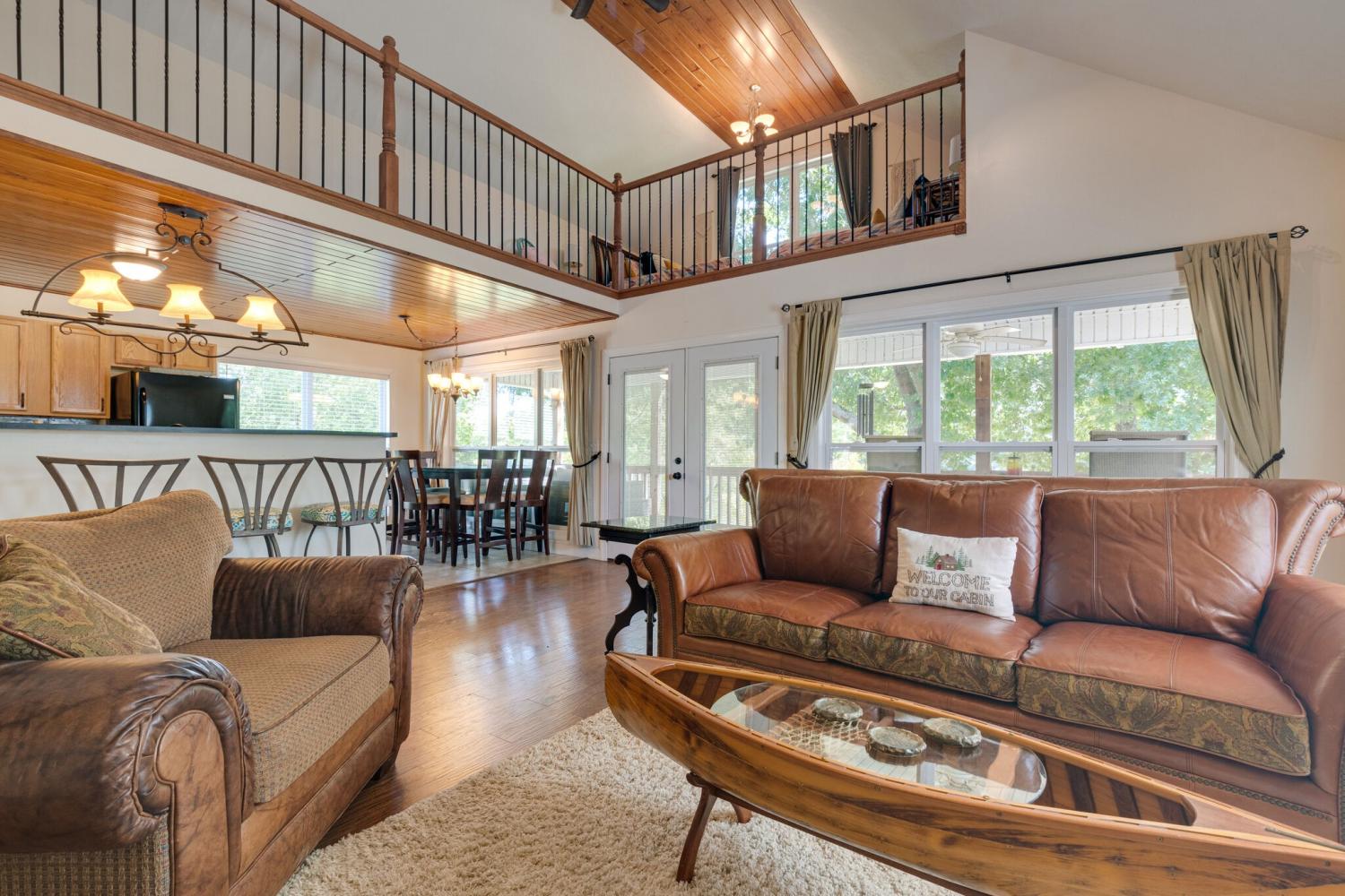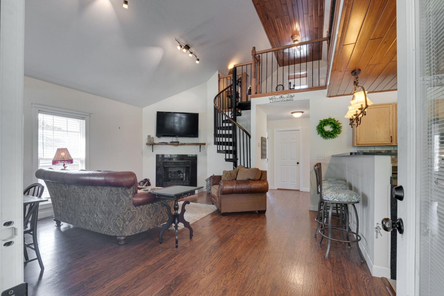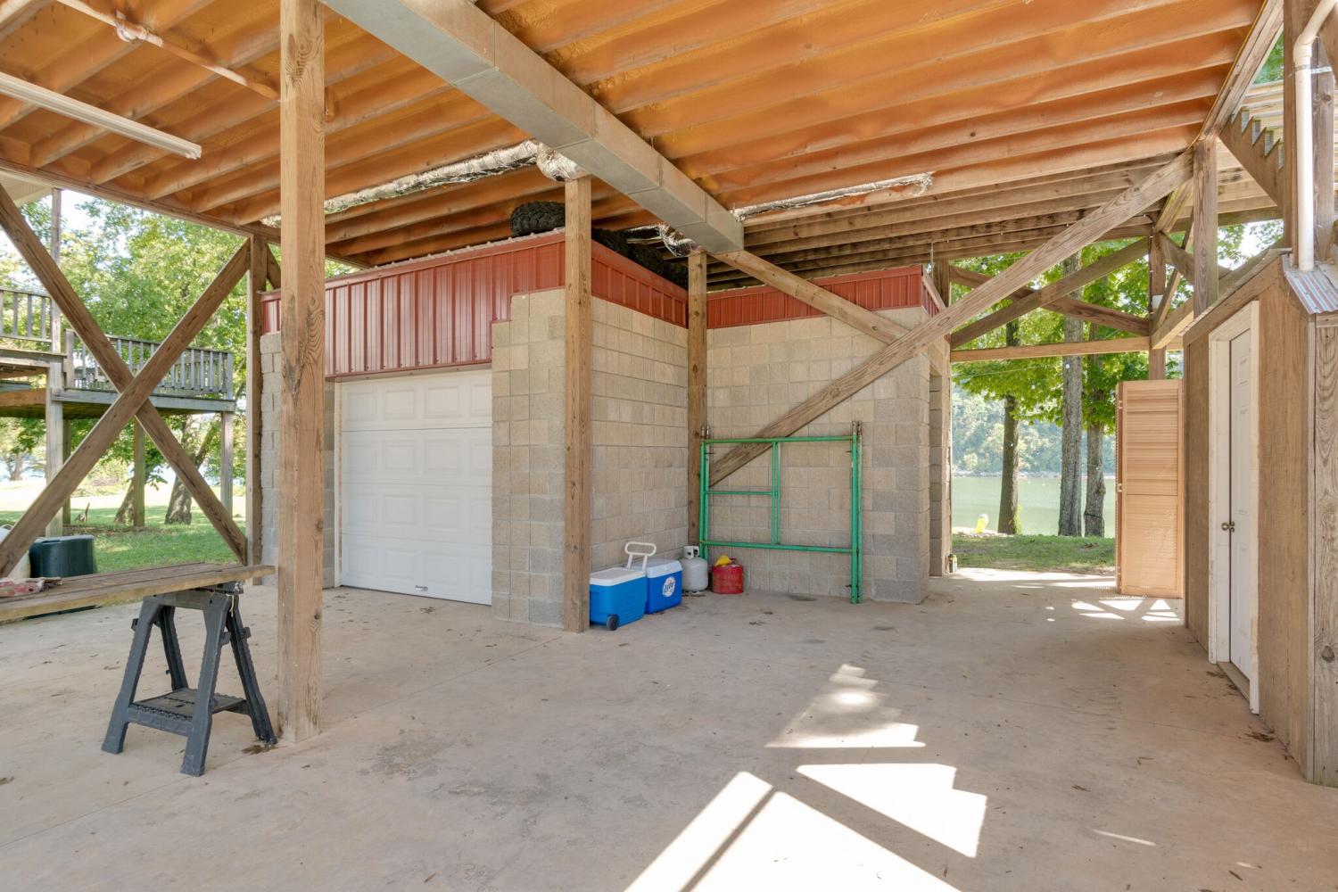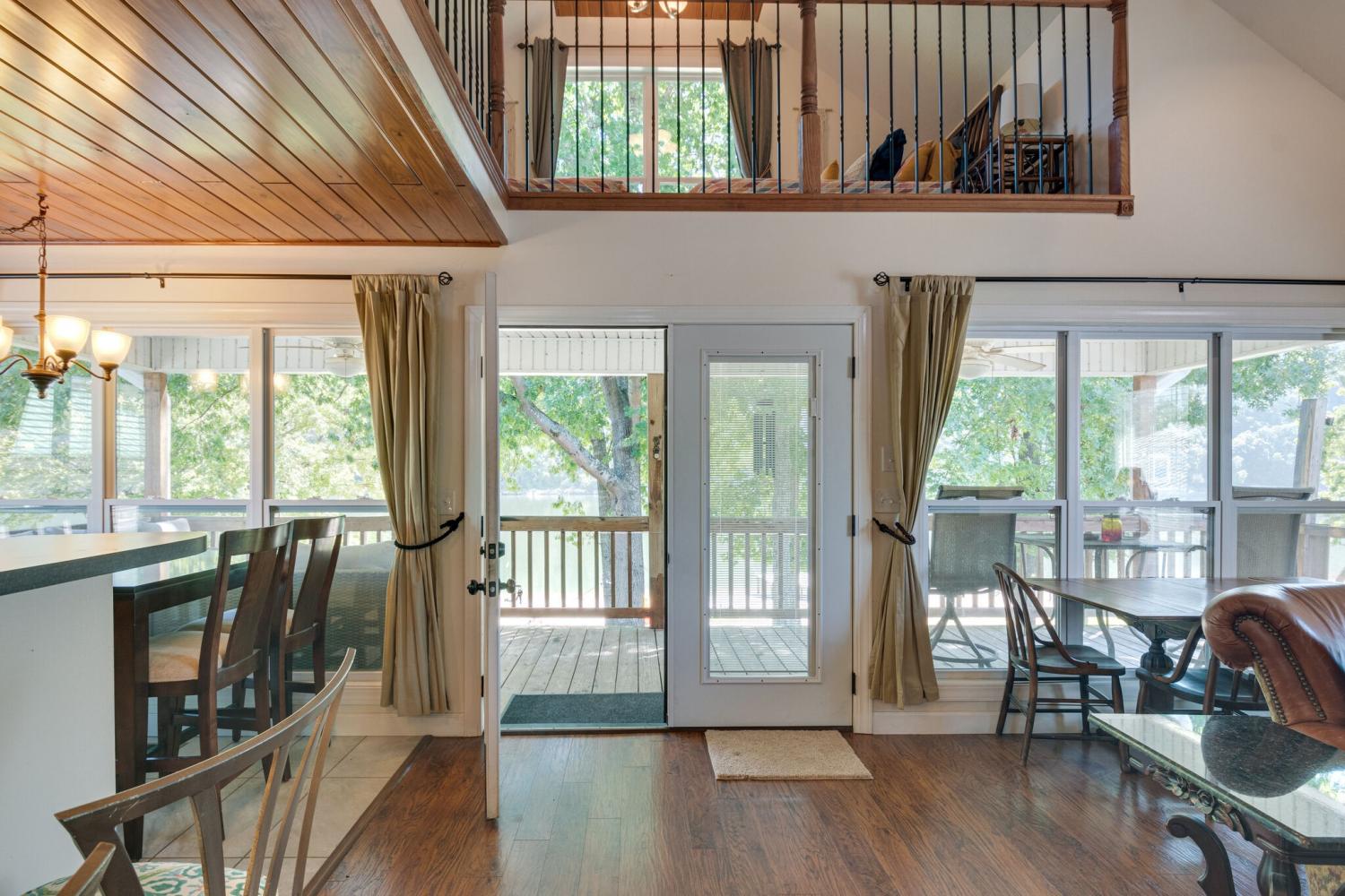 Welcome to 752 Pevahouse Rd, a rare riverfront find on the Tennessee River/Kentucky Lake. This beautifully renovated and fully furnished home is elevated on pilings above the shoreline, offering stunning water views and seamless access to the river via a private boardwalk that leads to a sandy beach, pier, and the water’s edge. Updated just a few years ago, the home features new siding, roof, and flooring, combining modern updates with relaxed lake living. The main level offers an open-concept layout with a spacious great room and fireplace, a fully furnished kitchen, two bedrooms, one full bath, and a conveniently located washer and dryer. A circular staircase leads to the upper loft level, which includes two additional sleeping areas and a full bath — ideal for guests and entertaining. Exterior features include a full concrete base with a small garage, additional storage building, half bath, outdoor shower, and a lift, providing easy access between levels. Whether you’re enjoying time on the beach, boating from your pier, or relaxing indoors, this exceptional riverfront property delivers the best of Kentucky Lake living.
