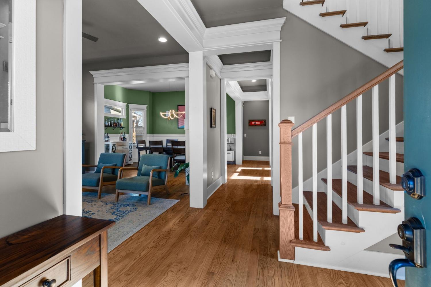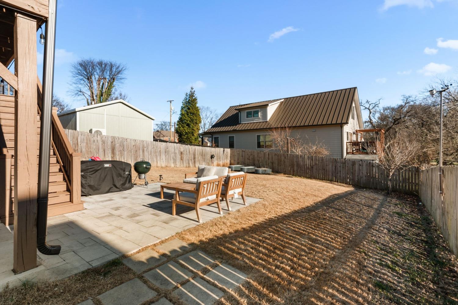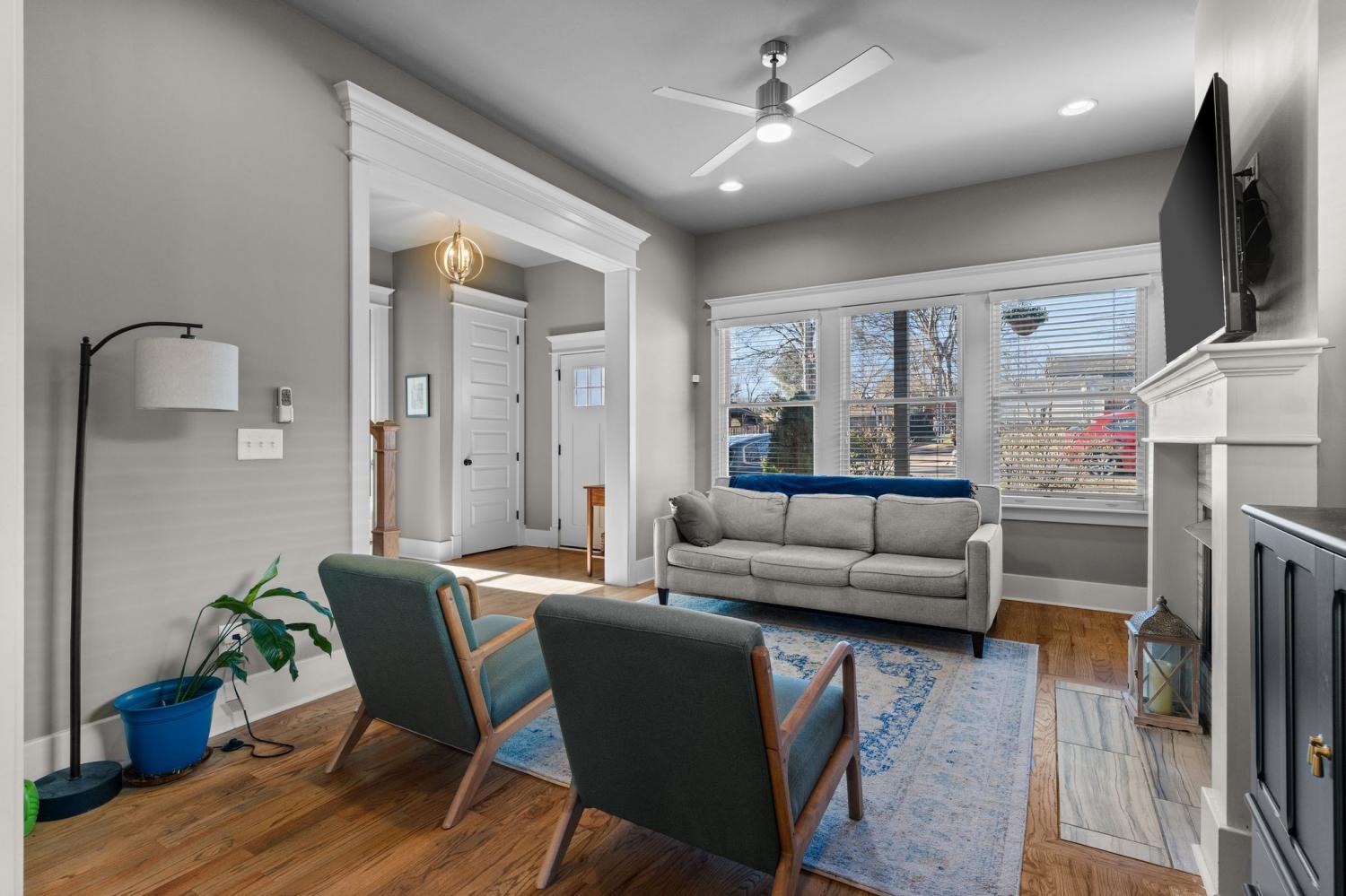 Set on a quiet, tree-lined street in one of Inglewood's most walkable pockets, this Modern Craftsman offers the rare combination of thoughtful design, flexible space, and exceptional outdoor living—all within steps of Dan Mills Elementary and minutes from Riverside Village and Shelby Bottoms. The main level delivers true everyday livability. An open kitchen with blue-gray shaker cabinetry, butcher block island, and gas range flows into the wainscoted dining room and sun-filled living room. The primary suite completes the main floor with direct porch access, a spa-inspired bath featuring soaking tub and separate shower, and a walk-in closet with custom built-ins. Upstairs, two additional bedrooms share a hall bath with dual vanities, while a vaulted bonus room offers flexibility as a playroom, media room, or home office. The screened-in back porch creates a seamless connection between indoor and outdoor living—dual ceiling fans, access from both kitchen and primary suite, and views over the private backyard. Below, a 15x15 paver patio anchors the fully fenced yard, regraded in 2023 and finished with TifTuf Bermuda in 2024. Built 2016 | 2,338 SF | 3 BR | 2.5 BA | Zoned Dan Mills Elementary
